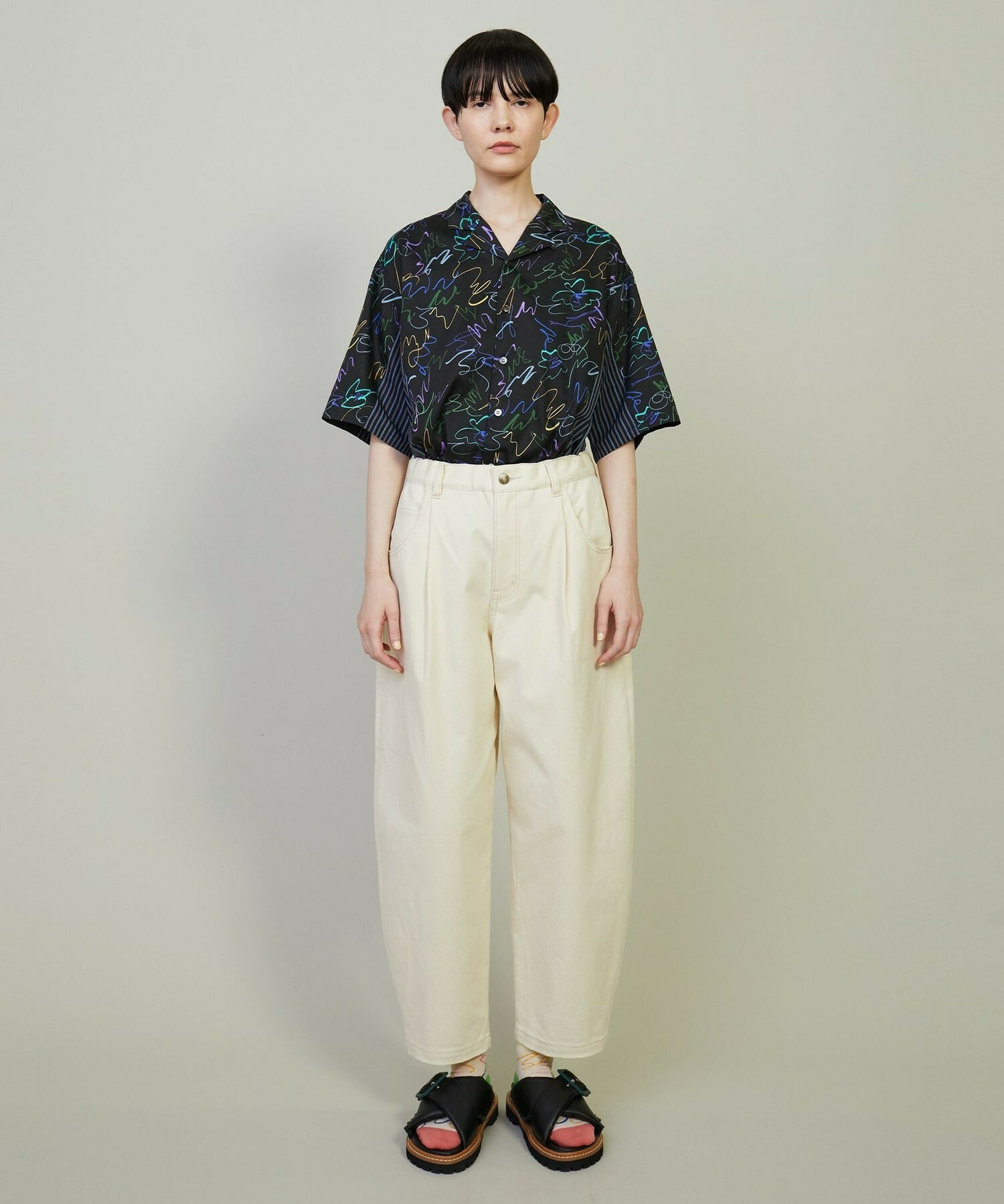 爽やかなオープンカラーの衿にゆったりとしたリラックスシルエットが程よいヌケ感を出しているシャツブラウス。