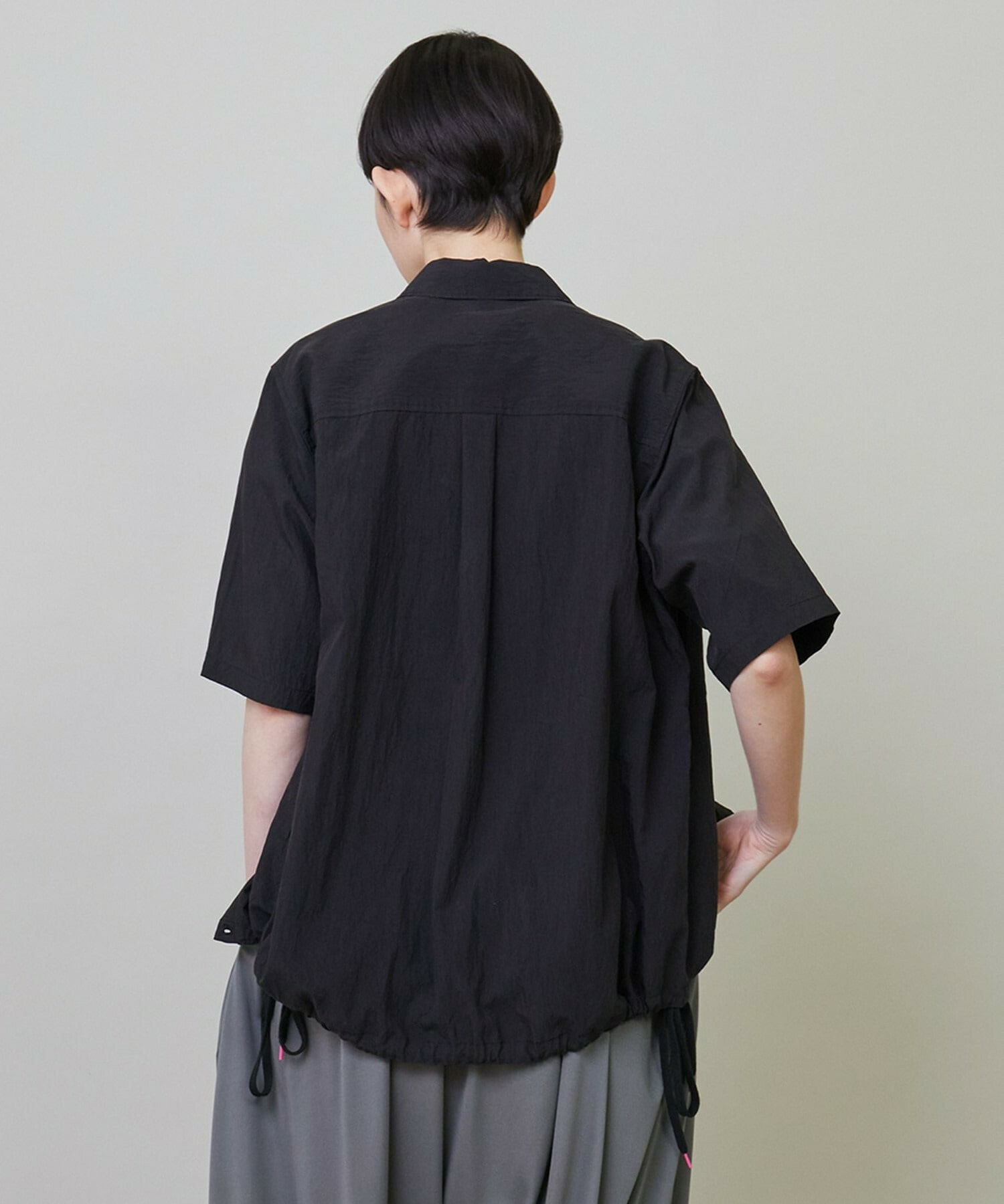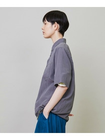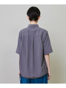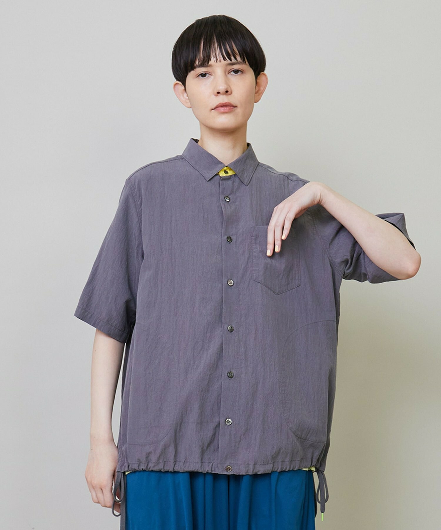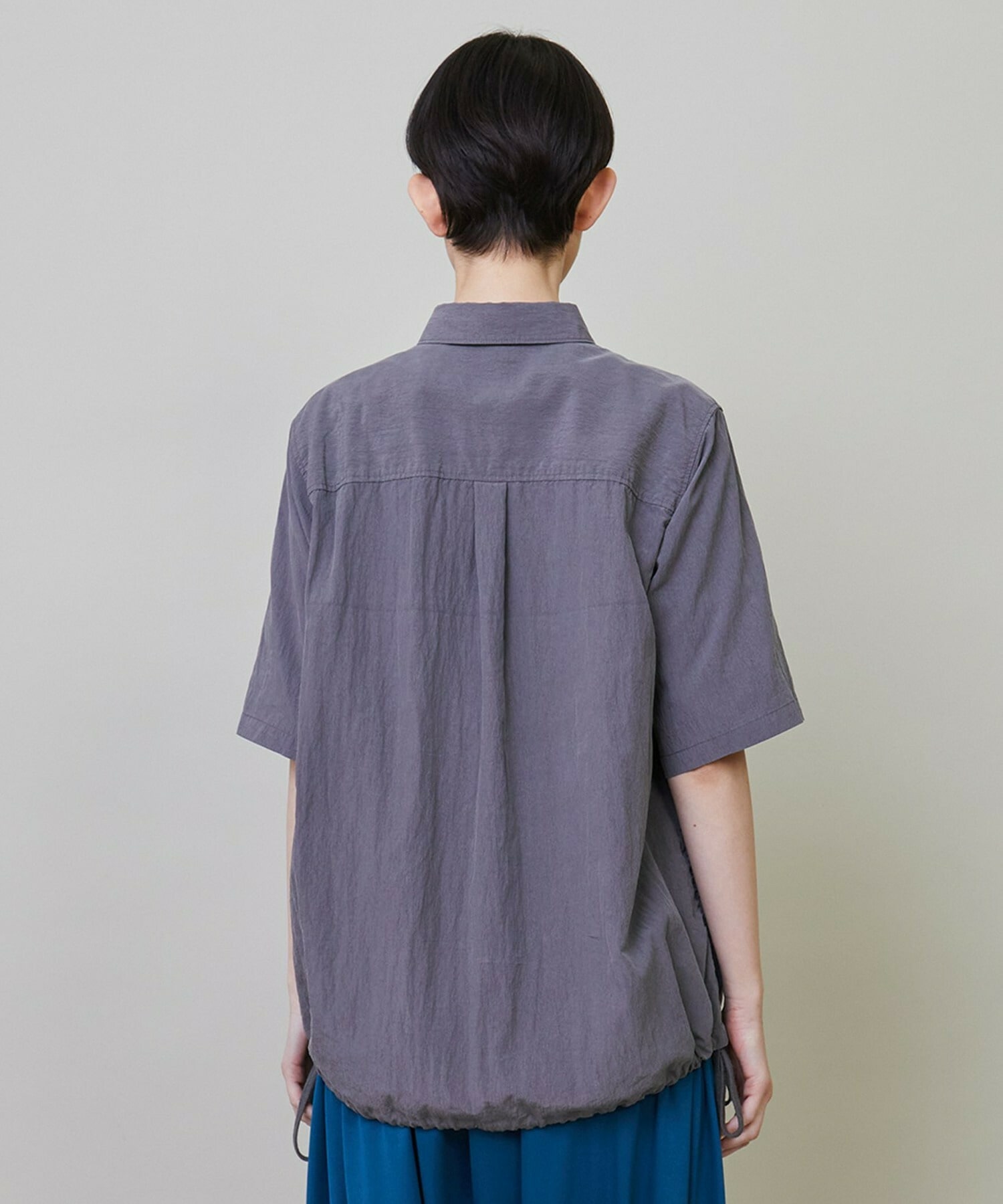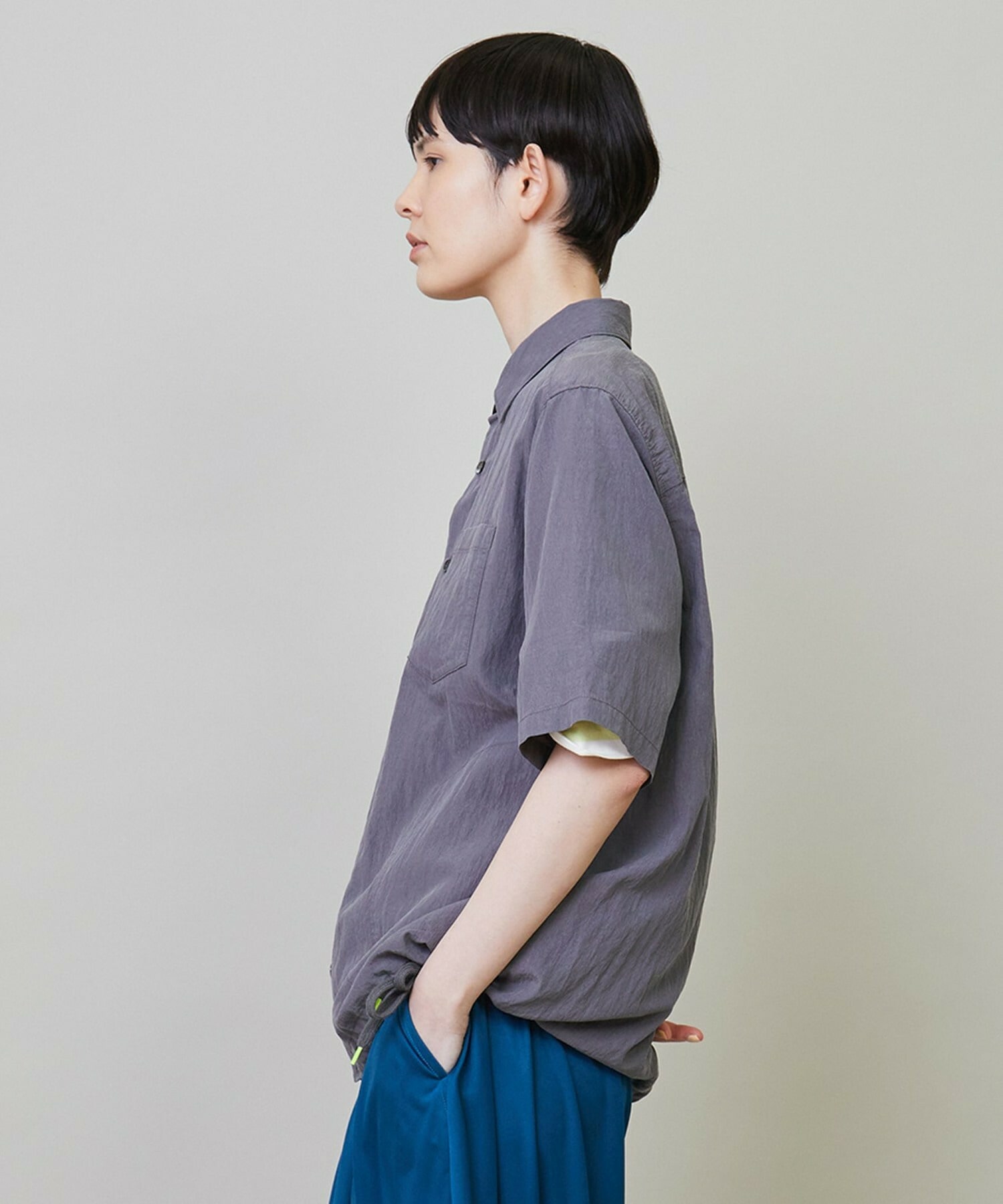 ゆったりとしたリラックスシルエットながら、生地の持つ適度なハリで体のシルエットを拾いにくい羽織りとしても活躍できるシャツブラウスです。