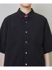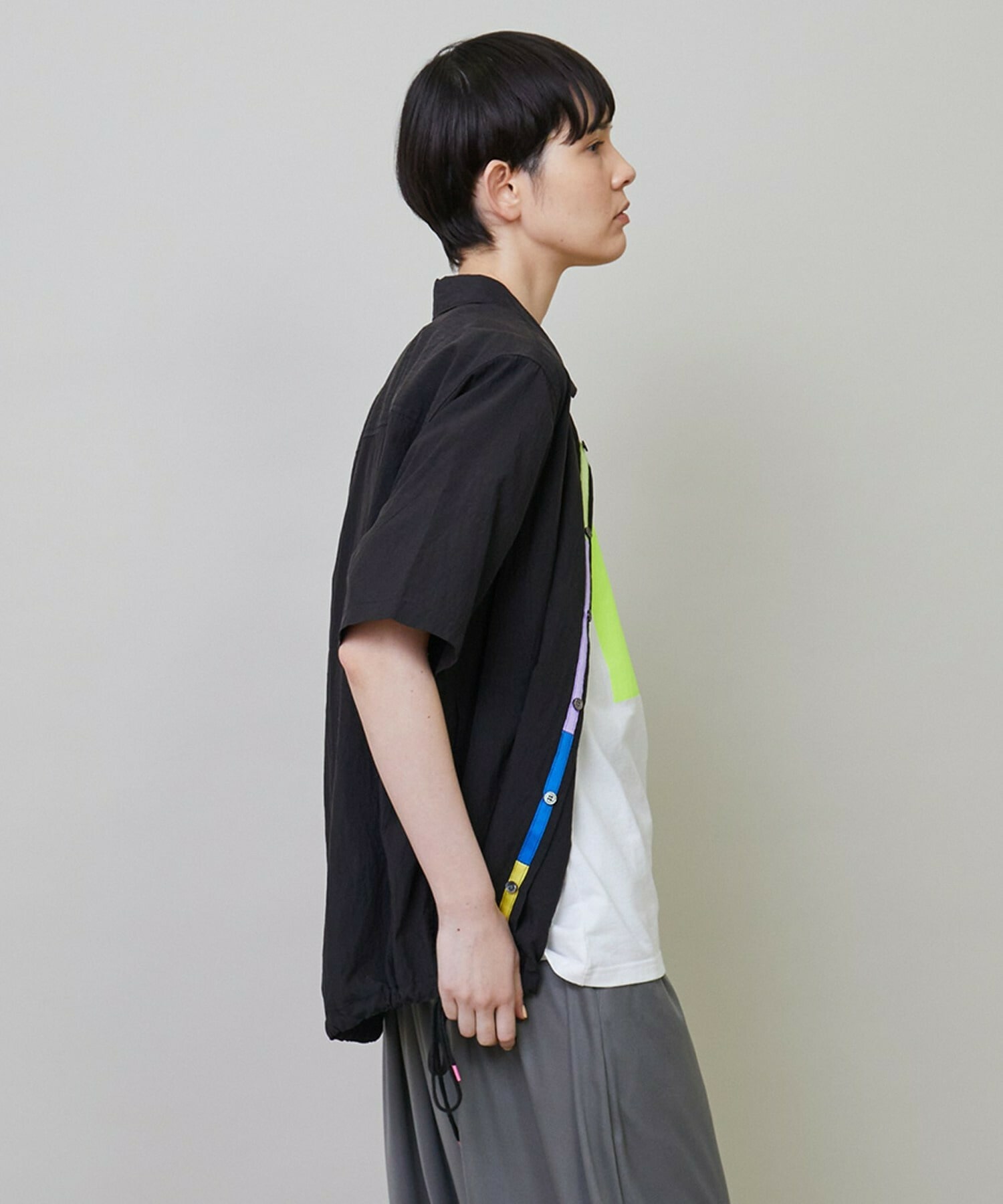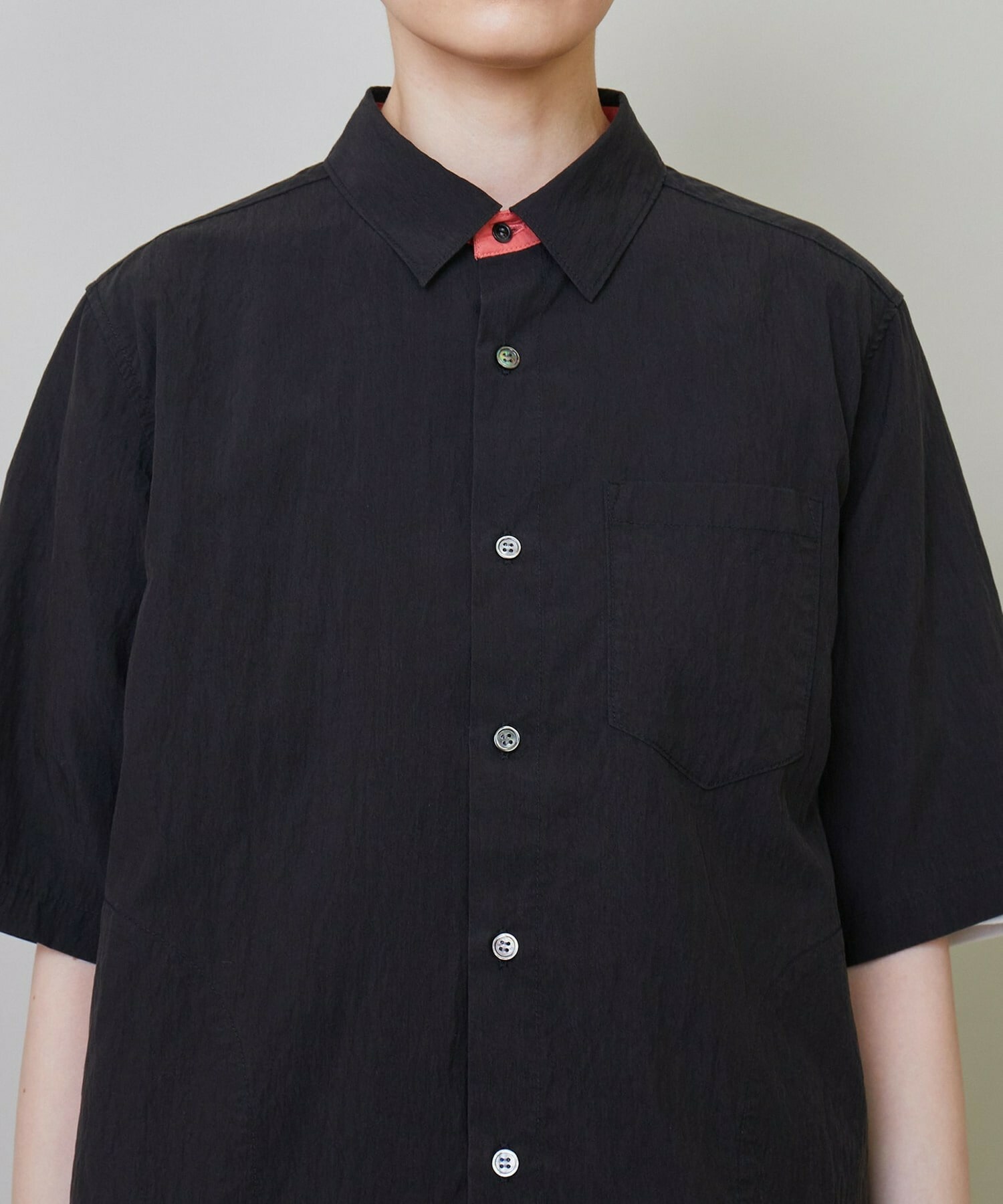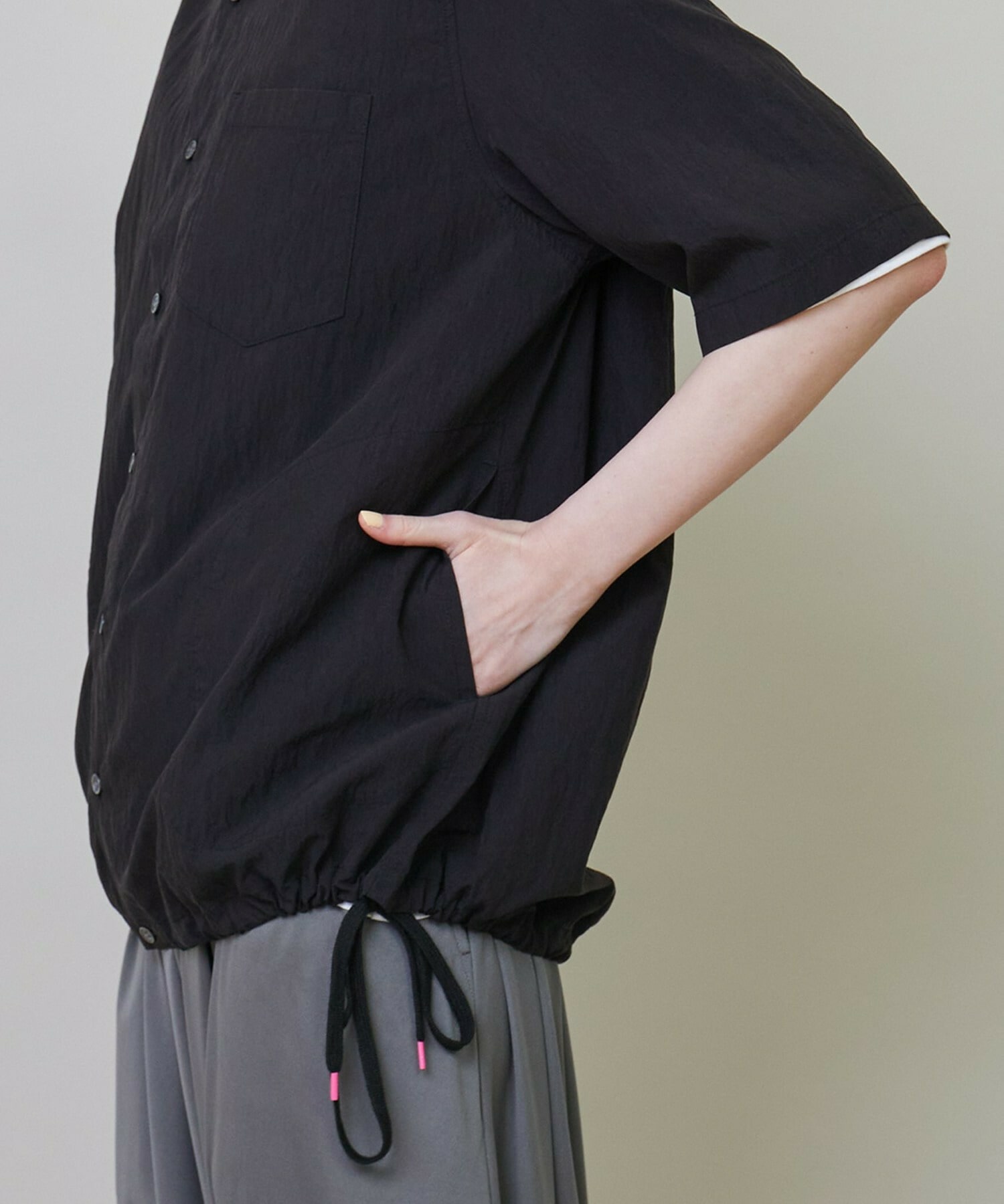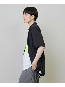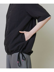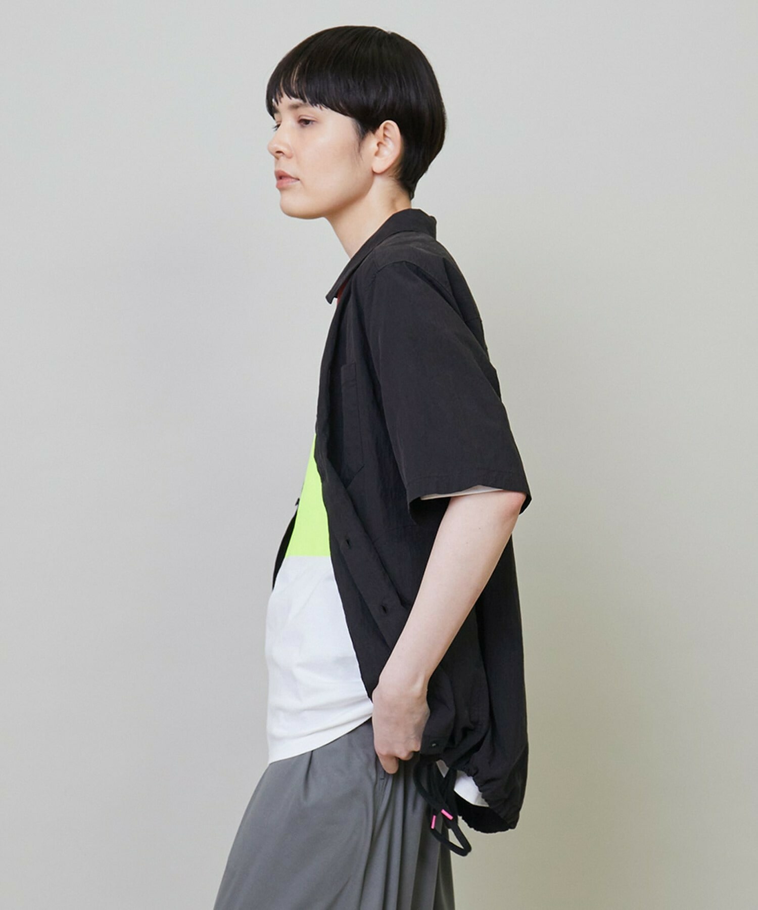 ゆったりとしたリラックスシルエットながら、生地の持つ適度なハリで体のシルエットを拾いにくい羽織りとしても活躍できるシャツブラウスです。