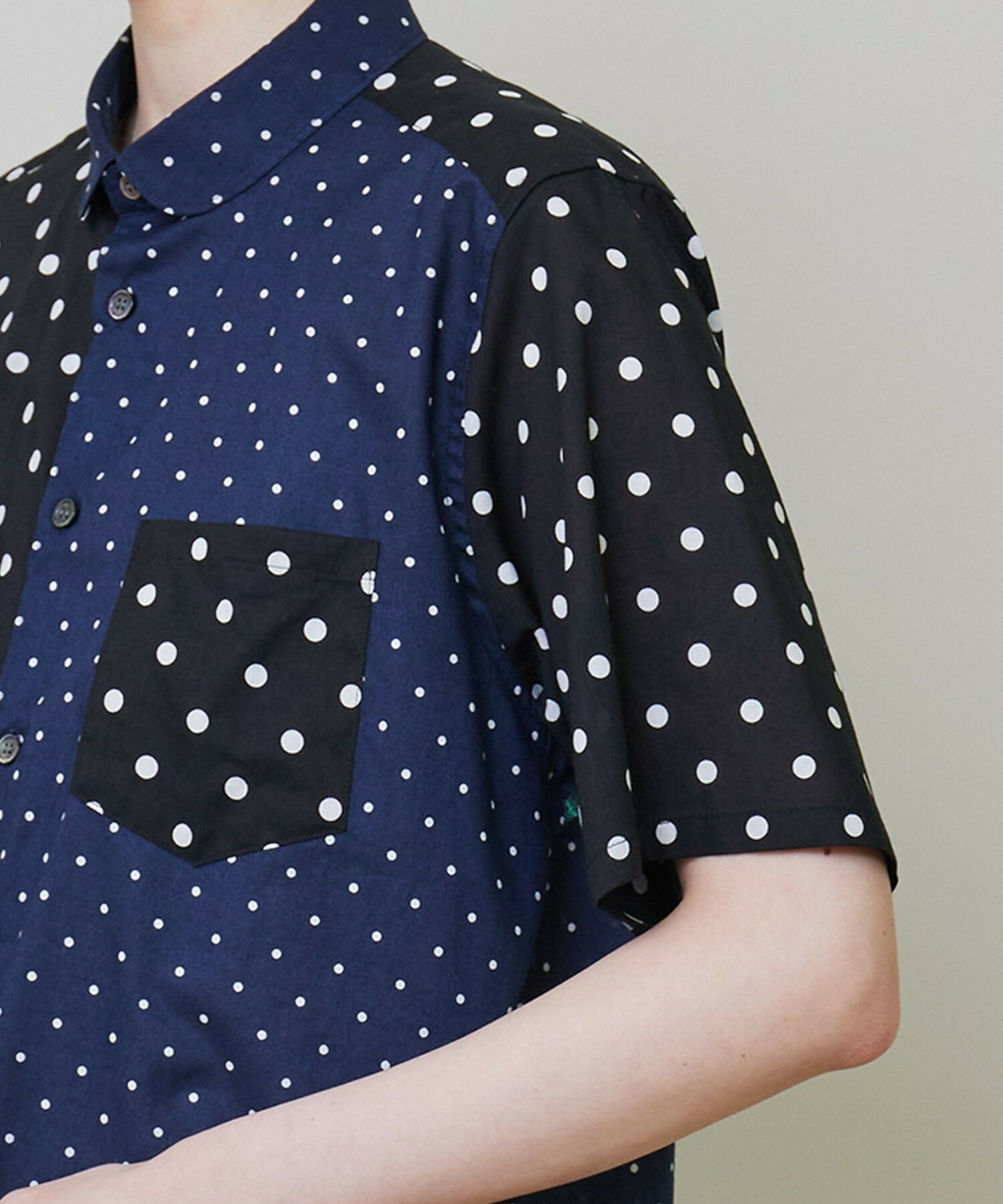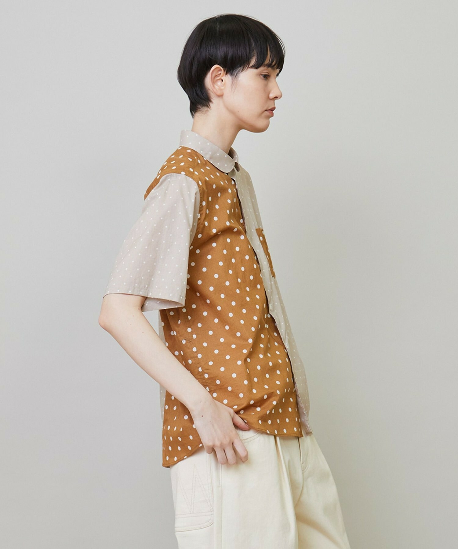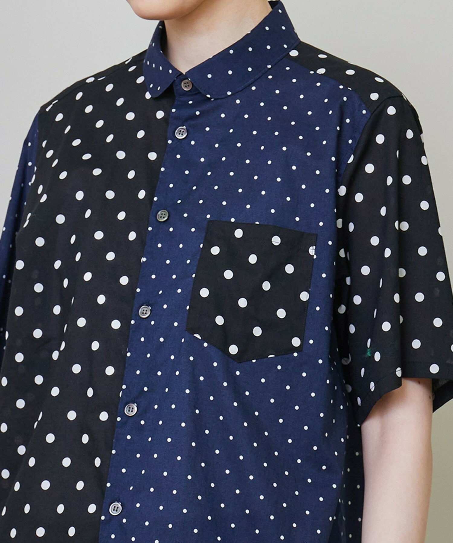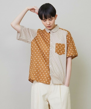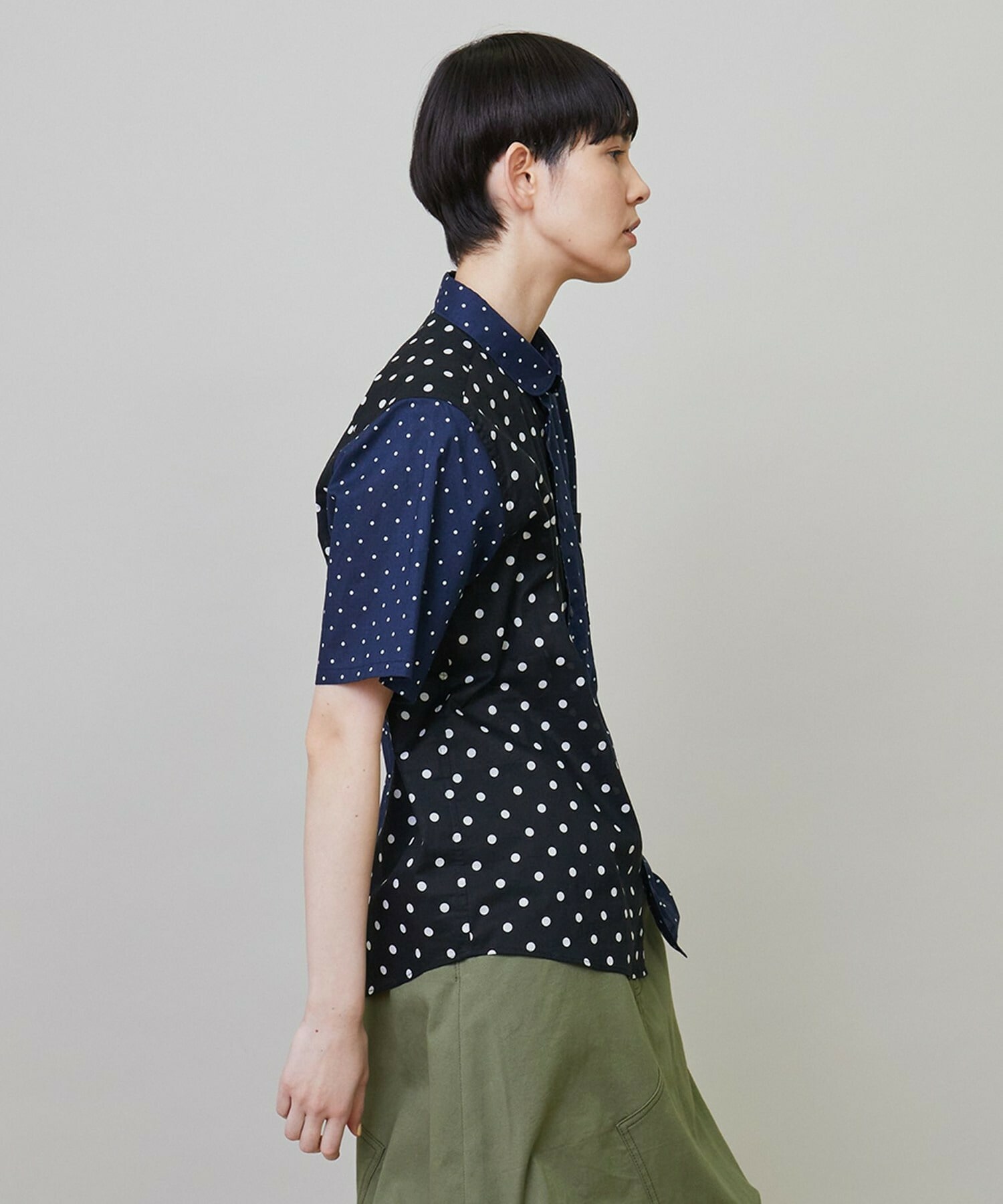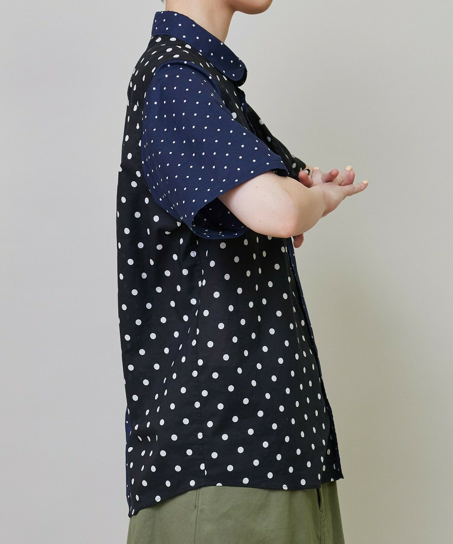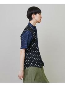 綿特有の肌触りの良さと程よい軽さが特徴の綿ローンをベースに2種類のドット生地を組み合わせています。
