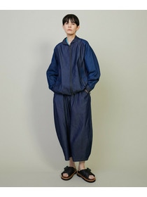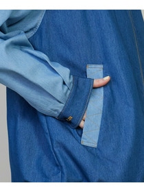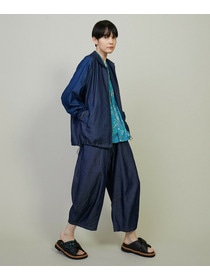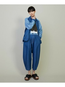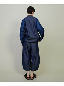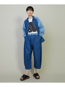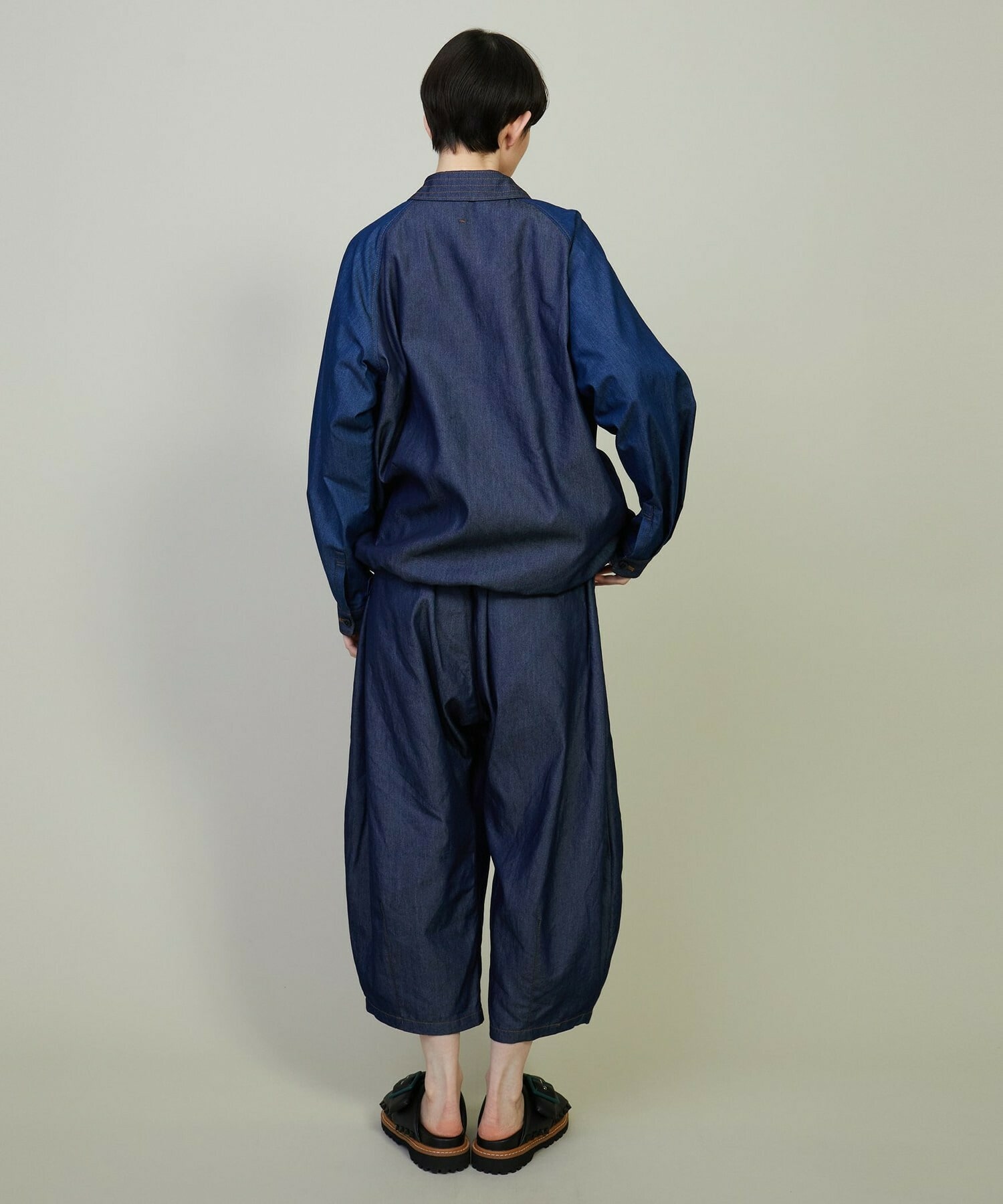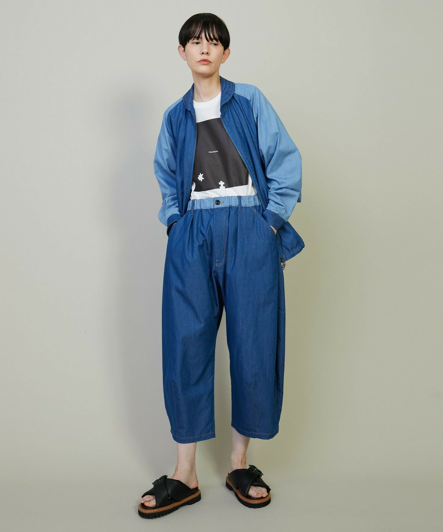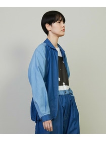軽さと適度な光沢感が特徴のライトオンスのデニム素材をブリーチによって4段階に色を落とした素材を組み合わせたアイテム。