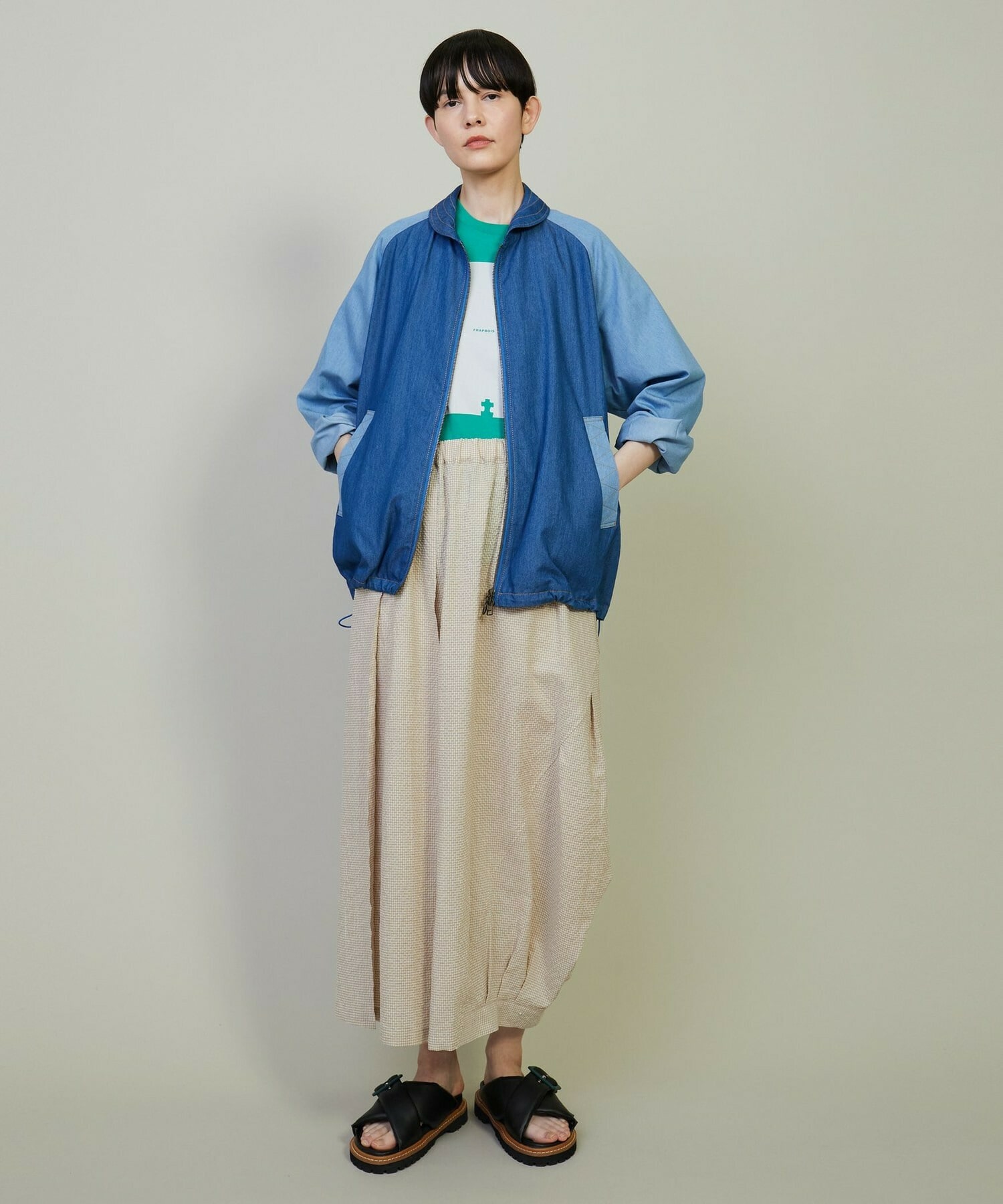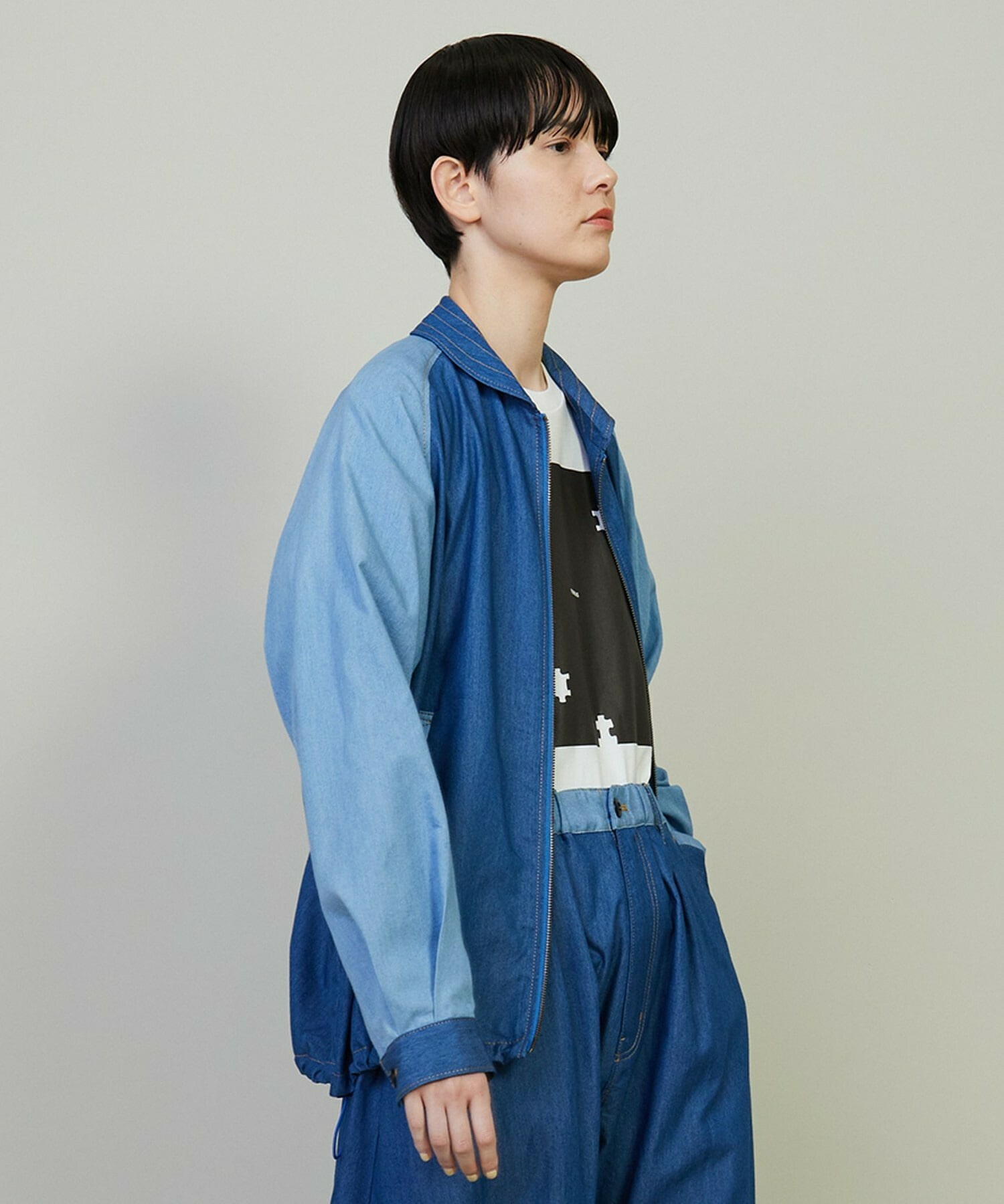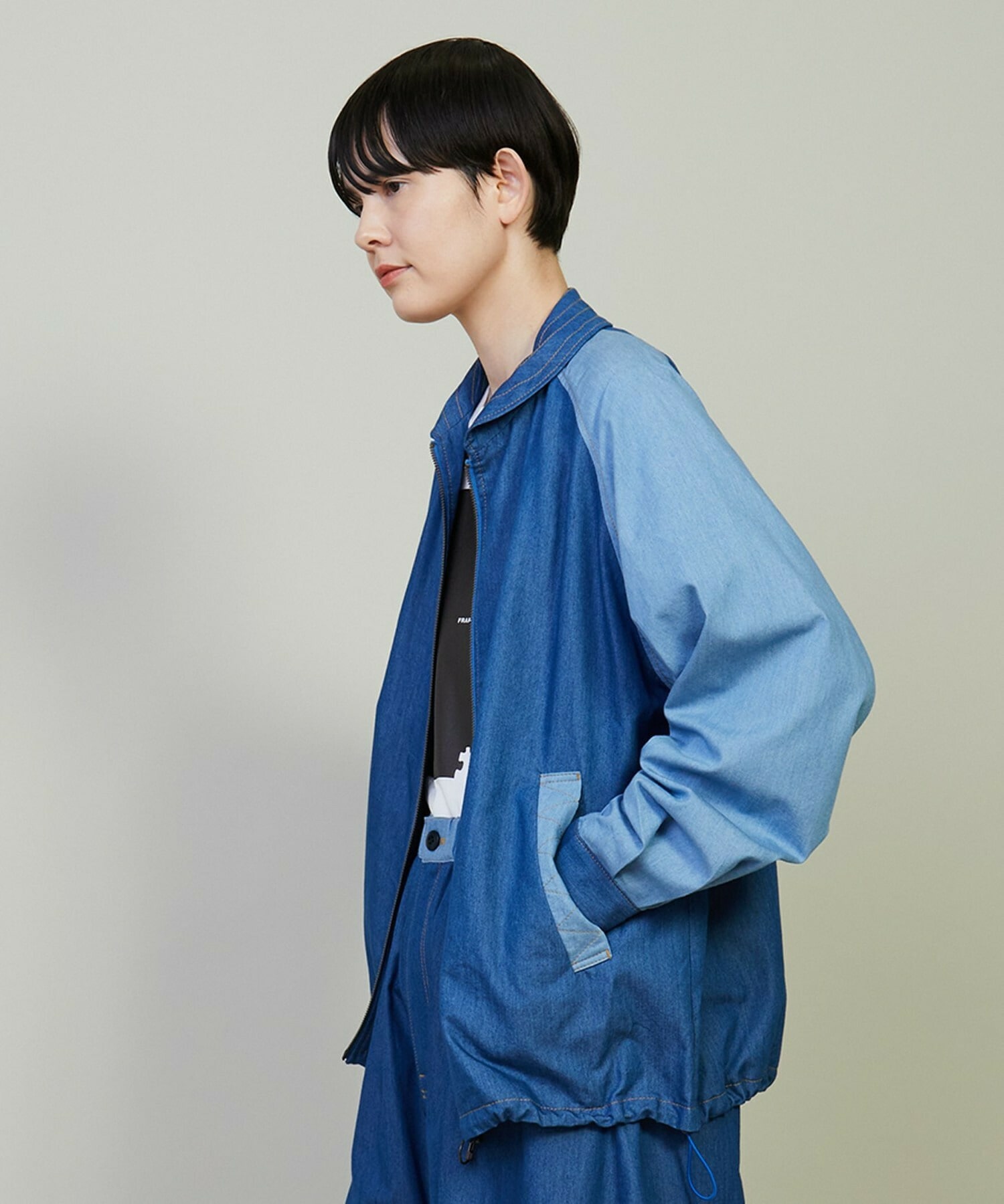 ゆったりとしながらもルーズ過ぎない程よいシルエットのブルゾンは袖と身頃で色を変えることでスポーティーな印象もつくっています。