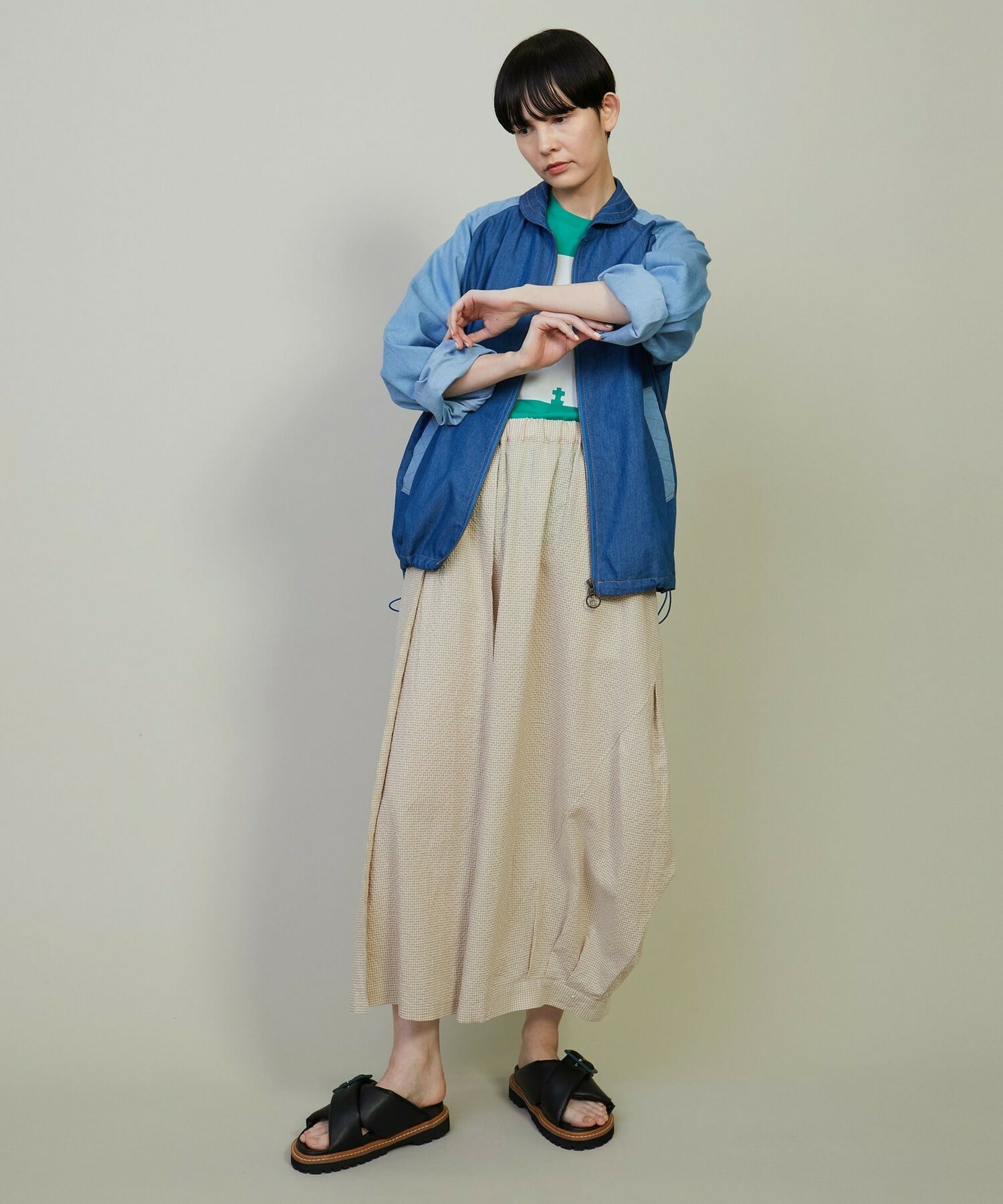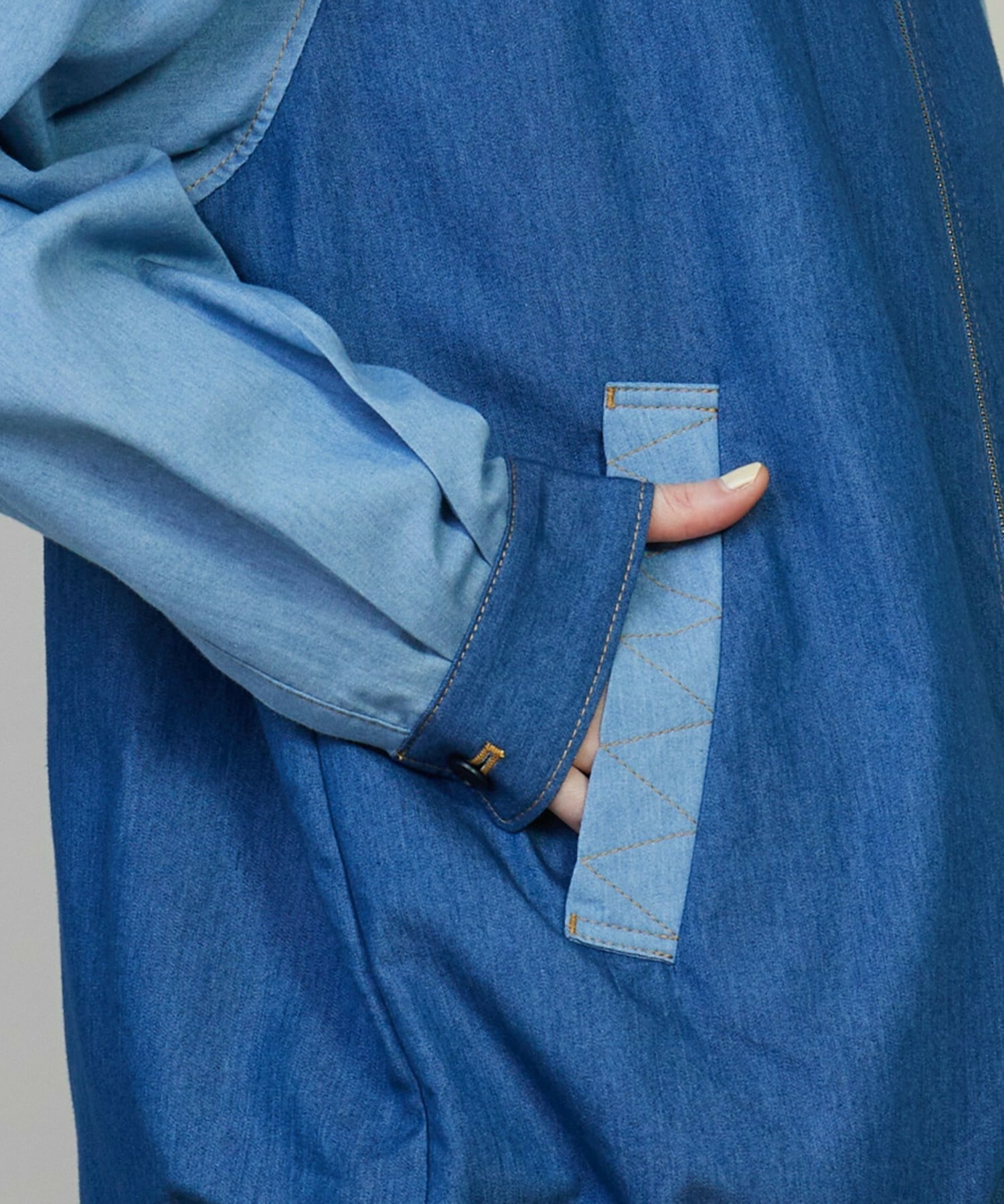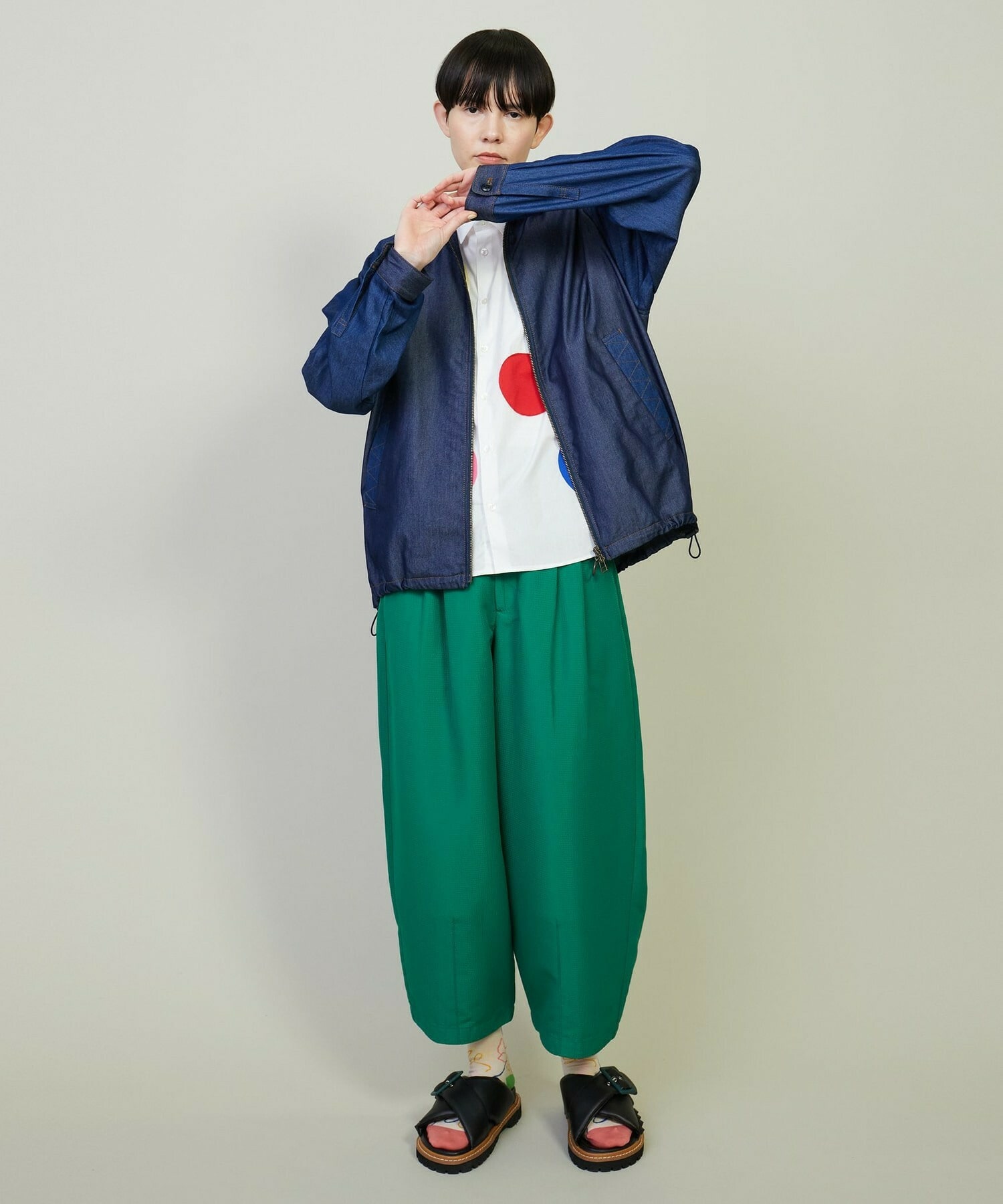 ゆったりとしながらもルーズ過ぎない程よいシルエットのブルゾンは袖と身頃で色を変えることでスポーティーな印象もつくっています。