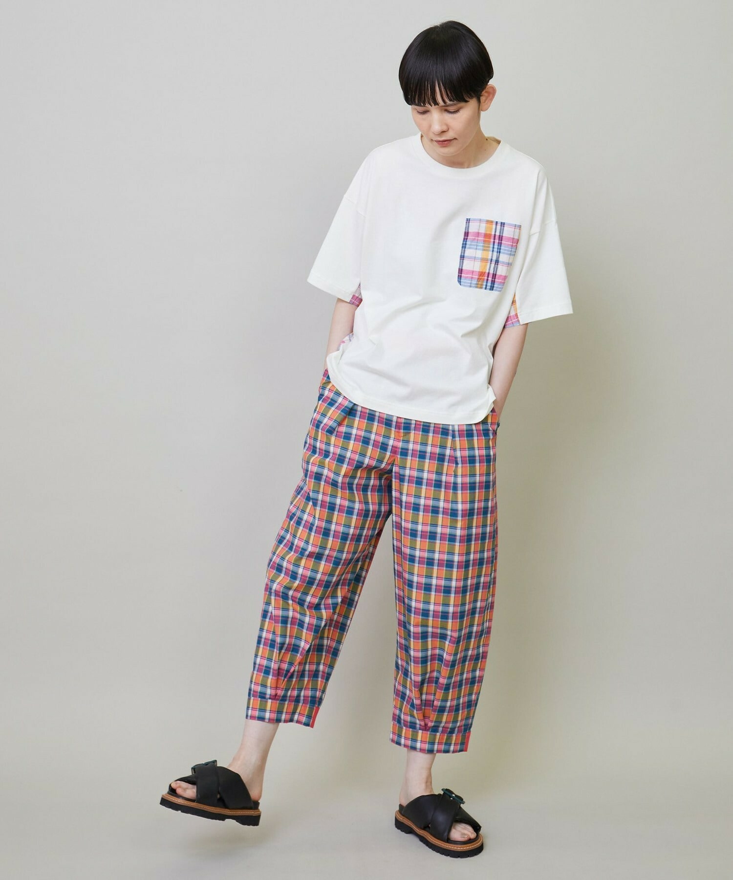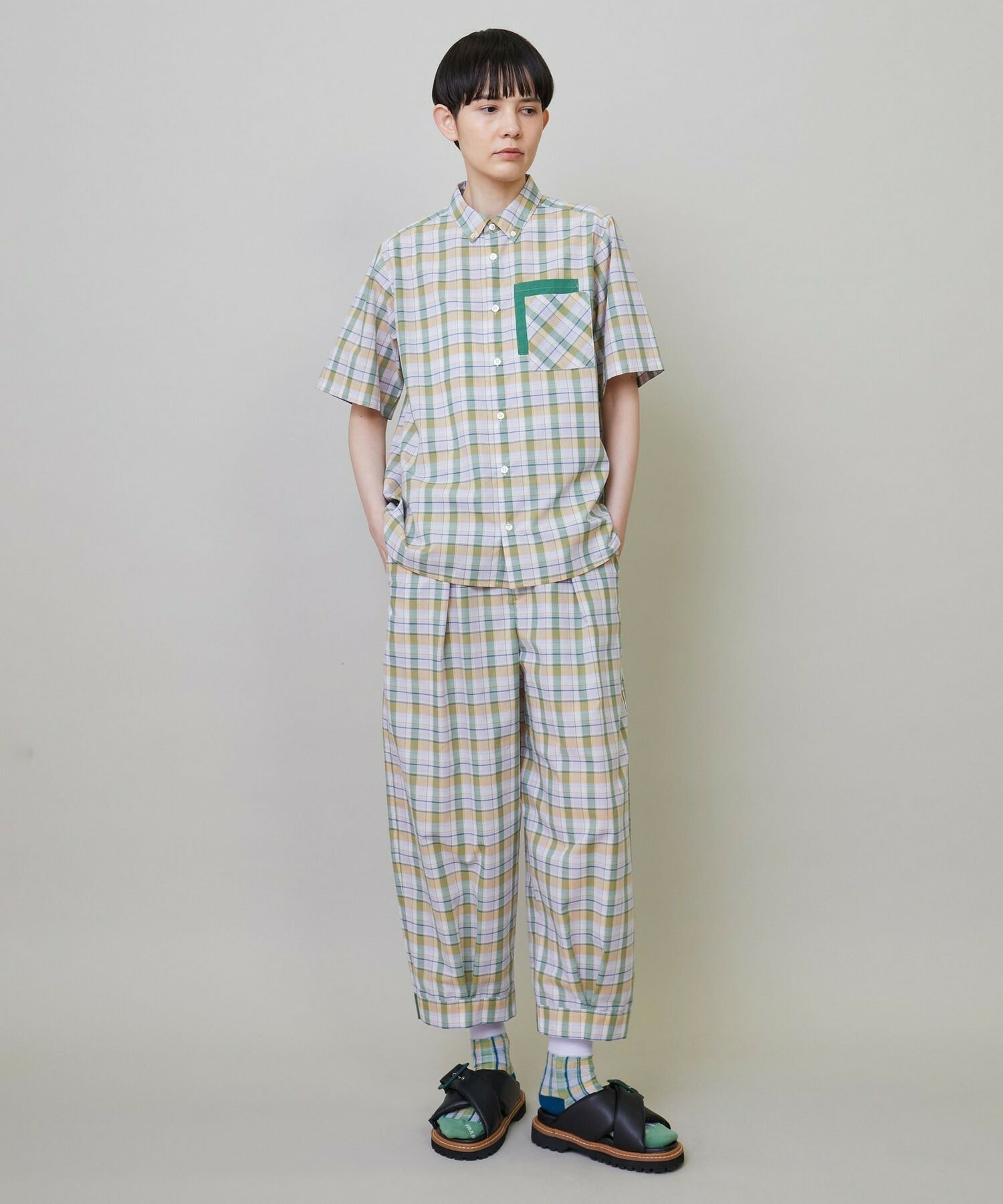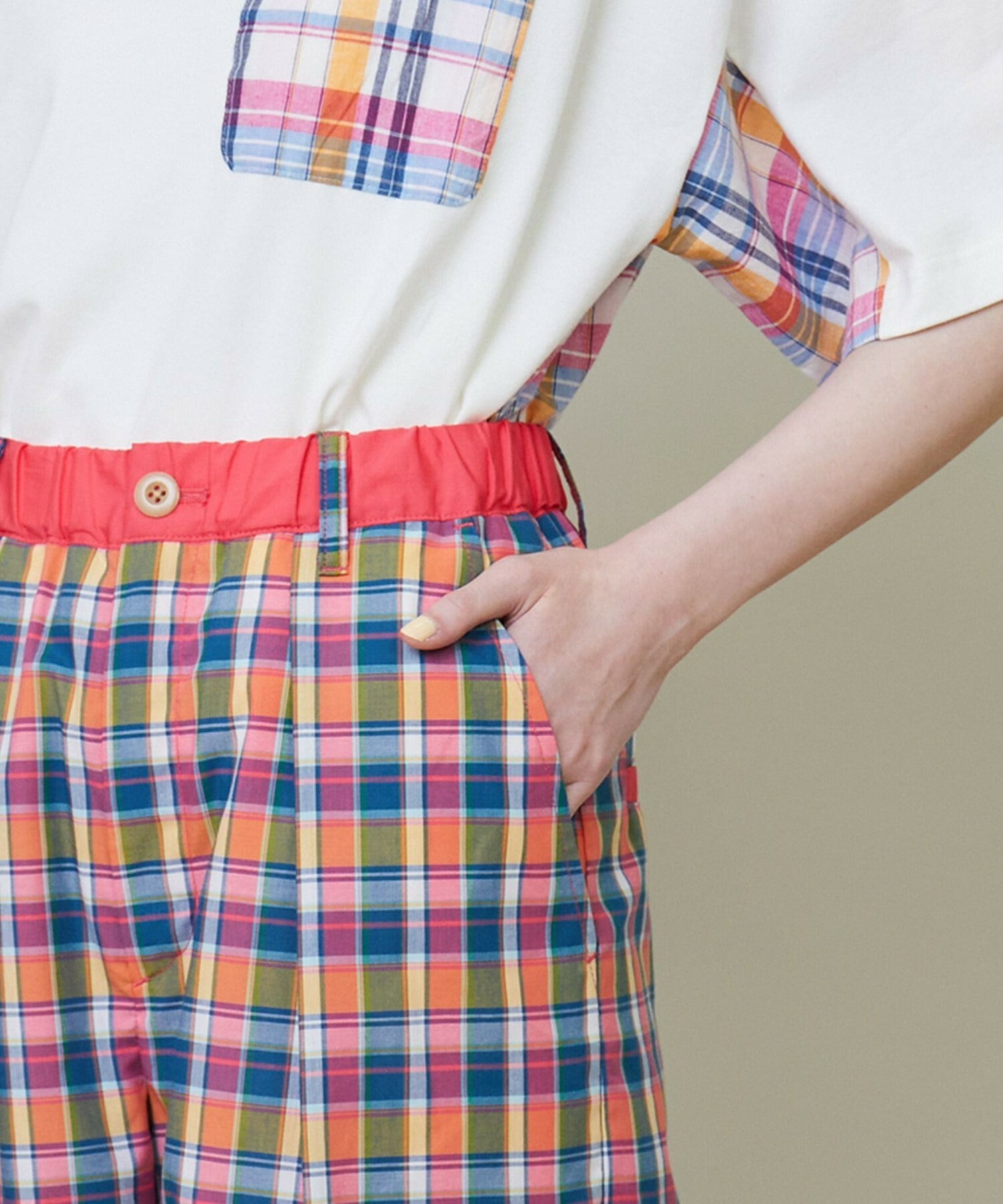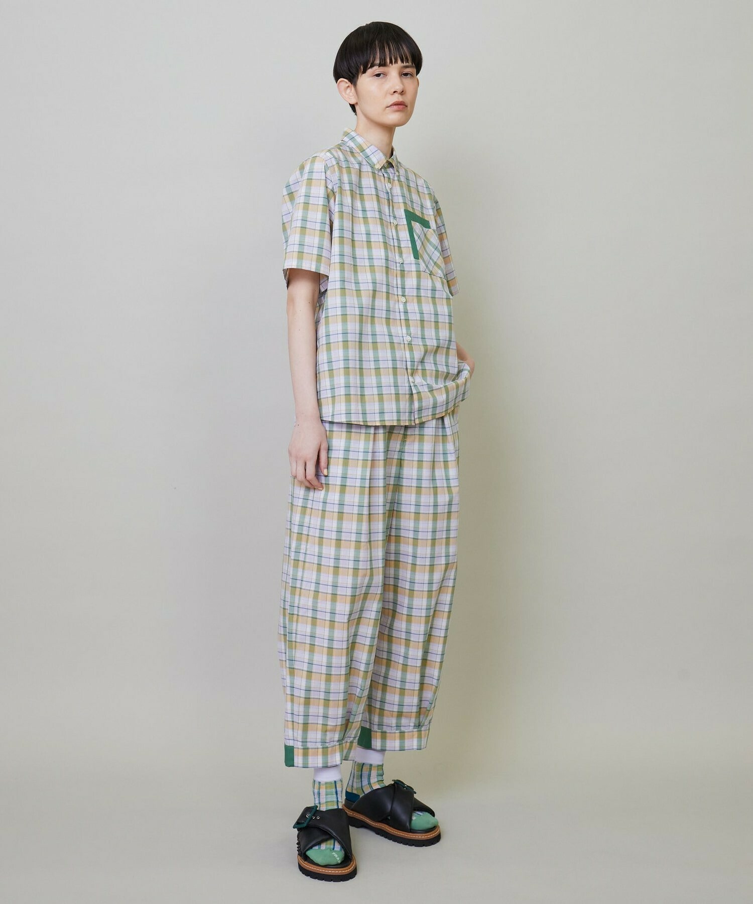 色の並び方や位置、柄の大きさなど細部にもこだわってつくったオリジナルのマドラス風のシャツ生地。