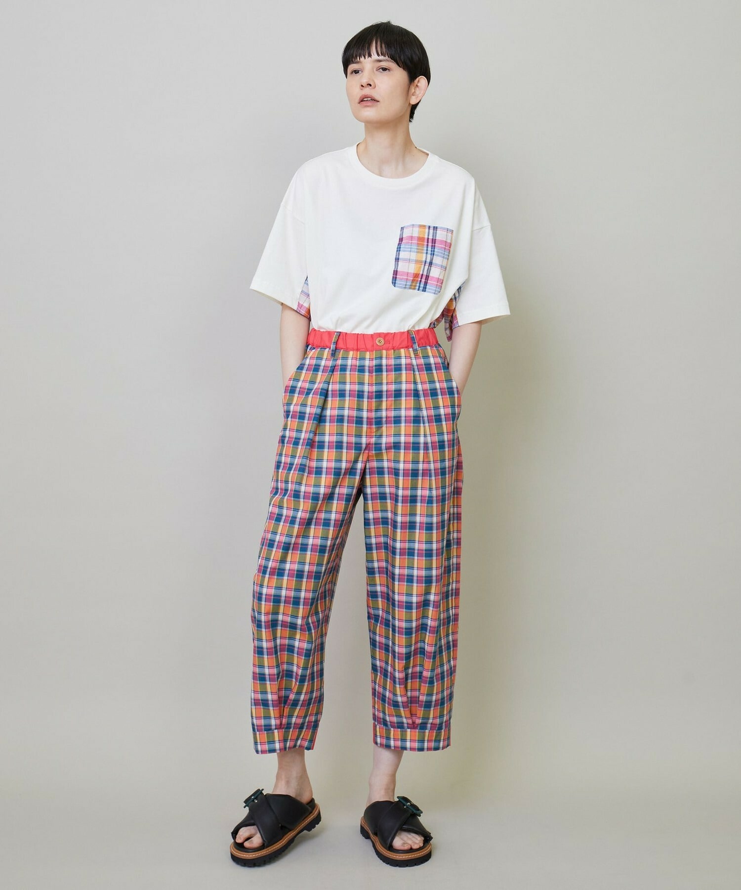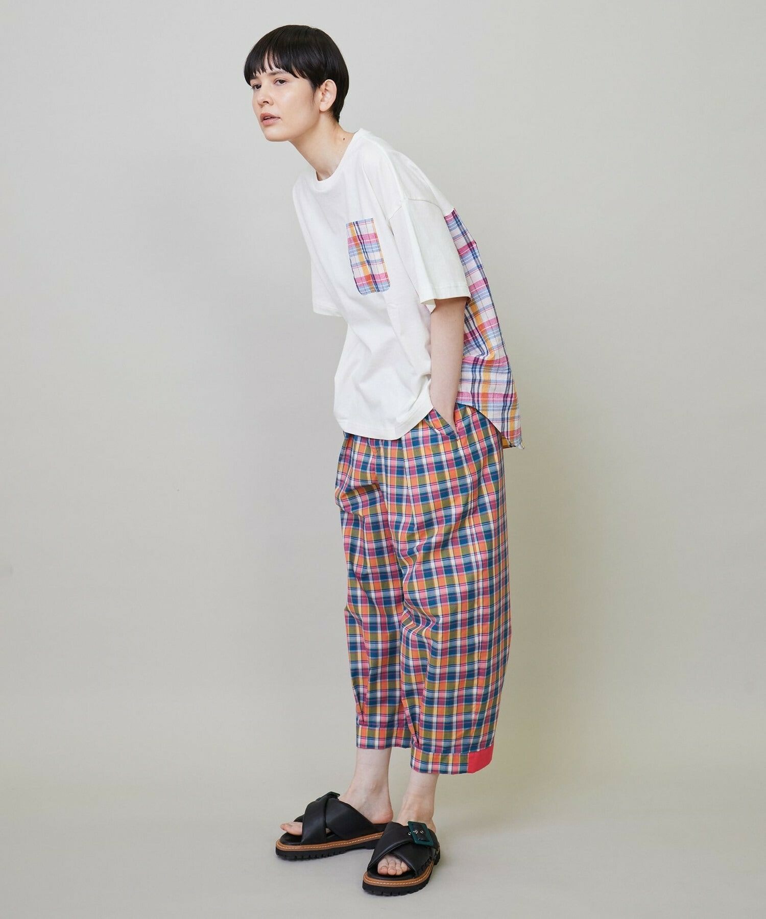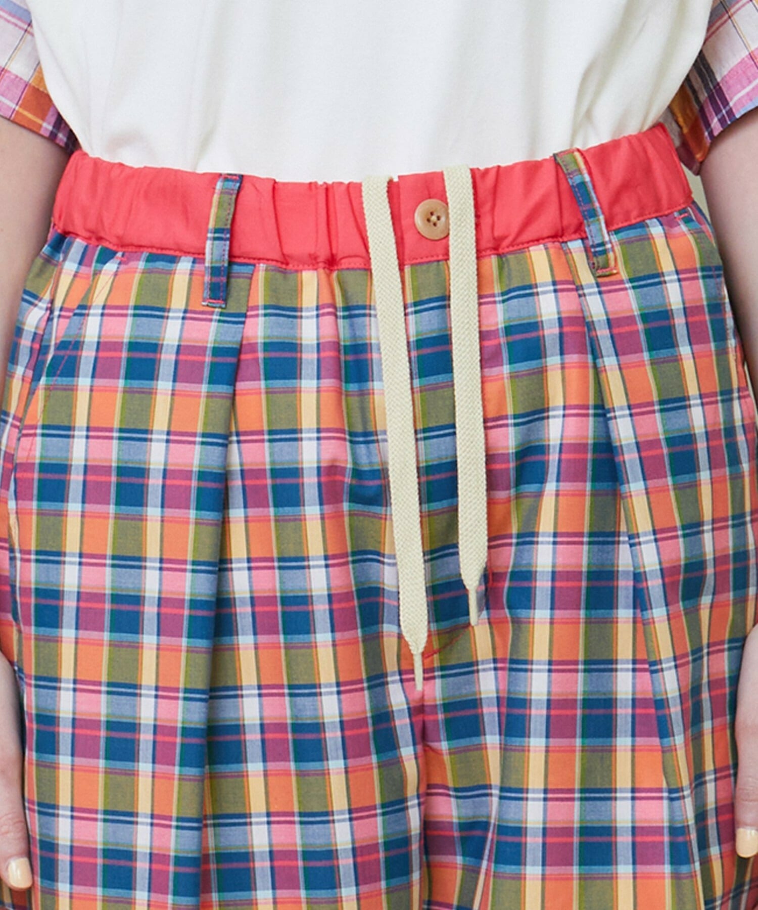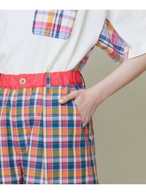 色の並び方や位置、柄の大きさなど細部にもこだわってつくったオリジナルのマドラス風のシャツ生地。