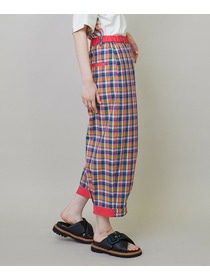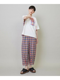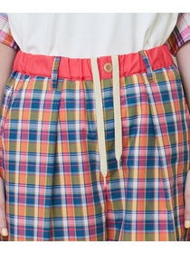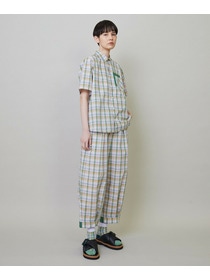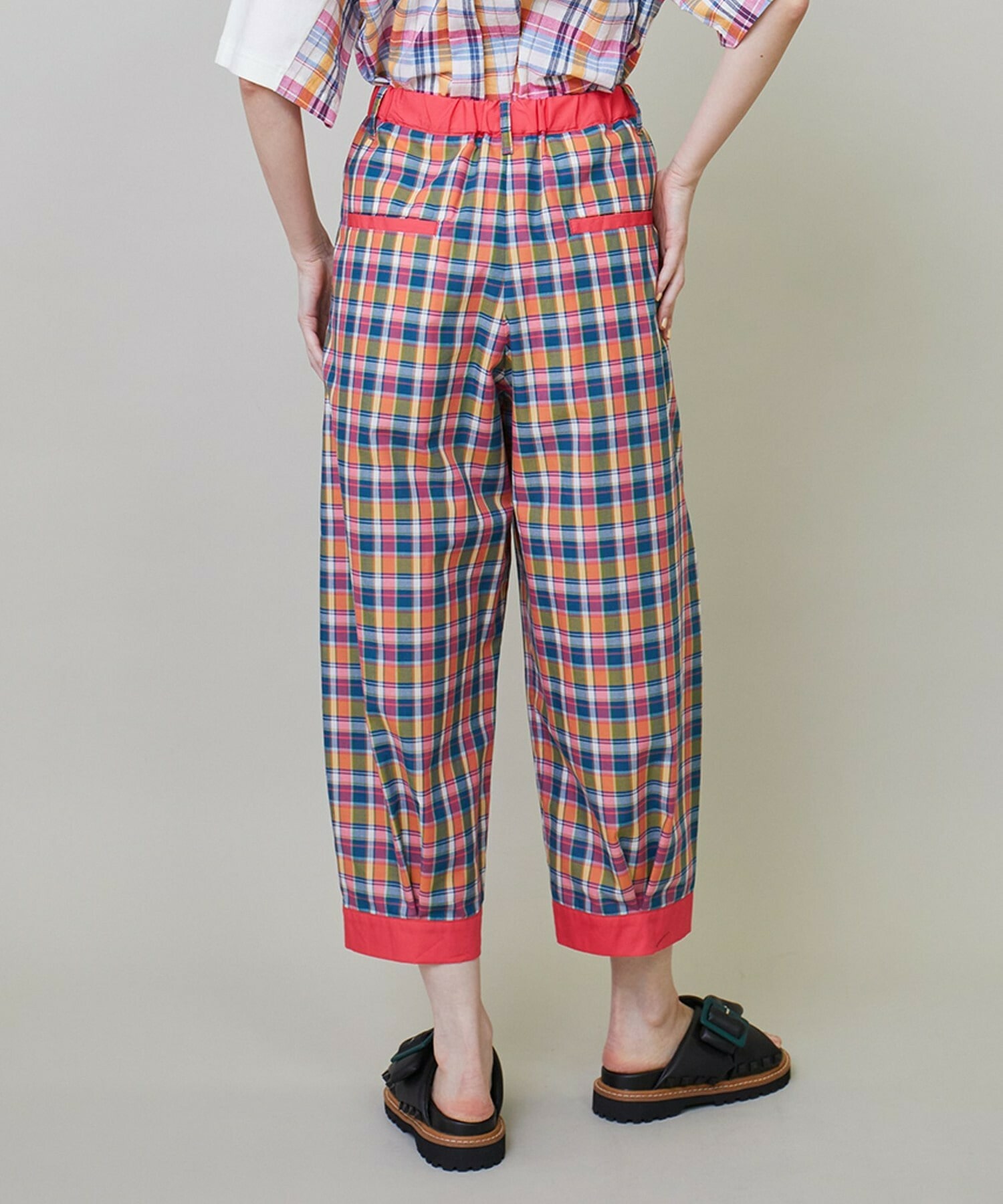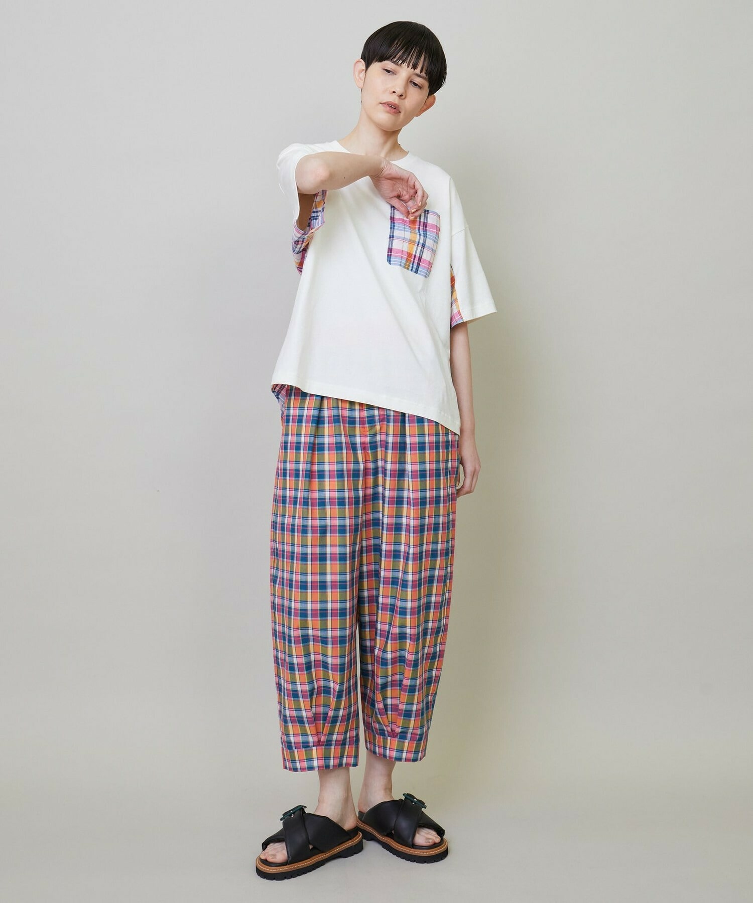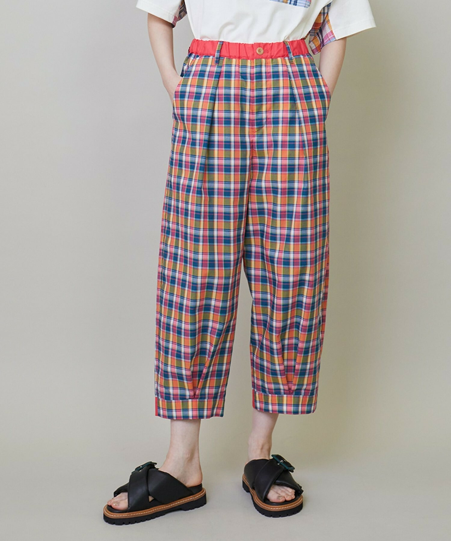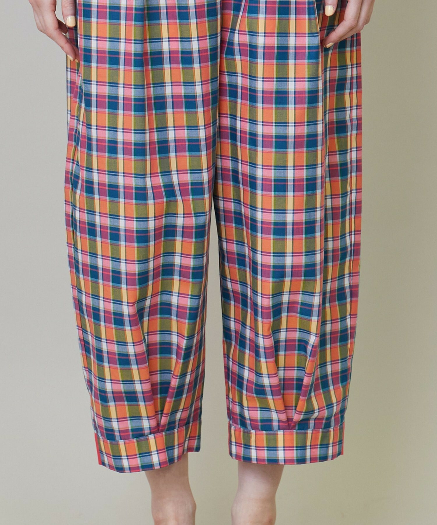 色の並び方や位置、柄の大きさなど細部にもこだわってつくったオリジナルのマドラス風のシャツ生地。