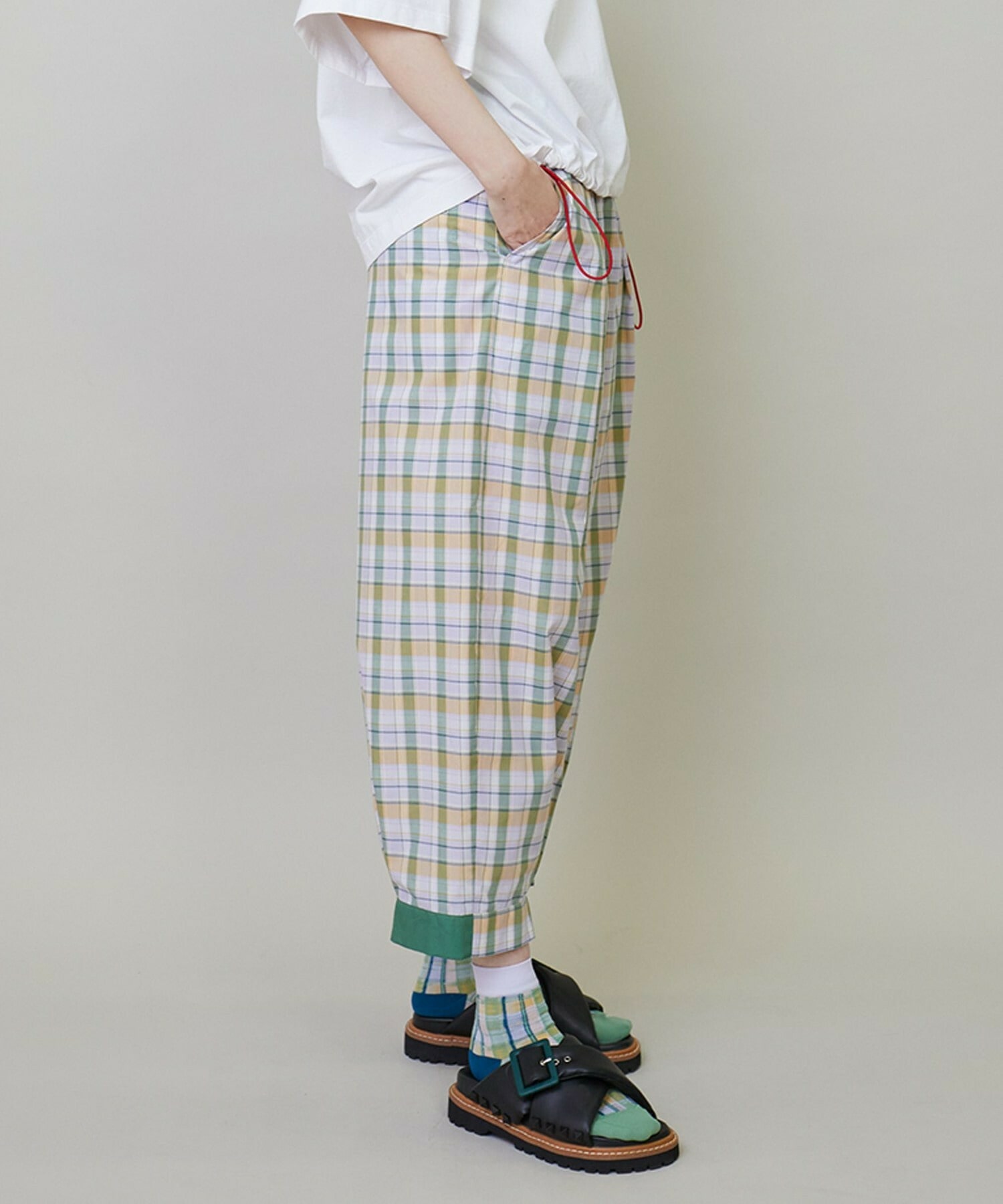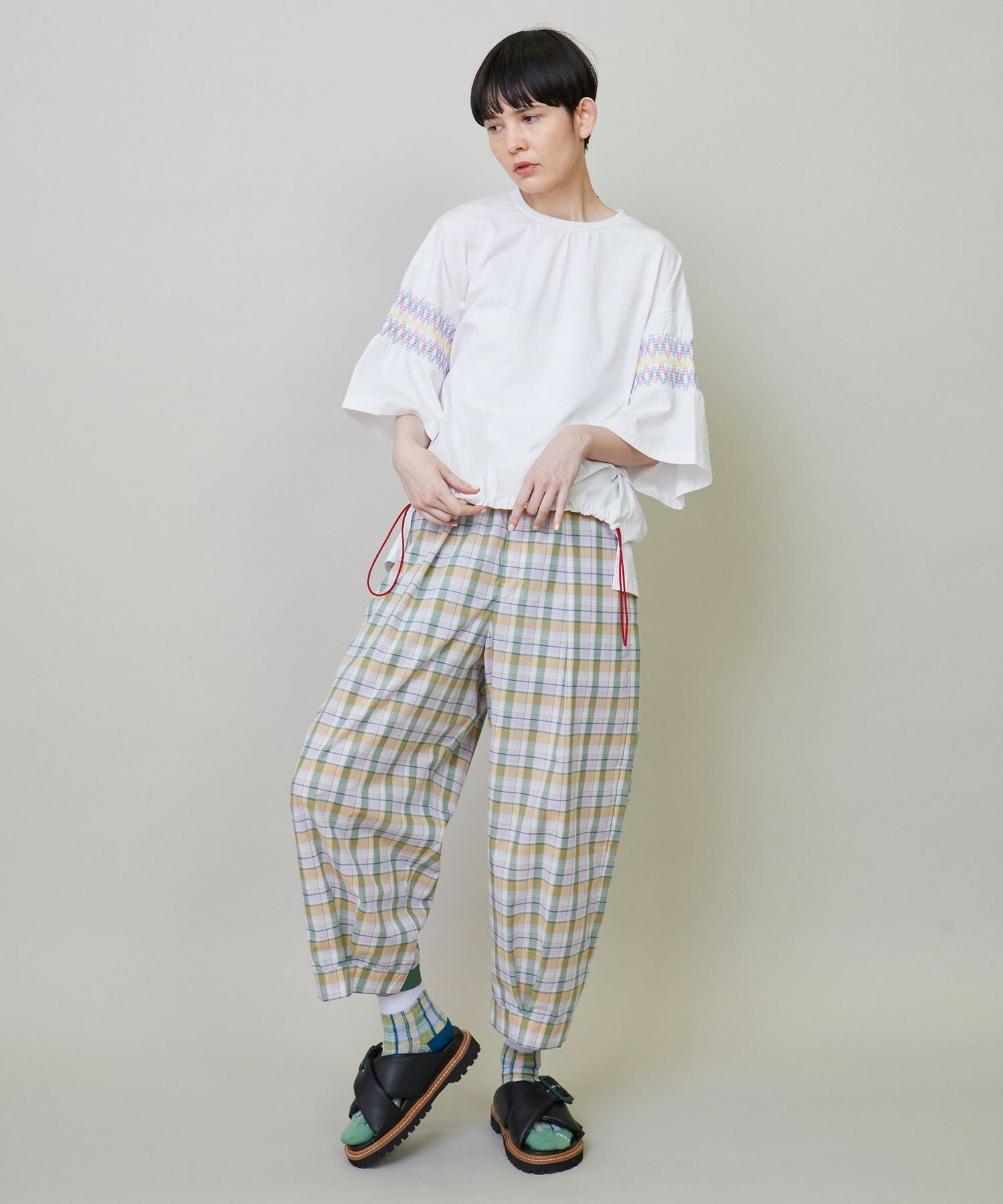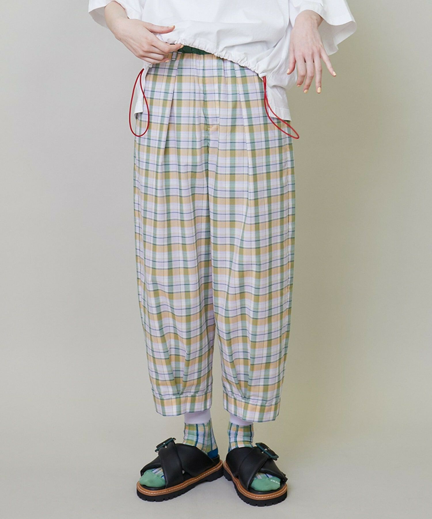 フロントにはタックを取り、すっきりとした印象をつくりながらやや短めの丈と裾に向かって丸くなったコクーンシルエットでキメ過ぎない程よいヌケ感をつくっています。