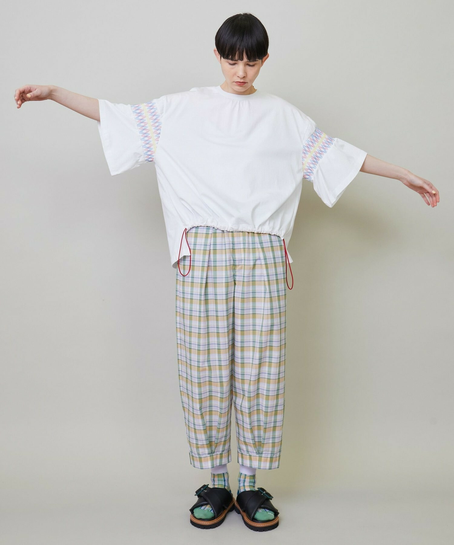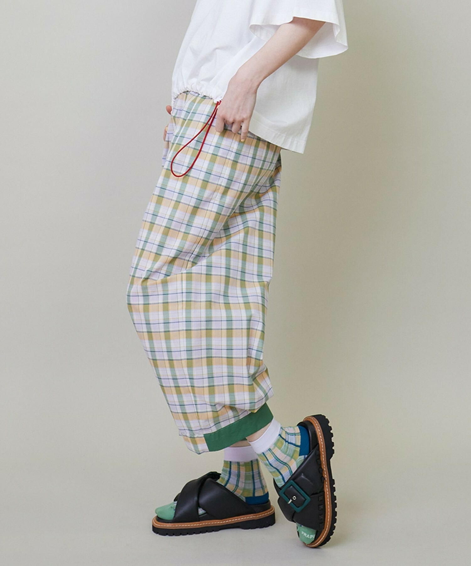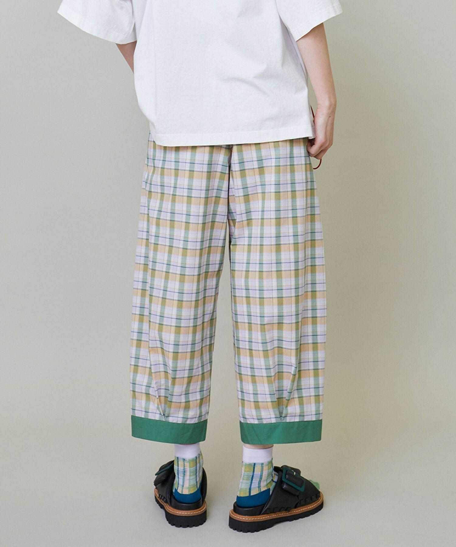 フロントにはタックを取り、すっきりとした印象をつくりながらやや短めの丈と裾に向かって丸くなったコクーンシルエットでキメ過ぎない程よいヌケ感をつくっています。