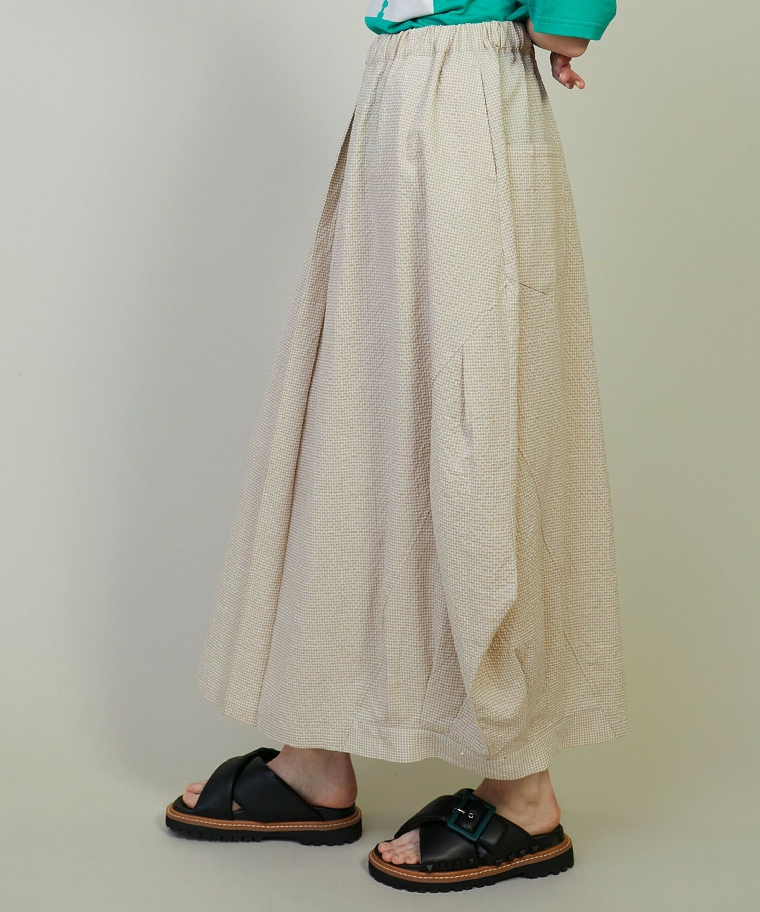 • 【FRAPBOIS】トーンサッカー デザインスカート 詳細画像 ベージュ 1