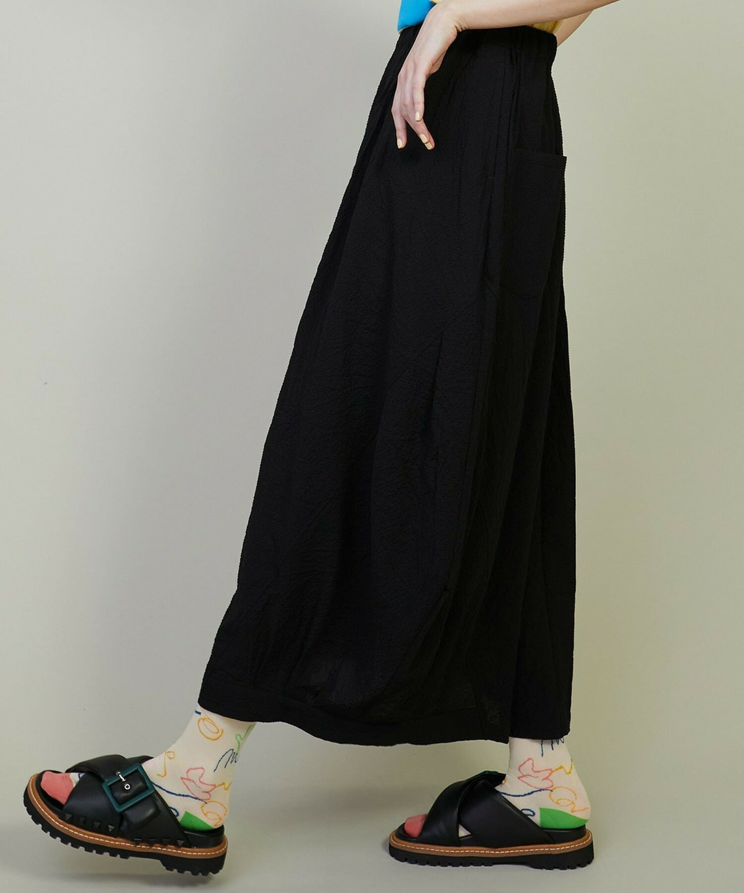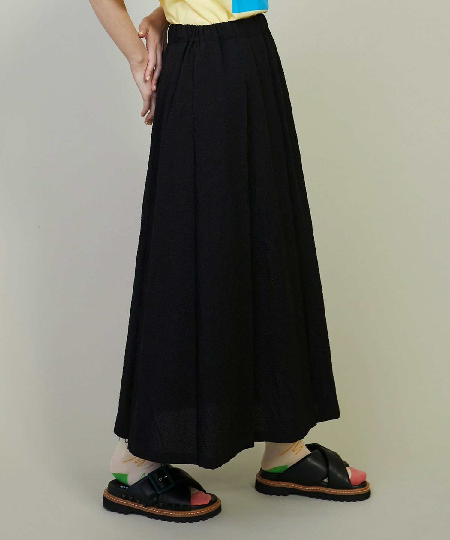 • 【FRAPBOIS】トーンサッカー デザインスカート 詳細画像 ブラック 15