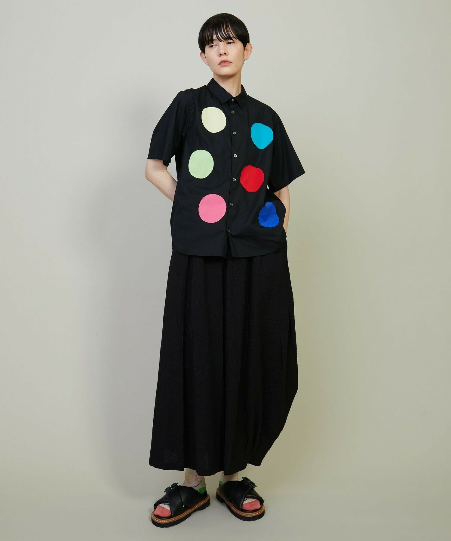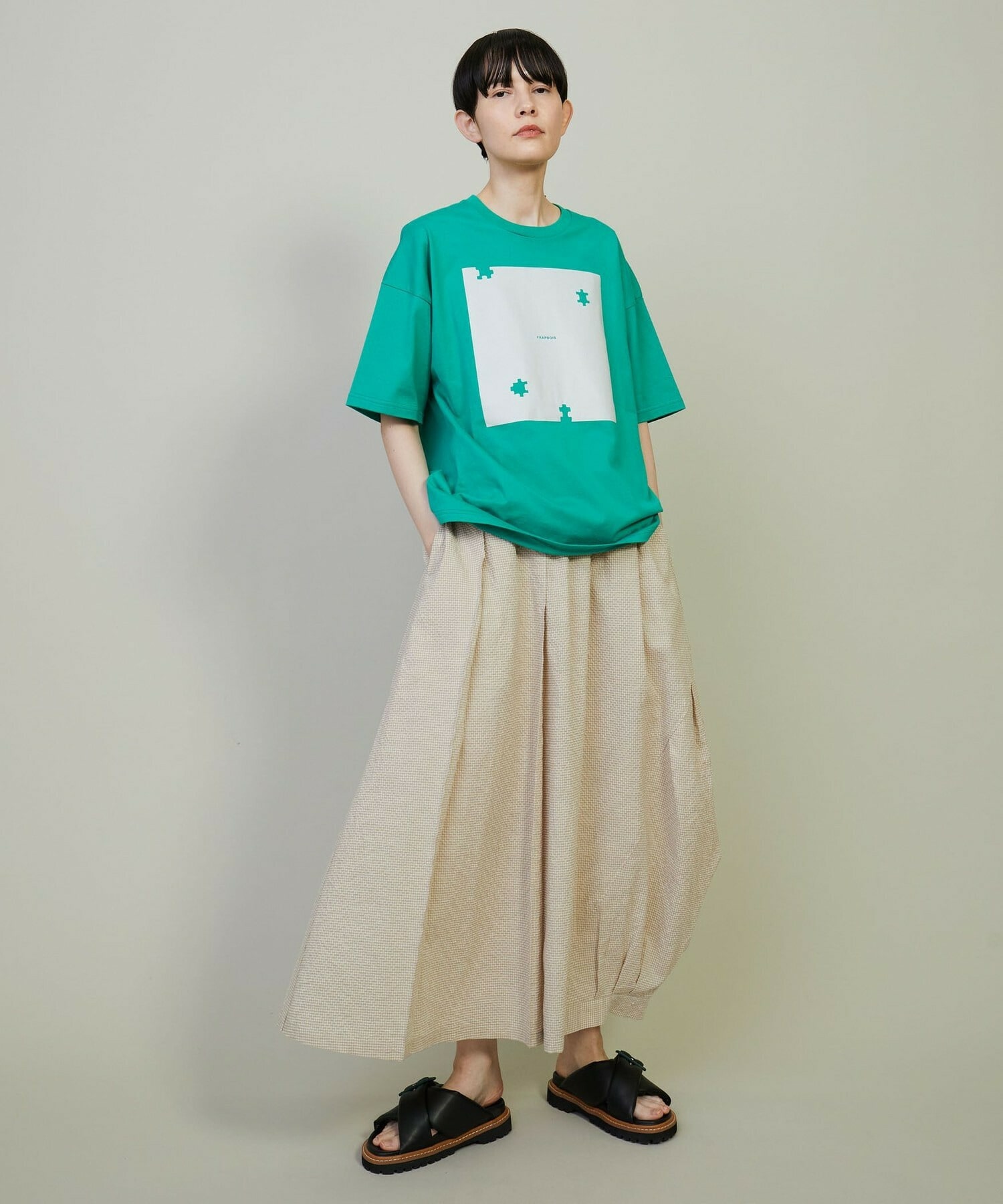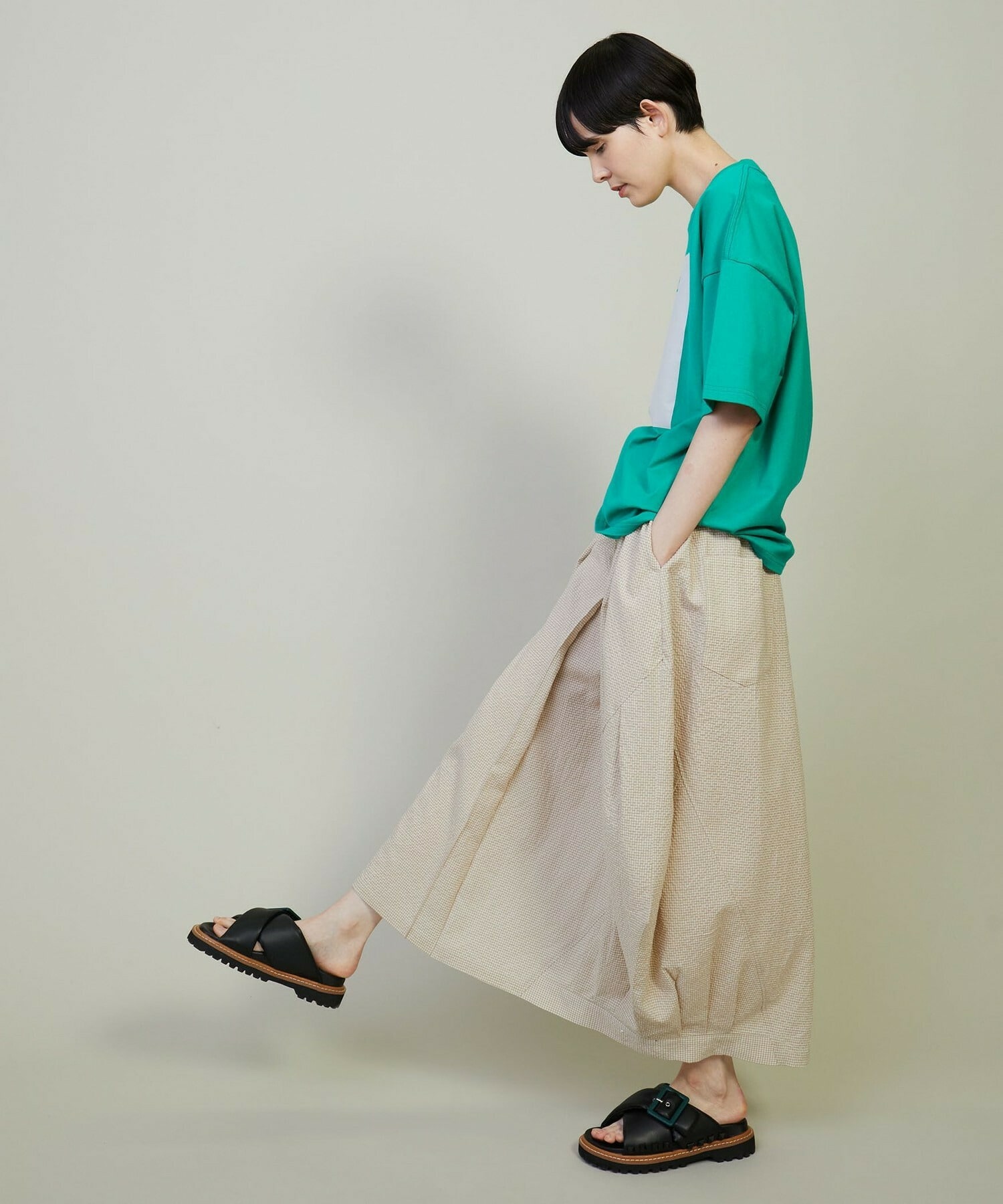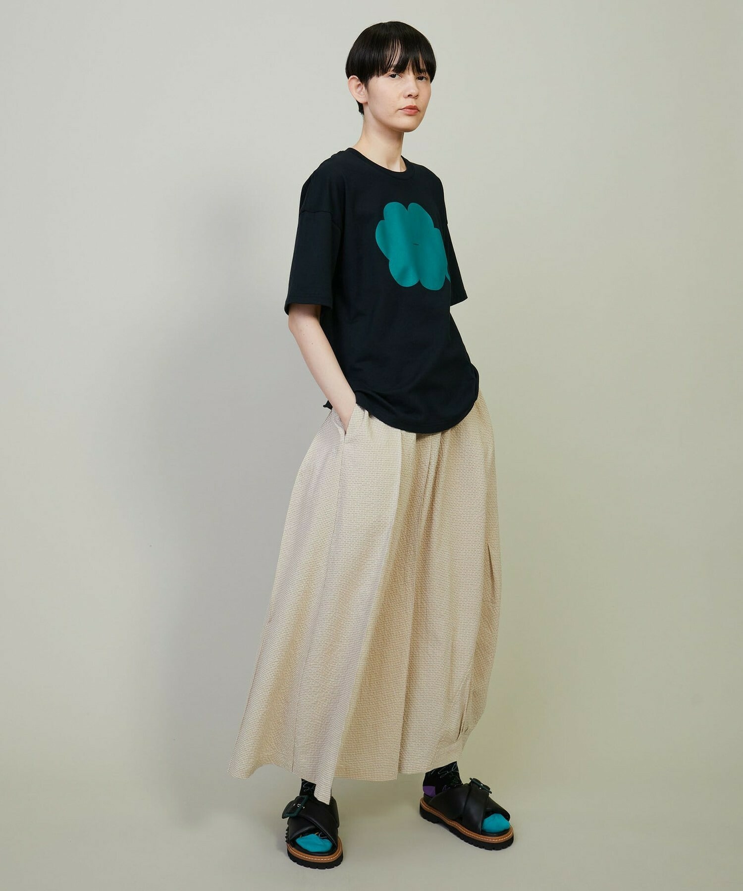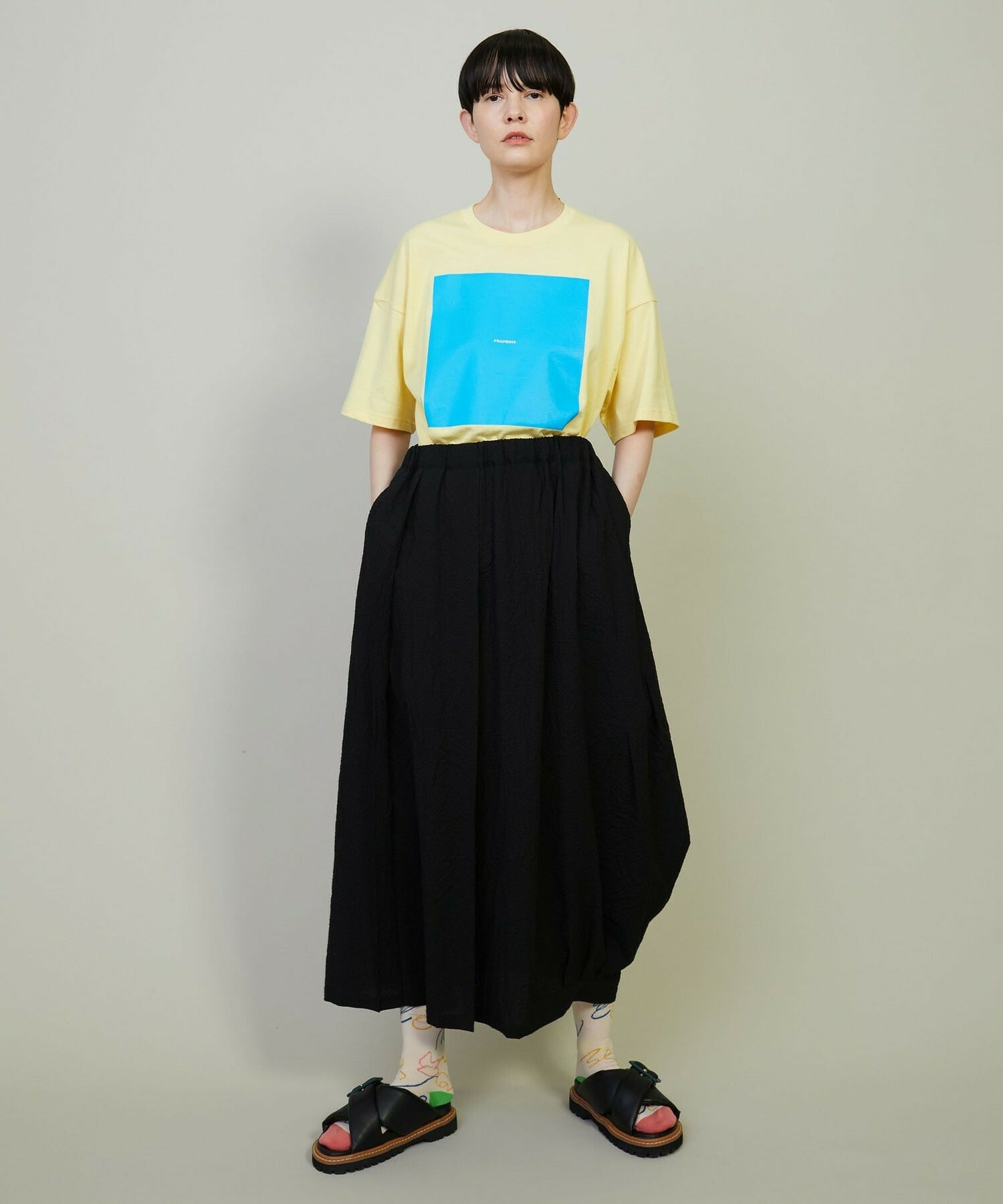 • 【FRAPBOIS】トーンサッカー デザインスカート 詳細画像 ブラック 14