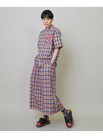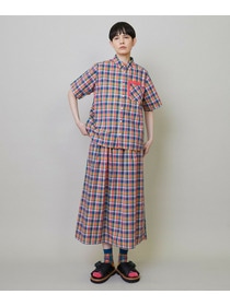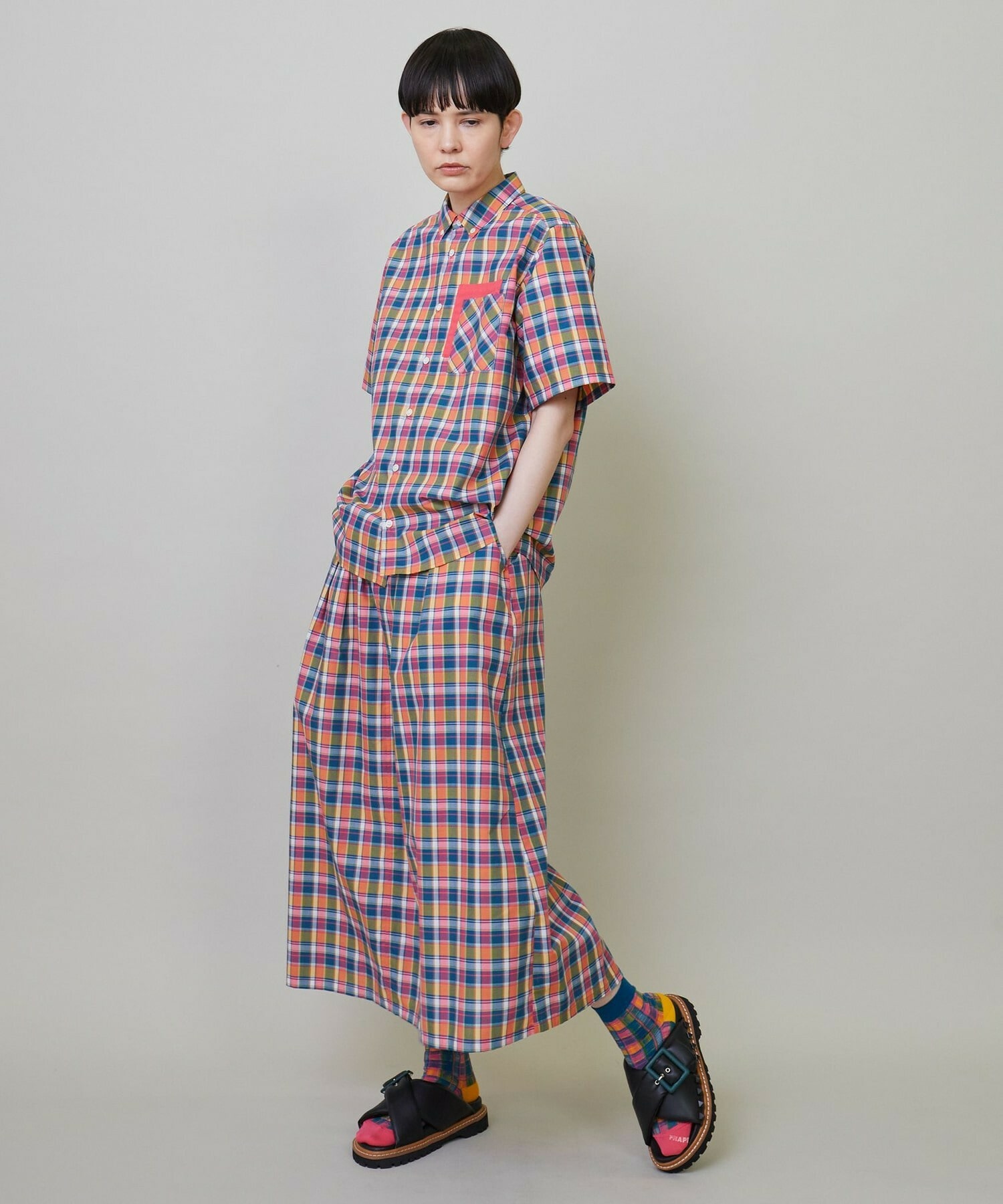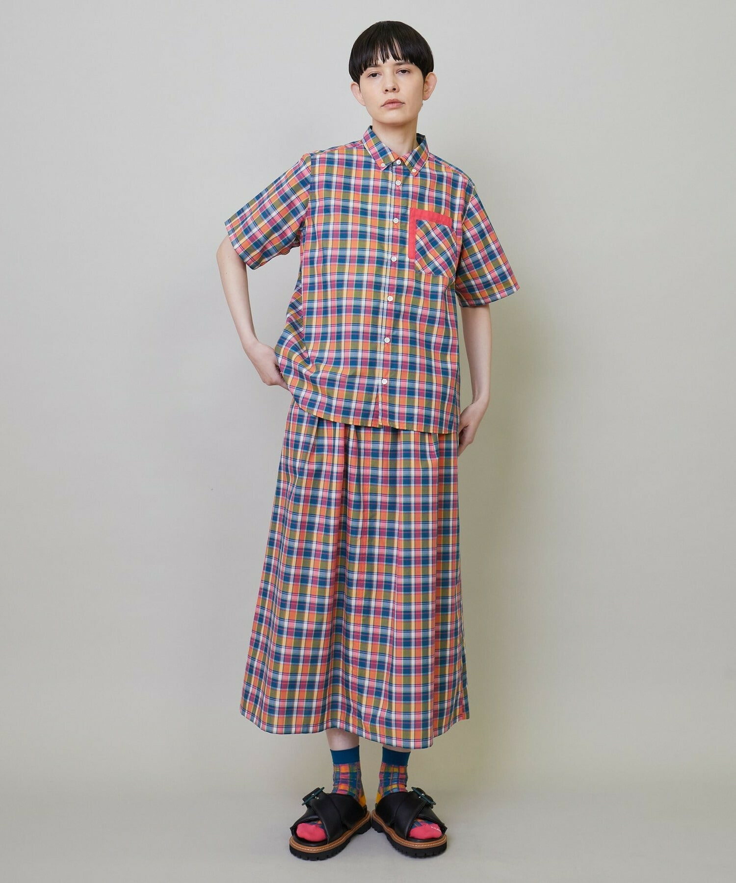 色の並び方や位置、柄の大きさなど細部にもこだわってつくったオリジナルのマドラス風のシャツ生地。