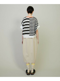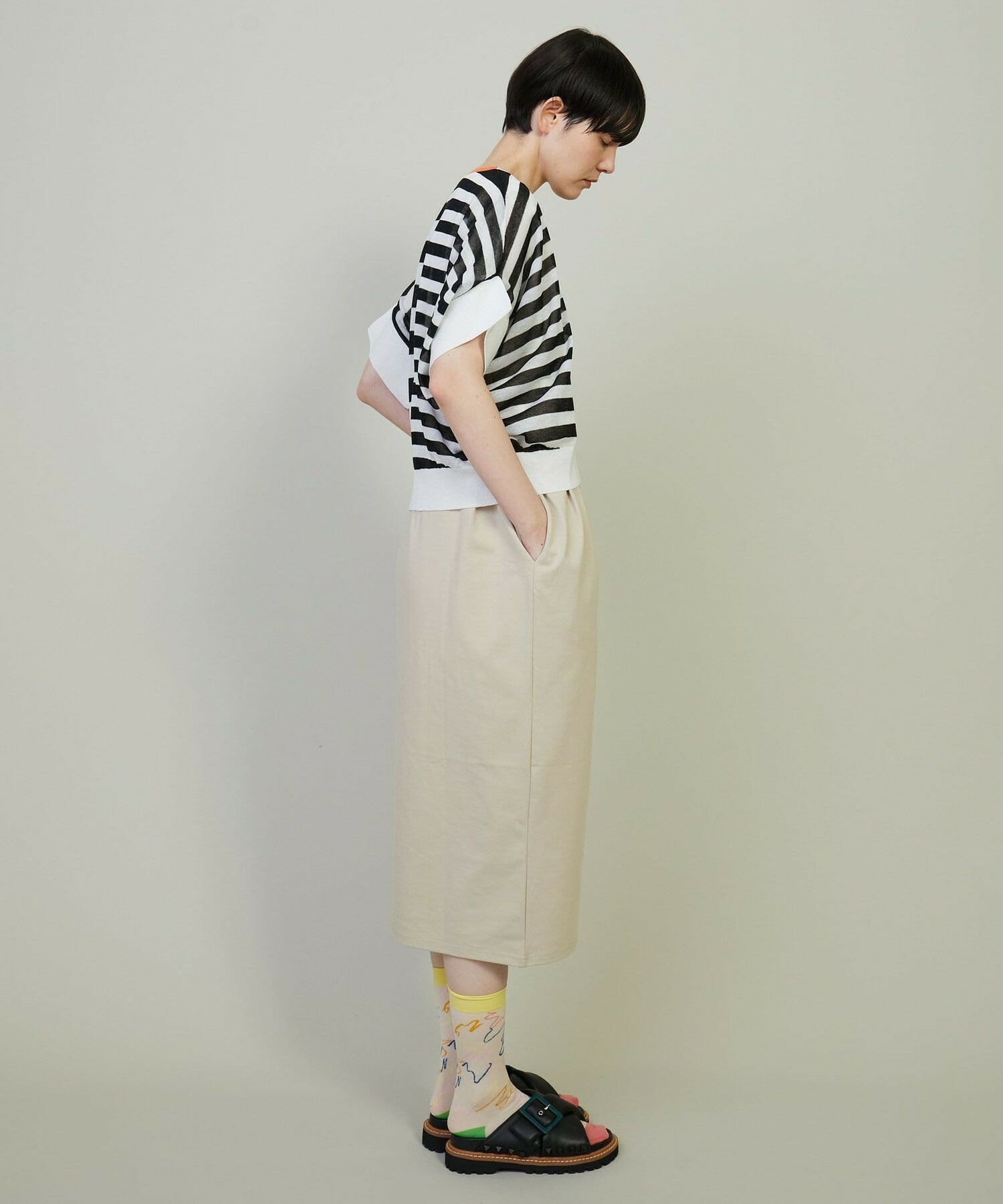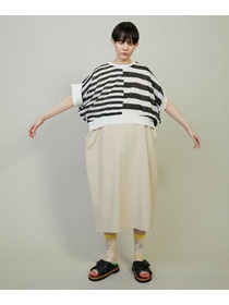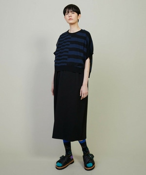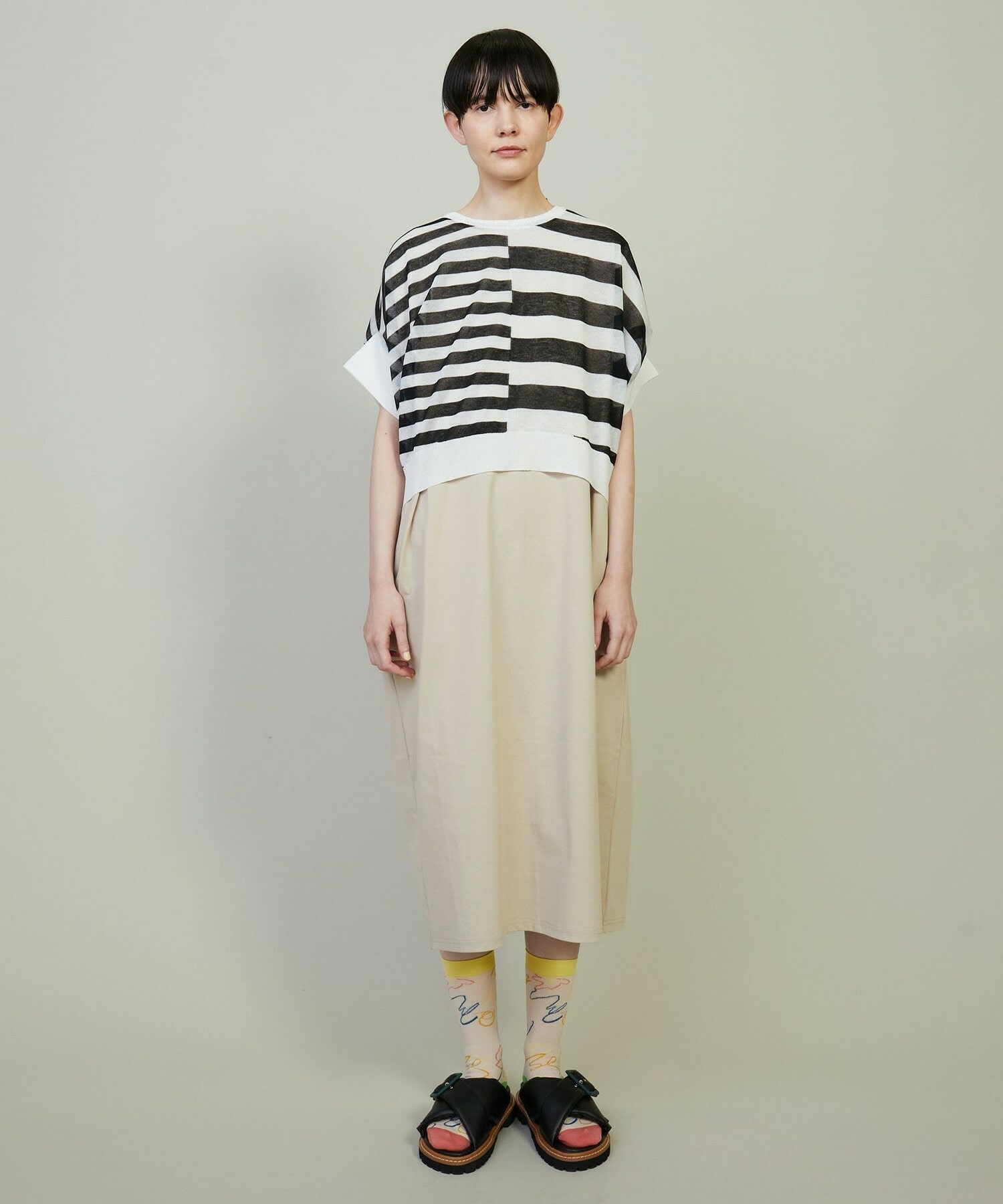 適度なハリとキレイな表面感が特徴のカットソー生地のワンピースにサラッとした肌触りのシアーなボーダーニットをセットにした企画。