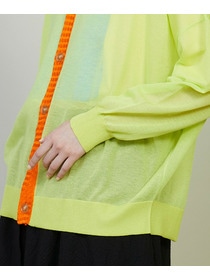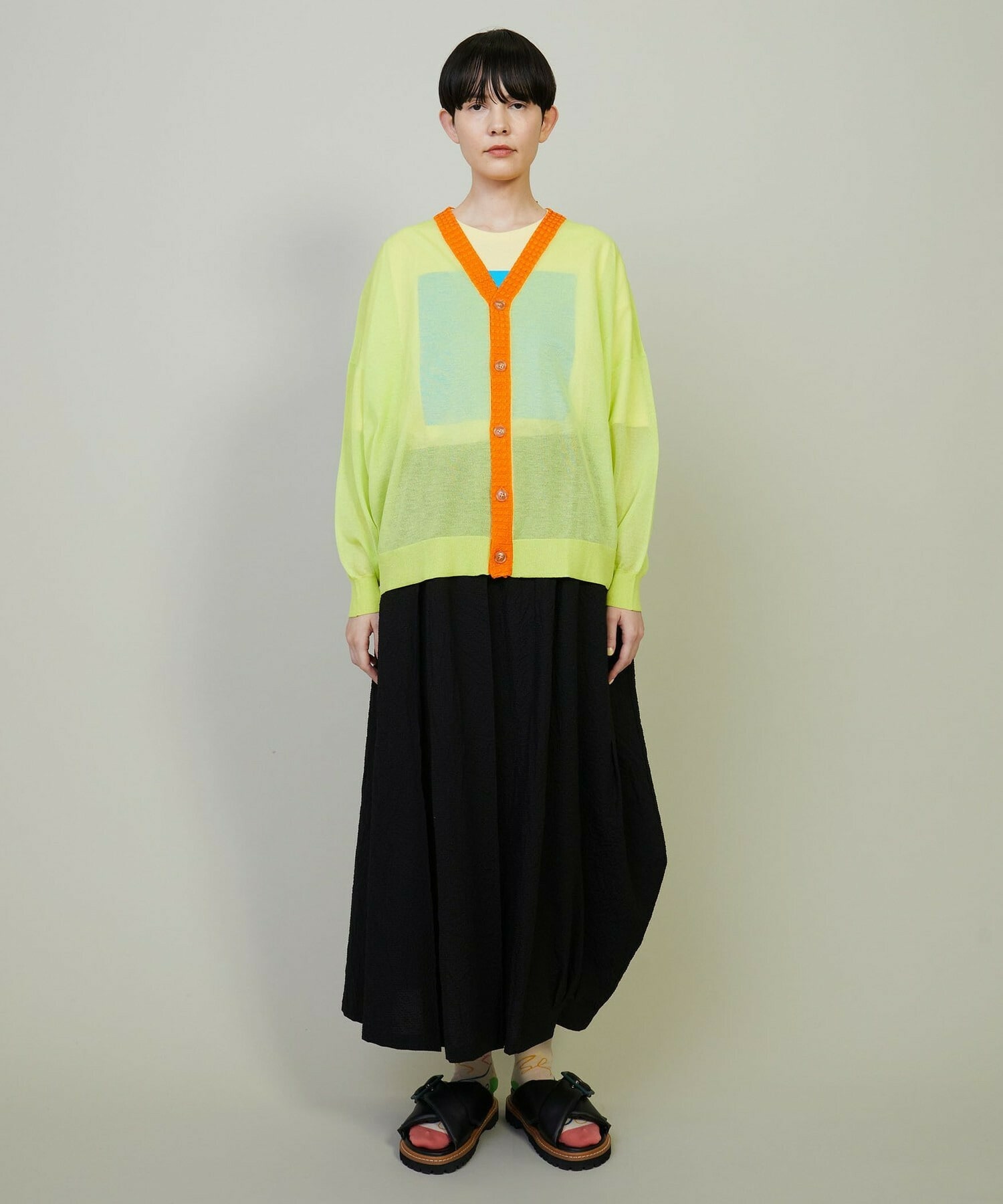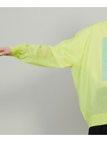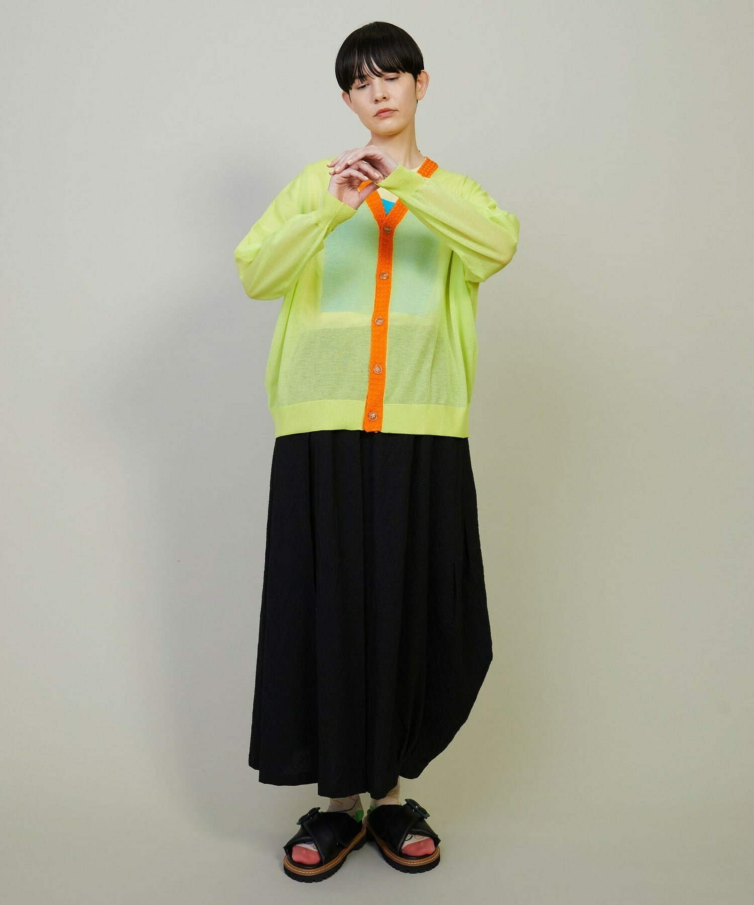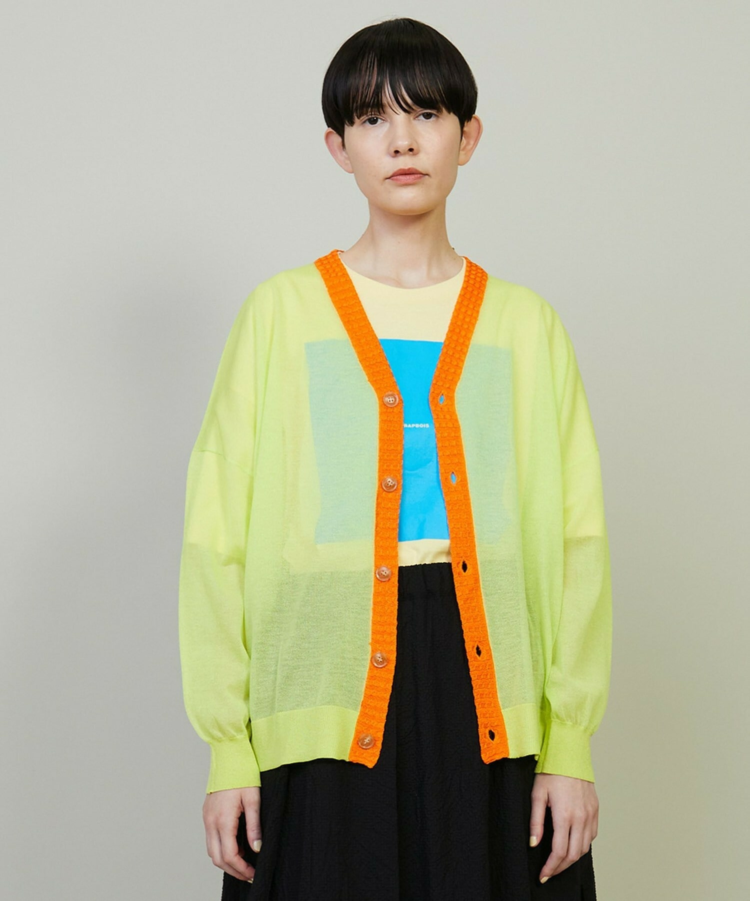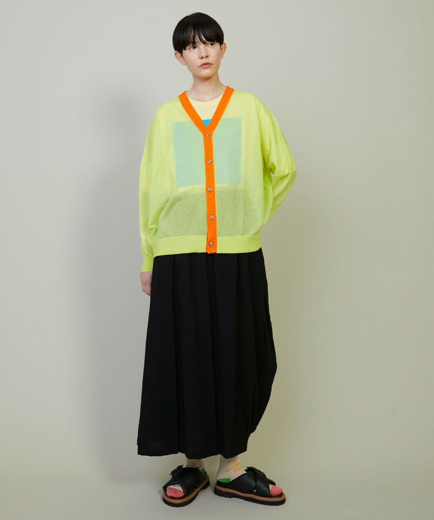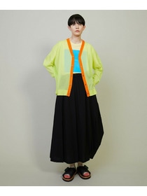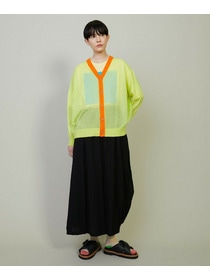 シアー感とサラッとした肌触りが特徴の天竺ベースの編み地に衿元には立体的な編み柄のケーブル編みを繊細に施してアクセントをつくっています。