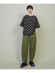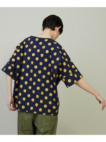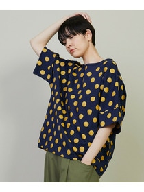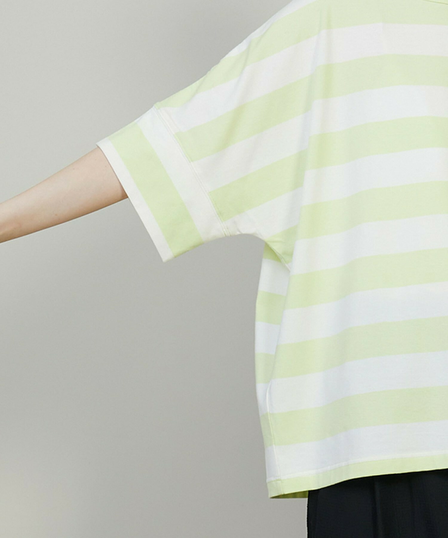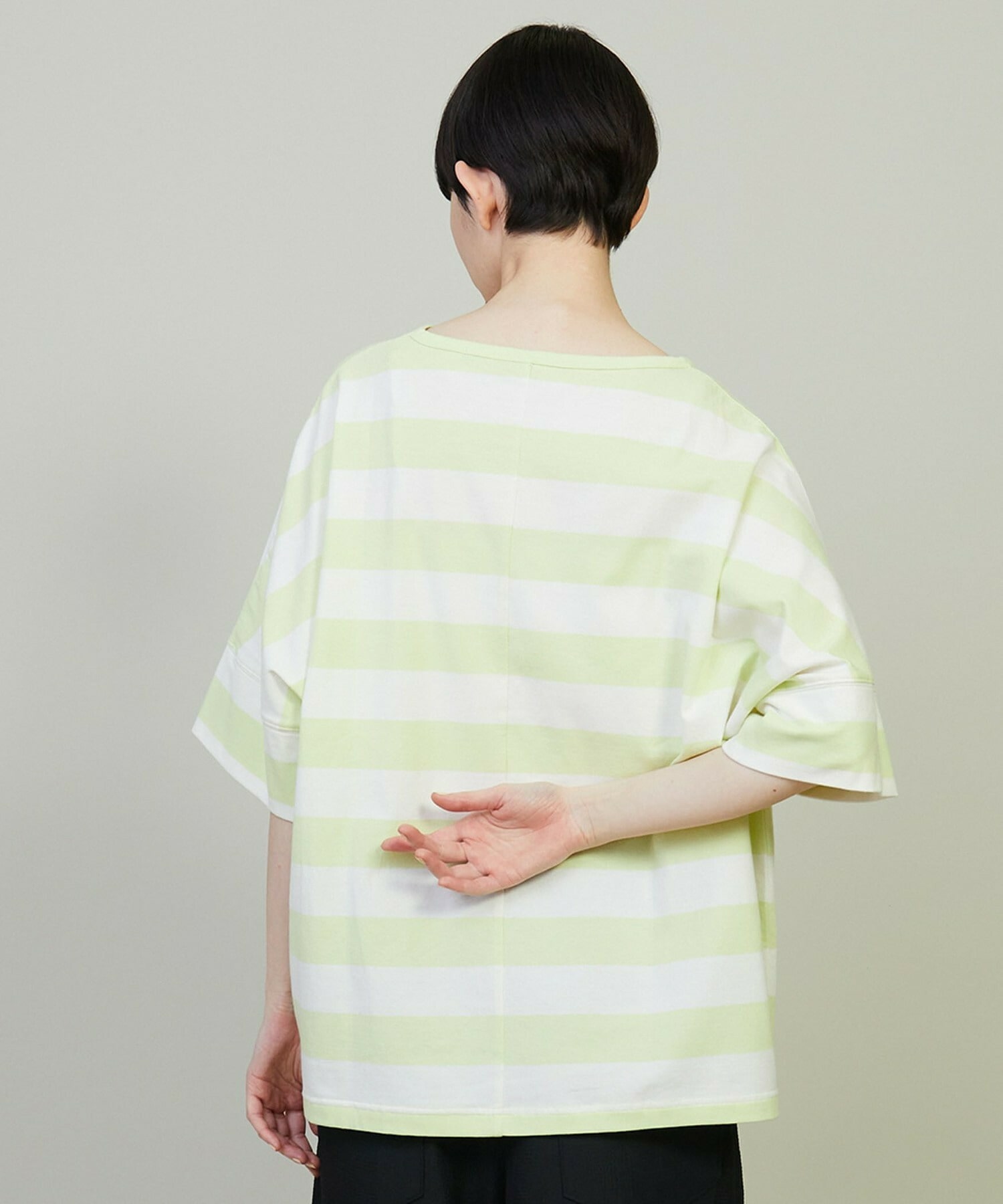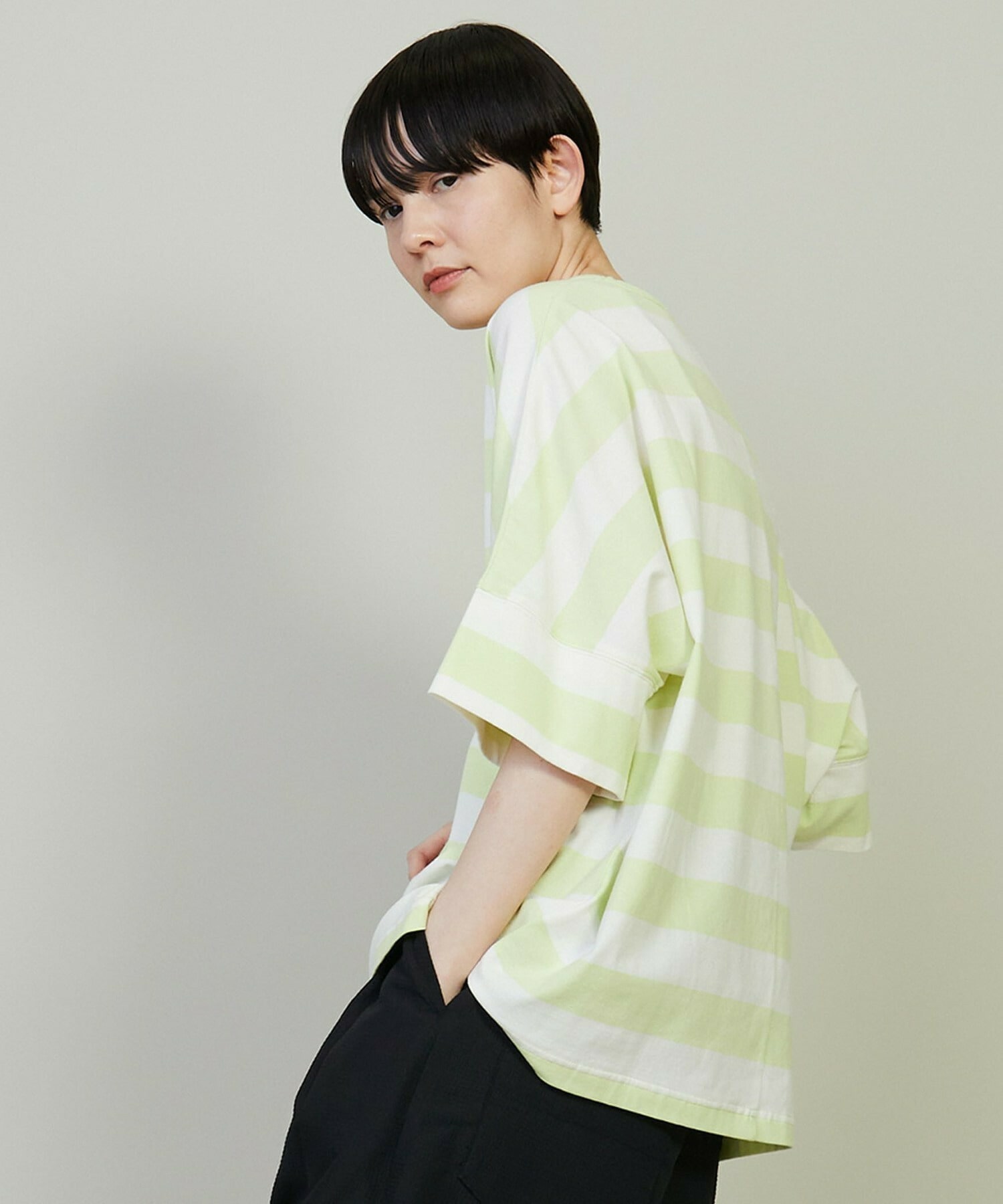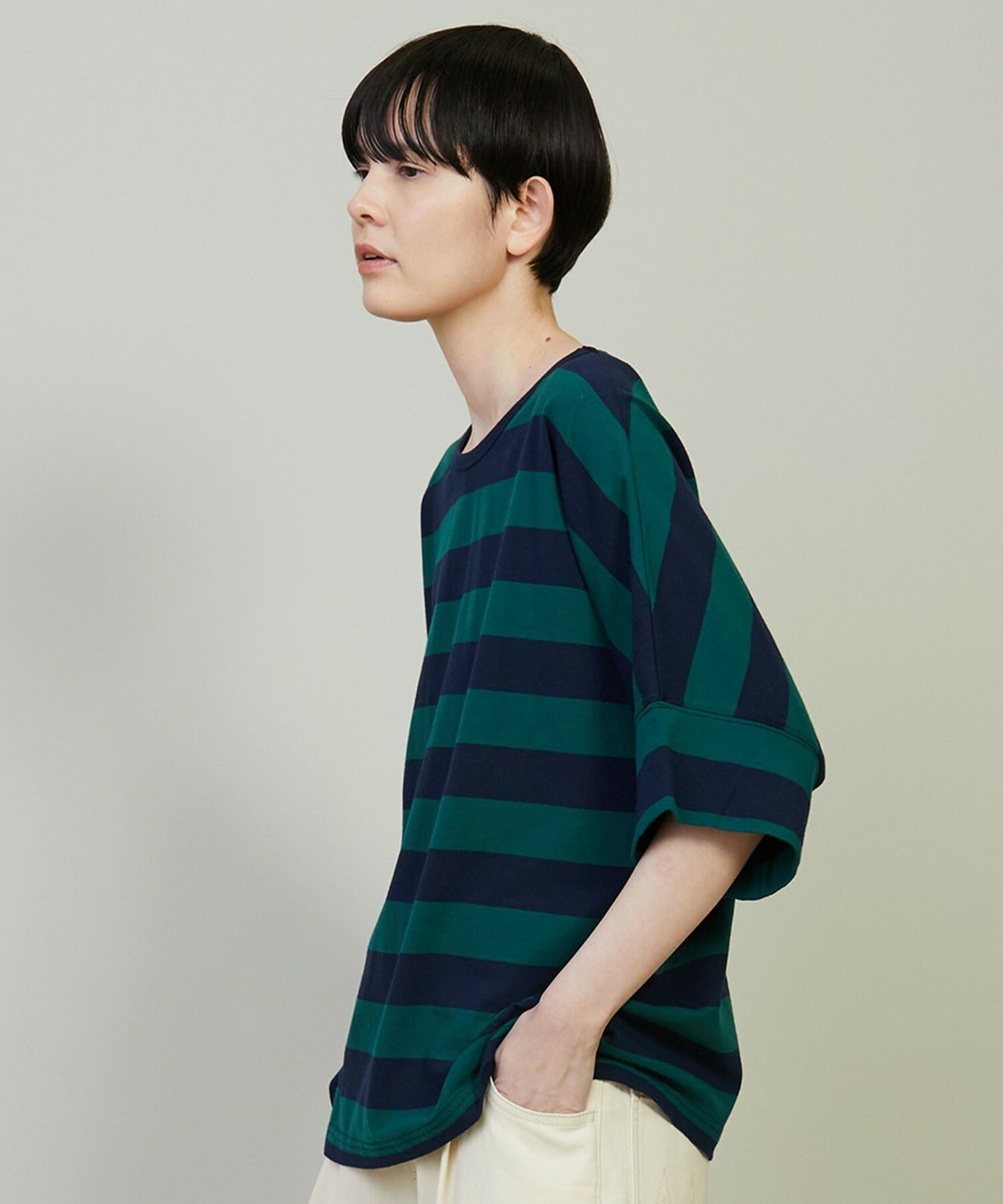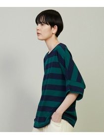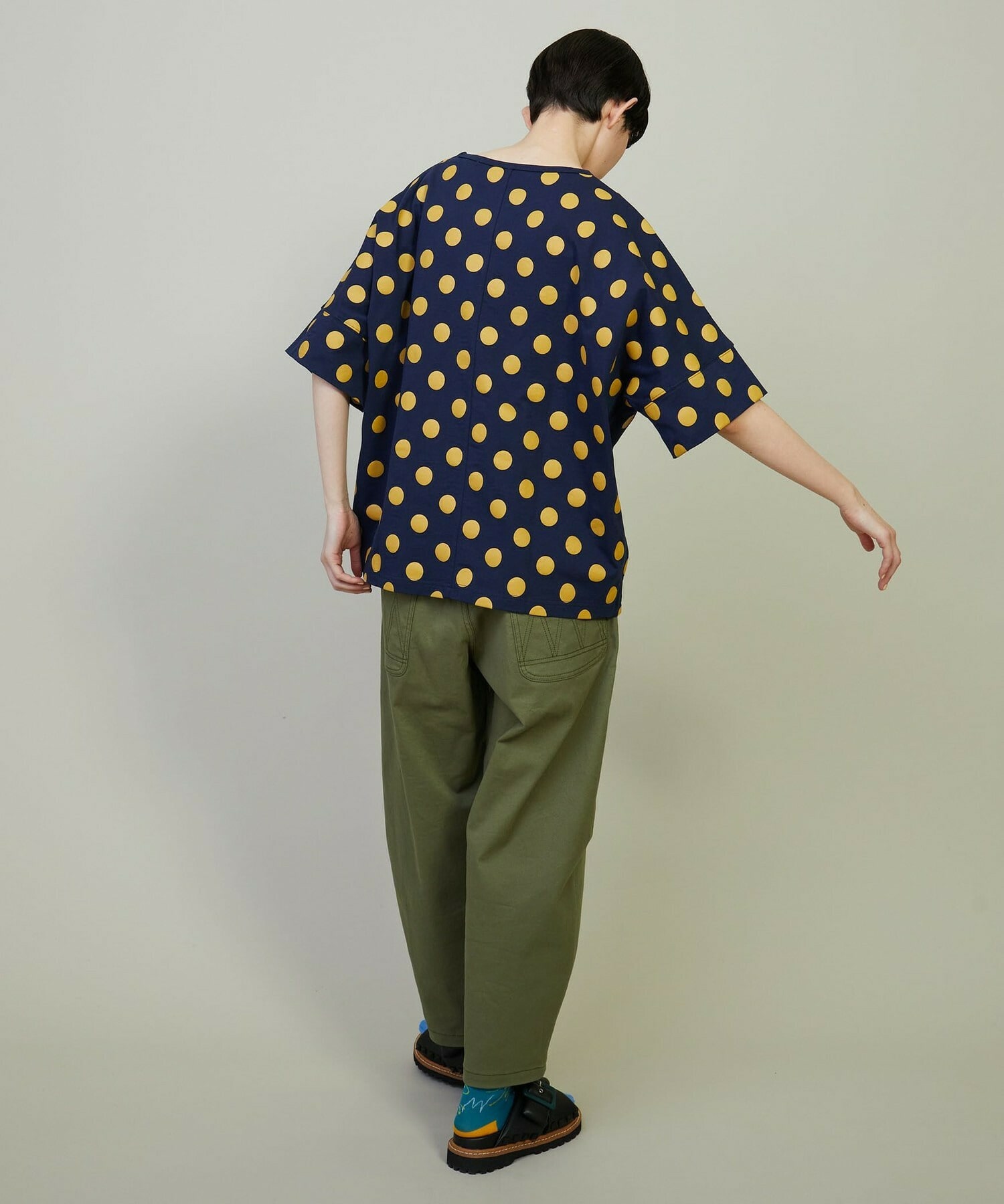 太幅のボーダー生地とオリジナルのドット柄をプリントした天竺素材。