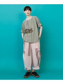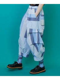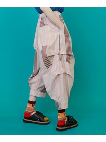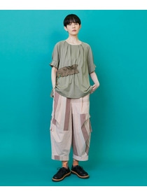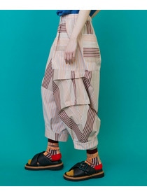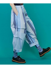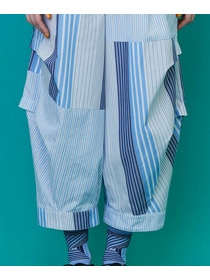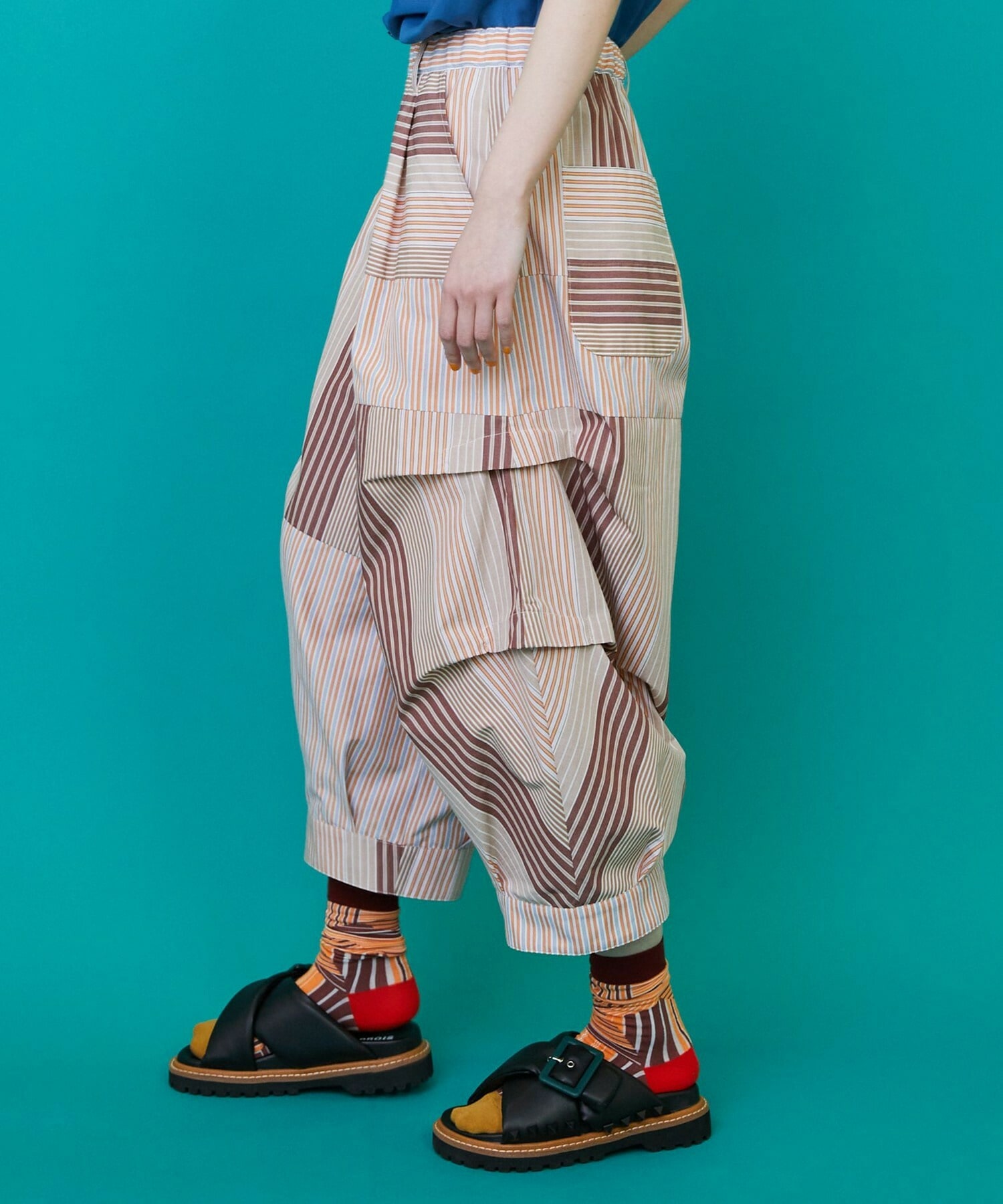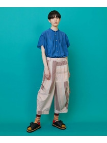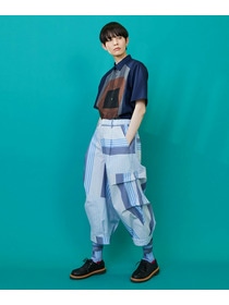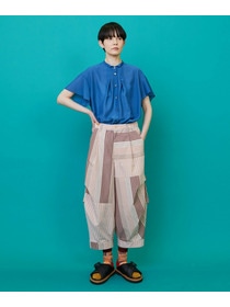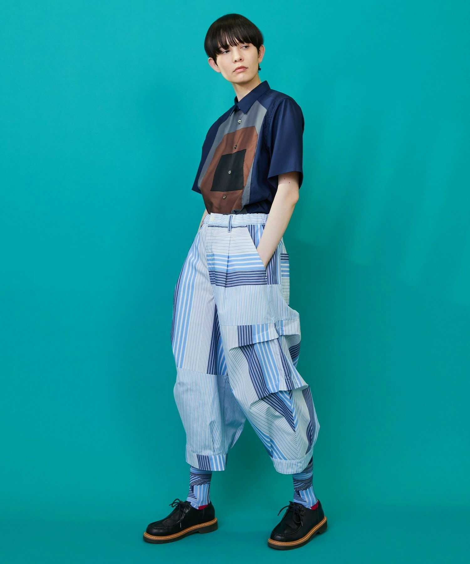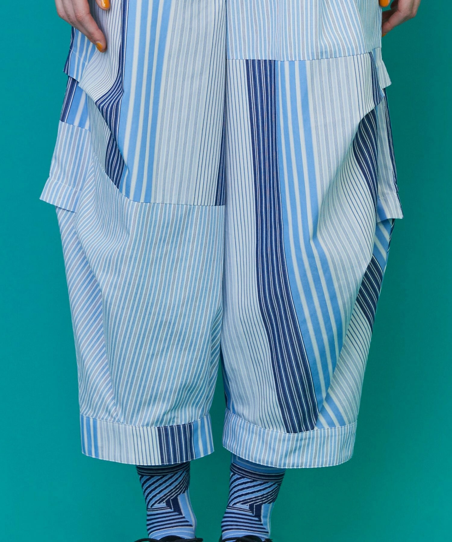 ゆったりとしたバレルシルエットの短丈パンツはサイドのタックや裾のタックで立体的で複雑なシルエットに仕上がっています。