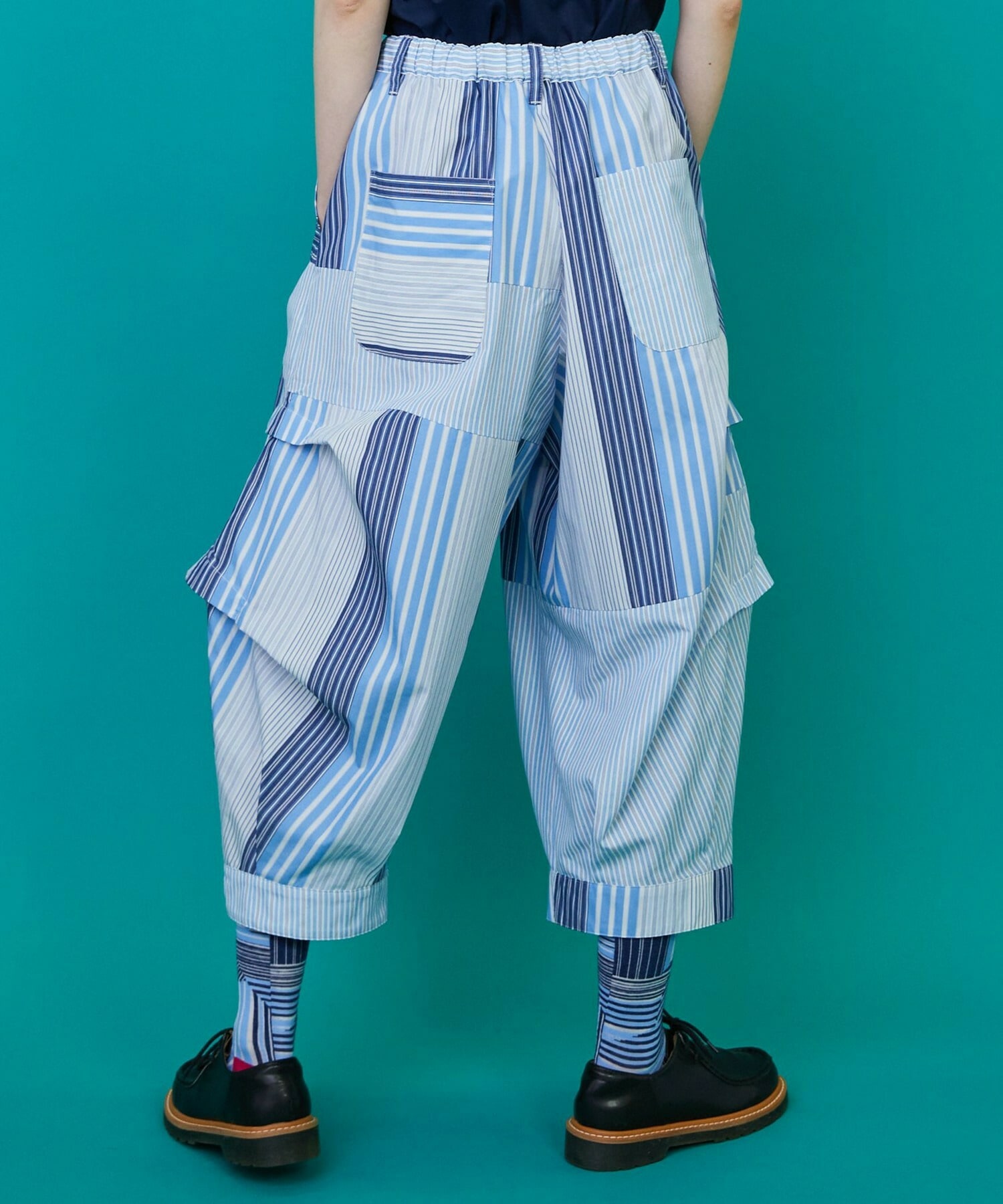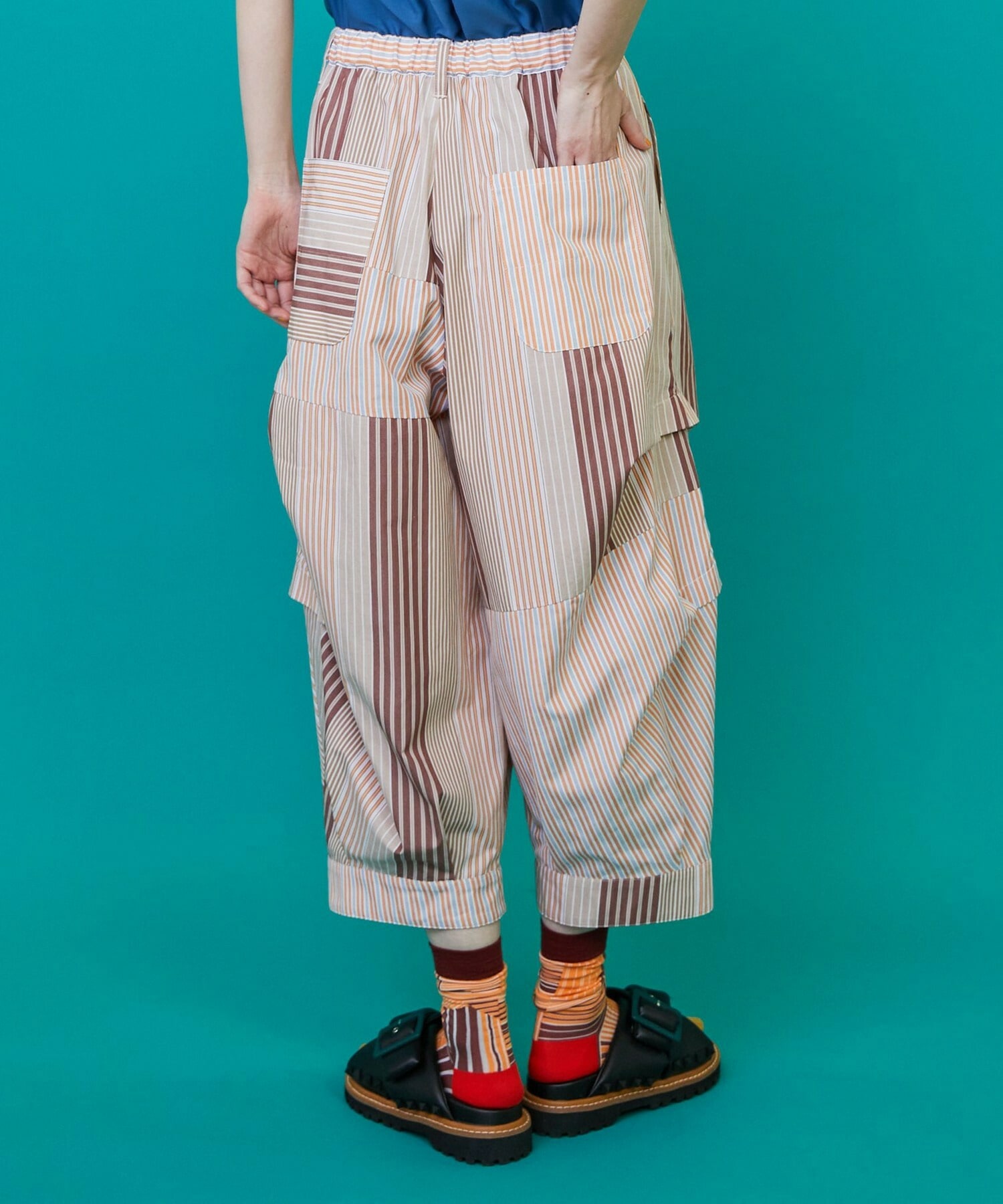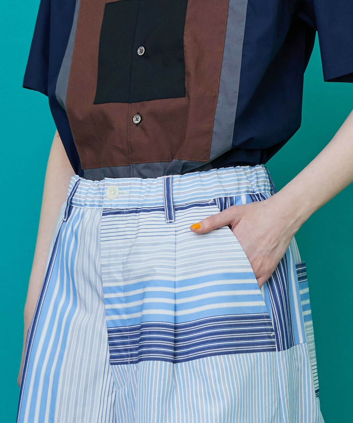 4つのストライプ柄がドッキングしたかの様なオリジナルの生地は適度なハリとさらったした肌触りが特徴。