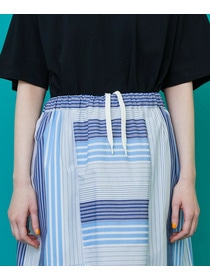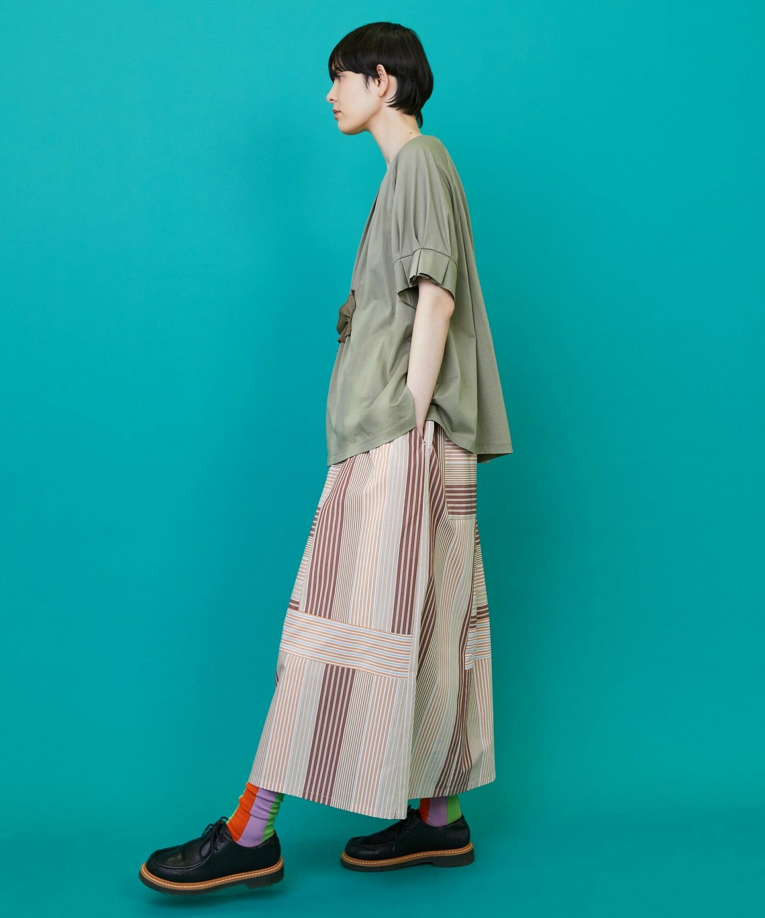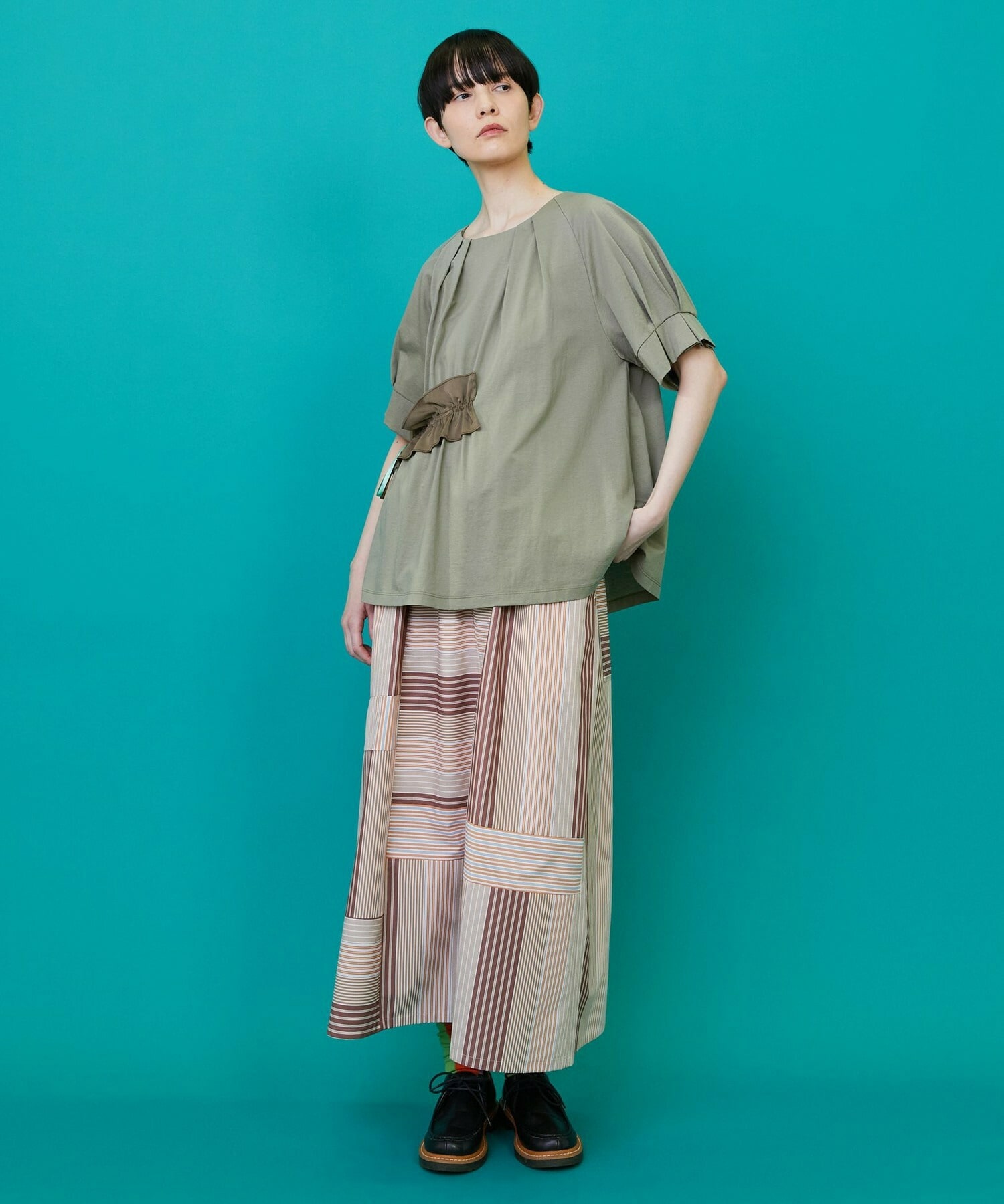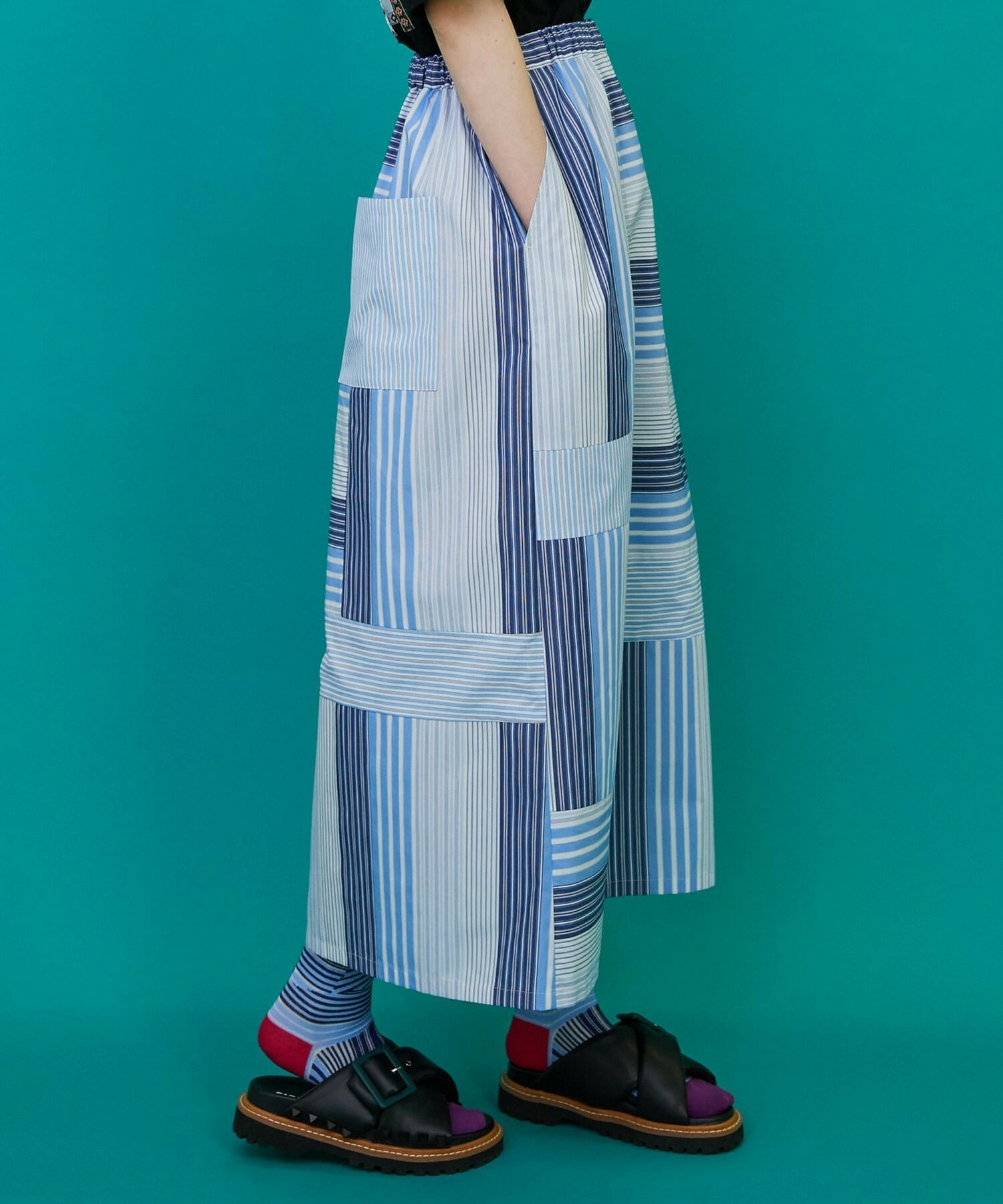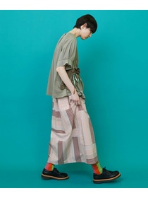 デザインにインパクトが有りながらもウエストのゴムやヒモでイージーな仕立てになっているなどキメ過ぎないところもポイントです。