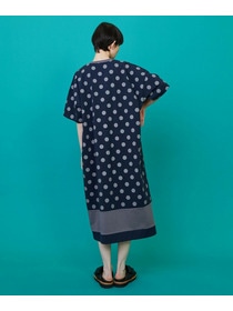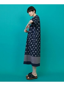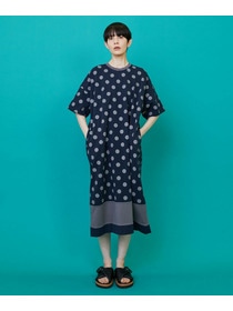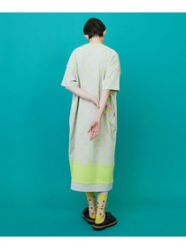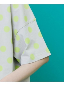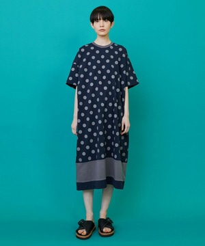 しっかり目の綿の天竺素材に大きさ、間隔にもこだわったドットプリントを入れ、アクセントに無地を配色に使っています。