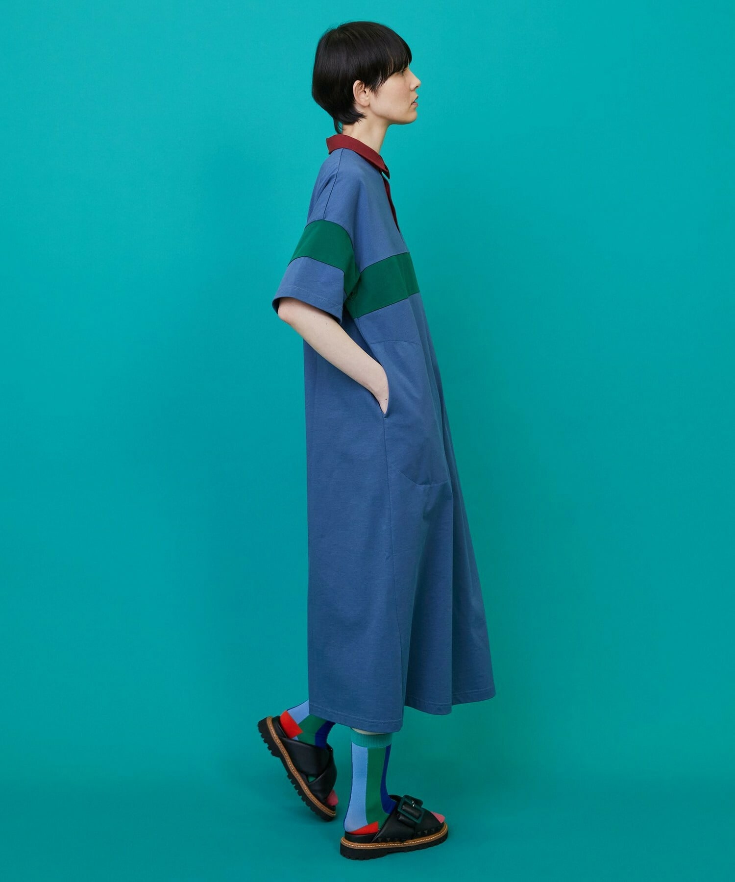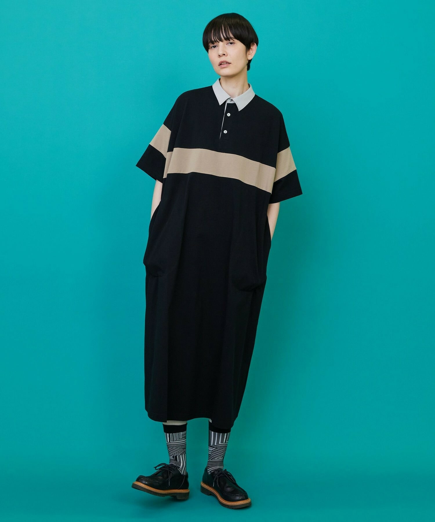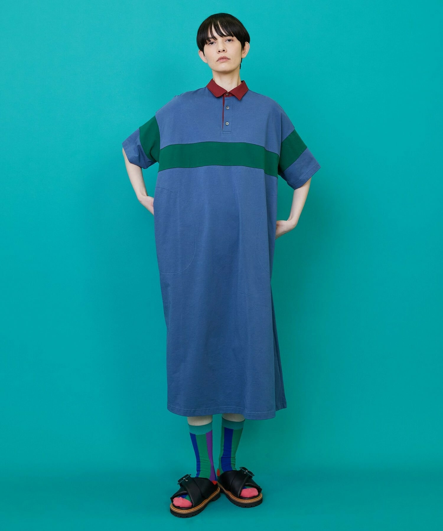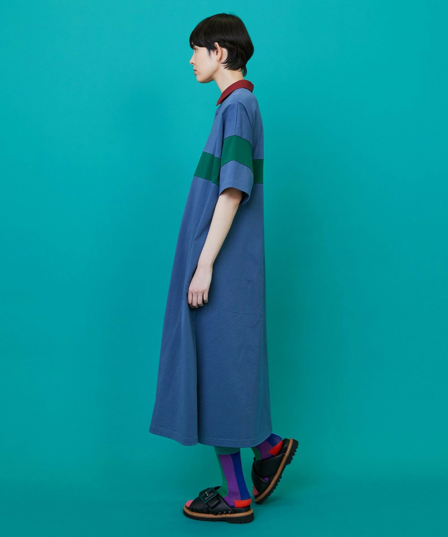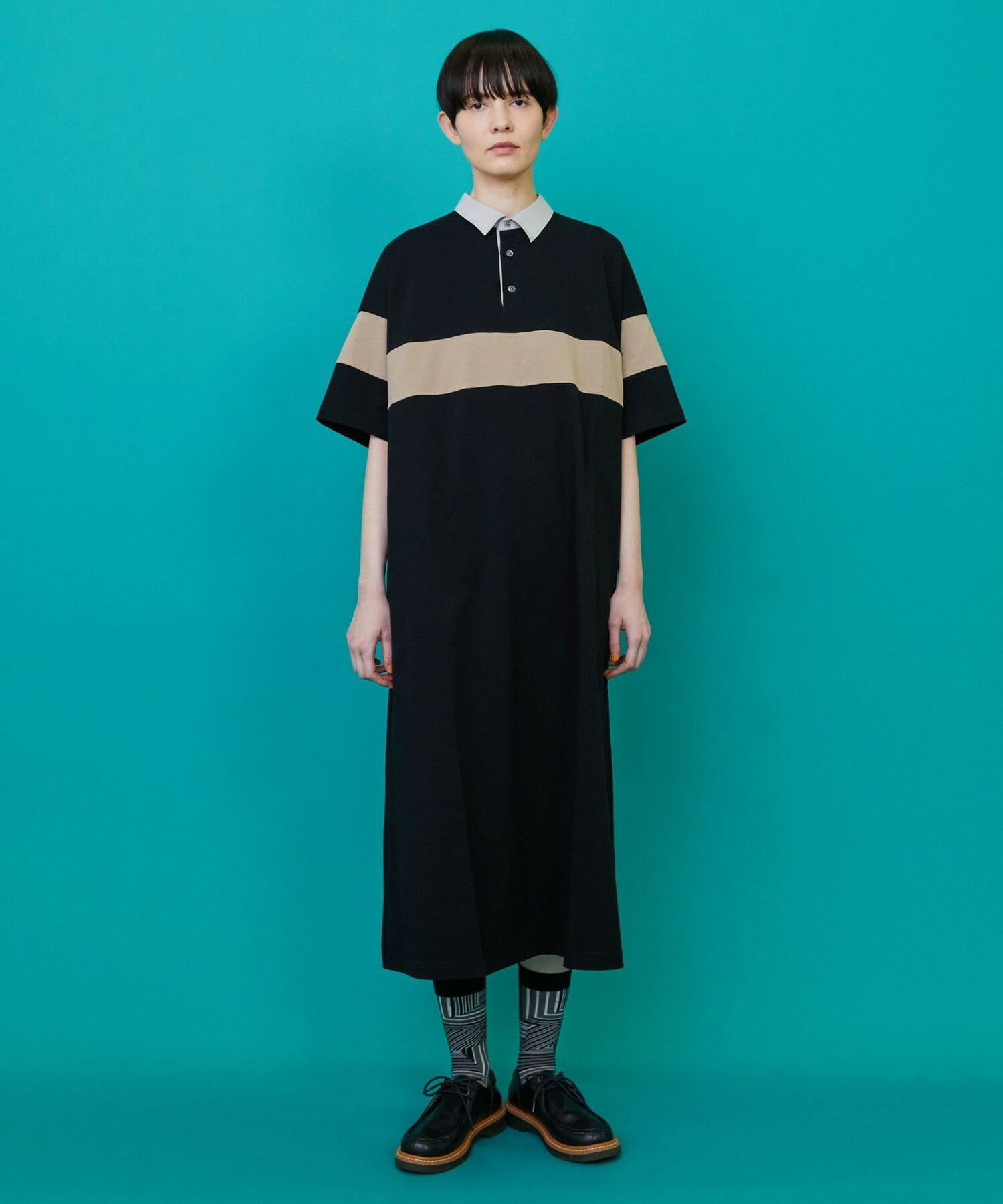 ゆったりとしたリラックスシルエットのラガーシャツ風のカットソーワンピース。