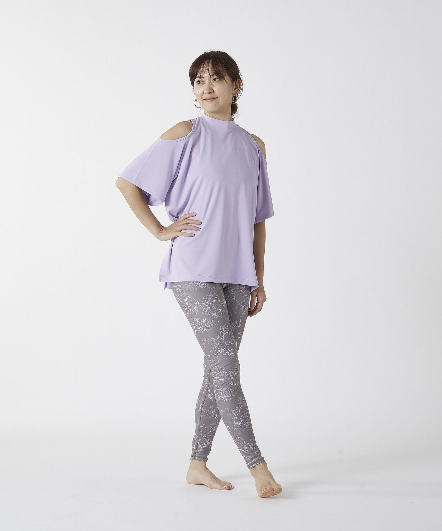• 【Julier】Line Flowerプリントスーパーハイレギンス/水着・UVカット・水陸両用・吸汗速乾・ホットヨガ対応・耐塩素 詳細画像 ホワイト 1