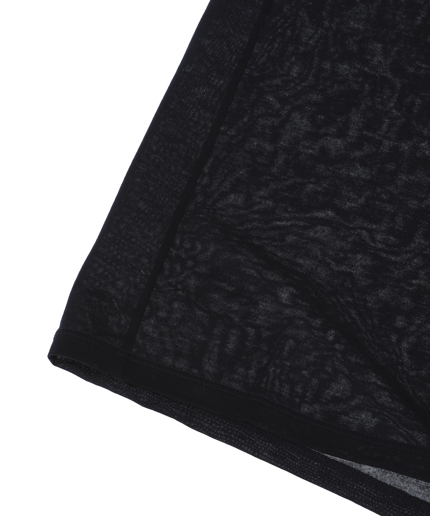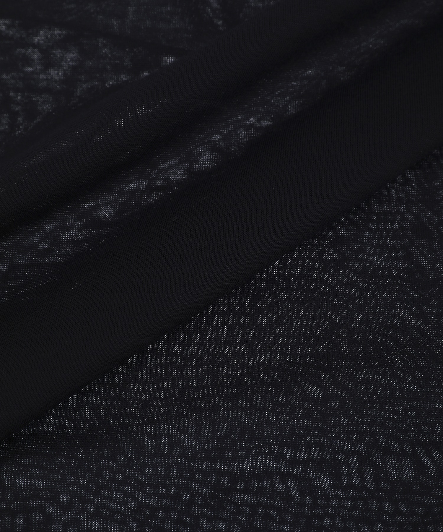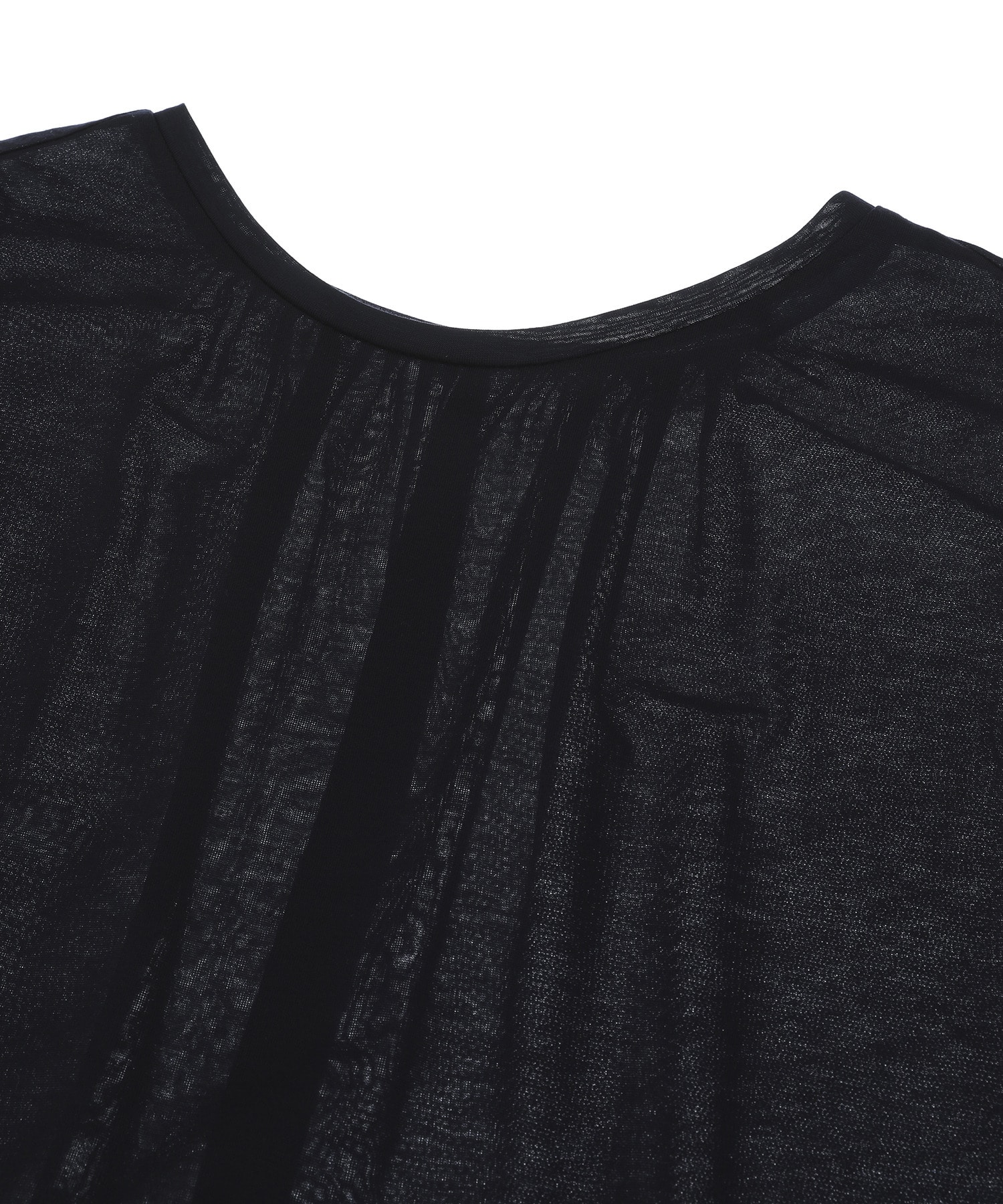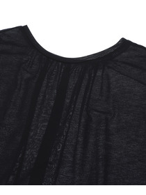 前側はシンプルながら、鎖骨をさりげなく隠すネックラインで上品な印象に。