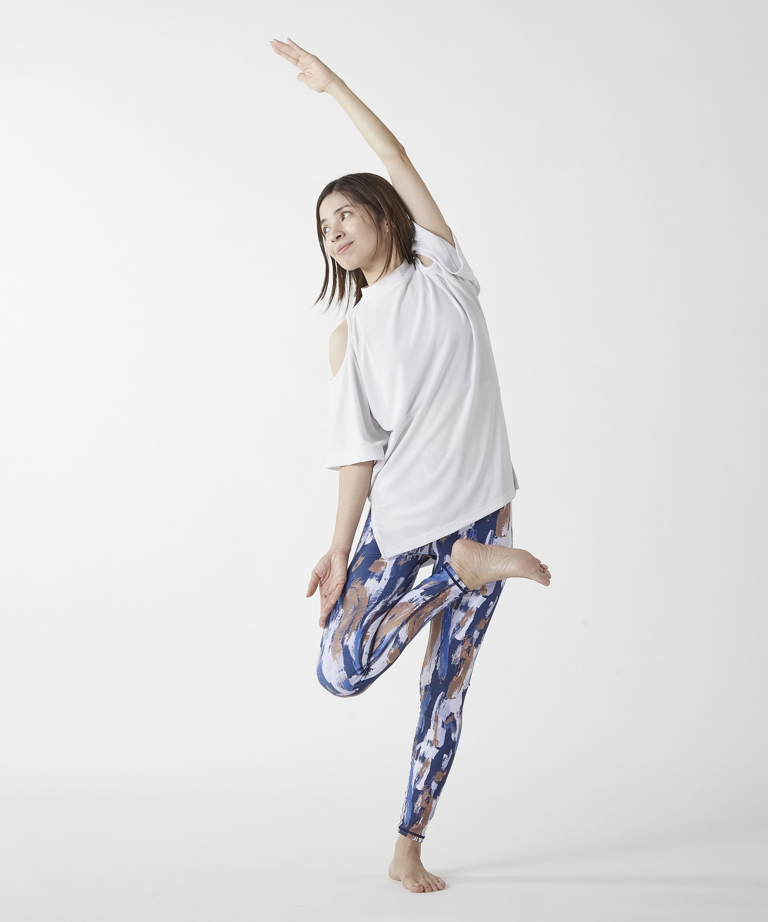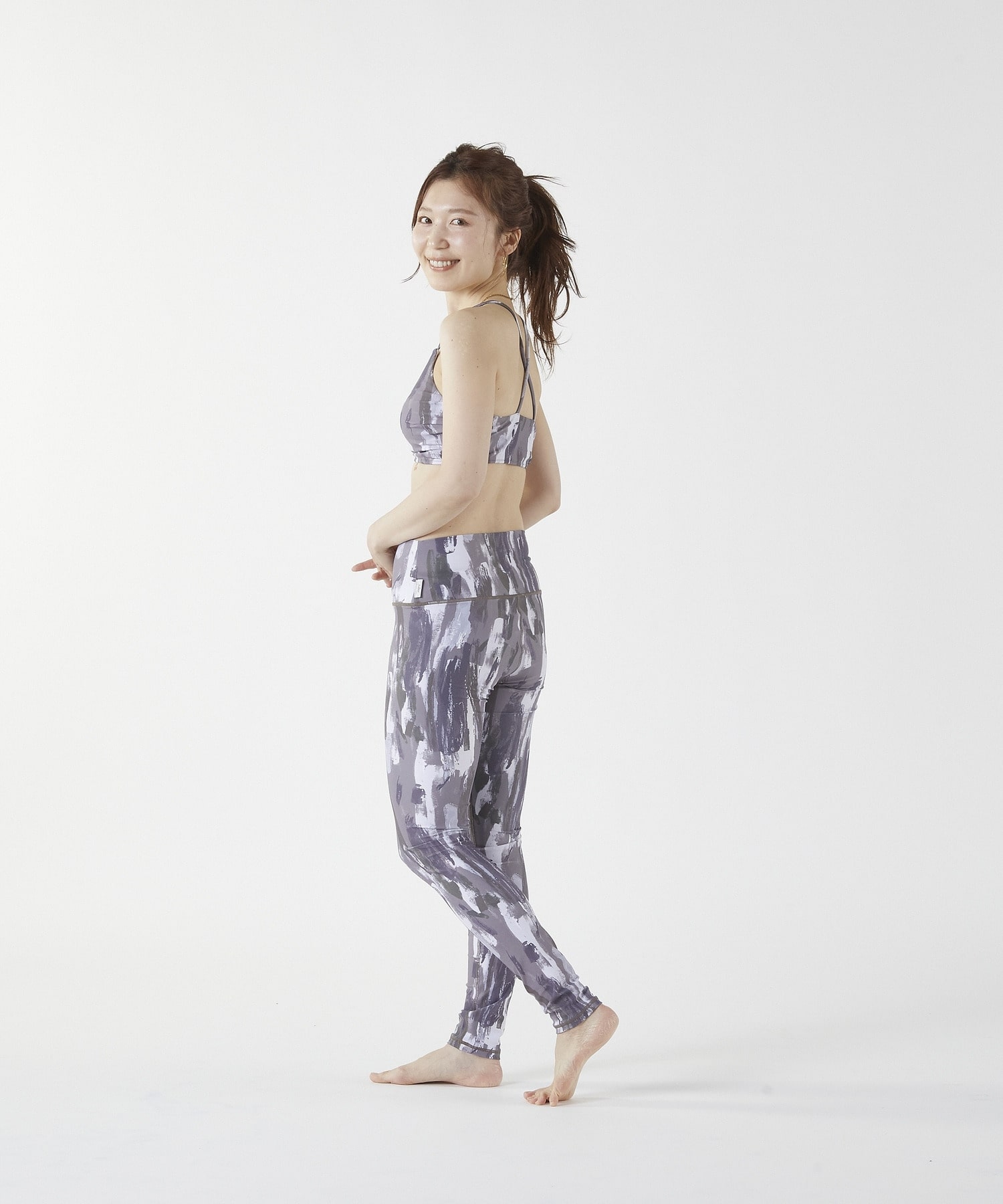 着るだけでスタイルアップ!筆タッチの縦ラインが美シルエットを演出!ヨガからビーチまで幅広く活躍今季イチオシのオリジナルプリントは、筆で書いたような縦ラインが、着?せ効果抜群です。