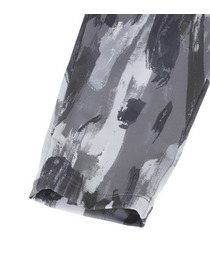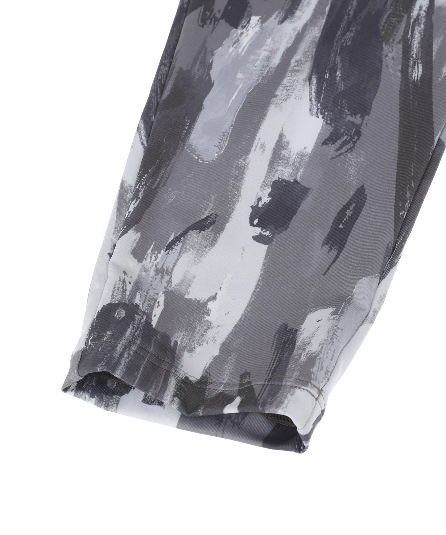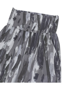 着るだけでスタイルアップ!筆タッチの縦ラインが美シルエットを演出!軽やかに履けるギャザーパンツ今季イチオシのオリジナルプリントは、筆で書いたような縦ラインが、着やせ効果抜群です。