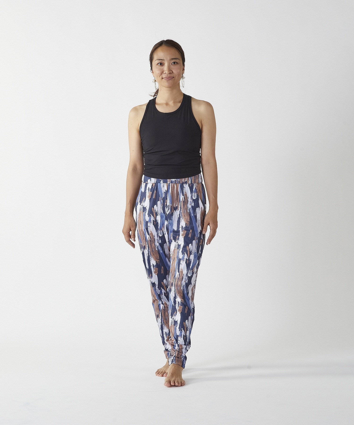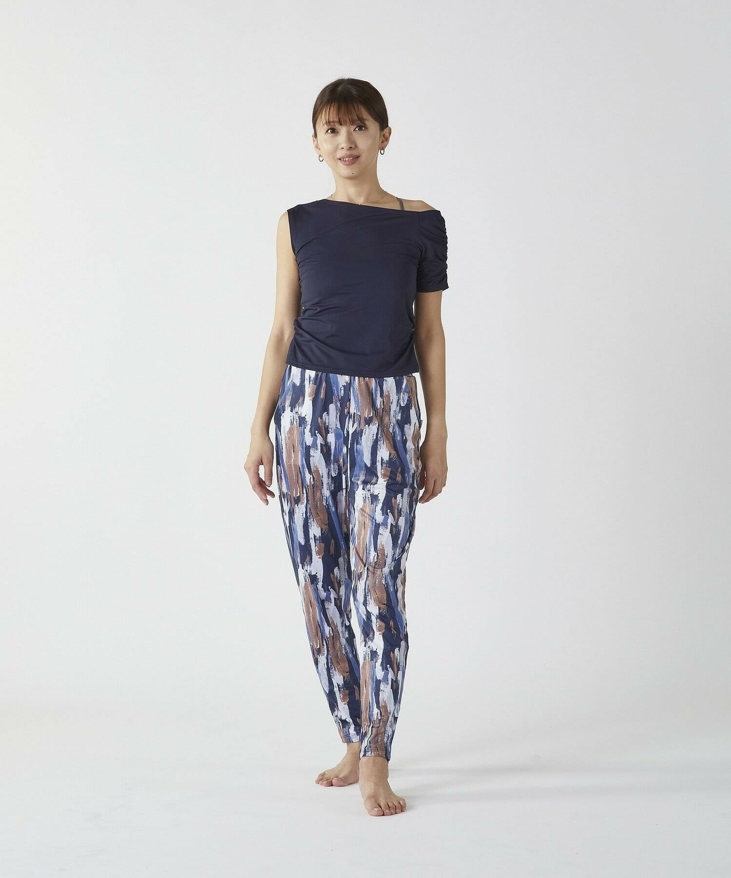 Vertical brushプリントギャザーパンツ/UVカット・吸汗速乾・ホットヨガ対応・水着・水陸両用・マタニティ対応