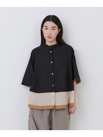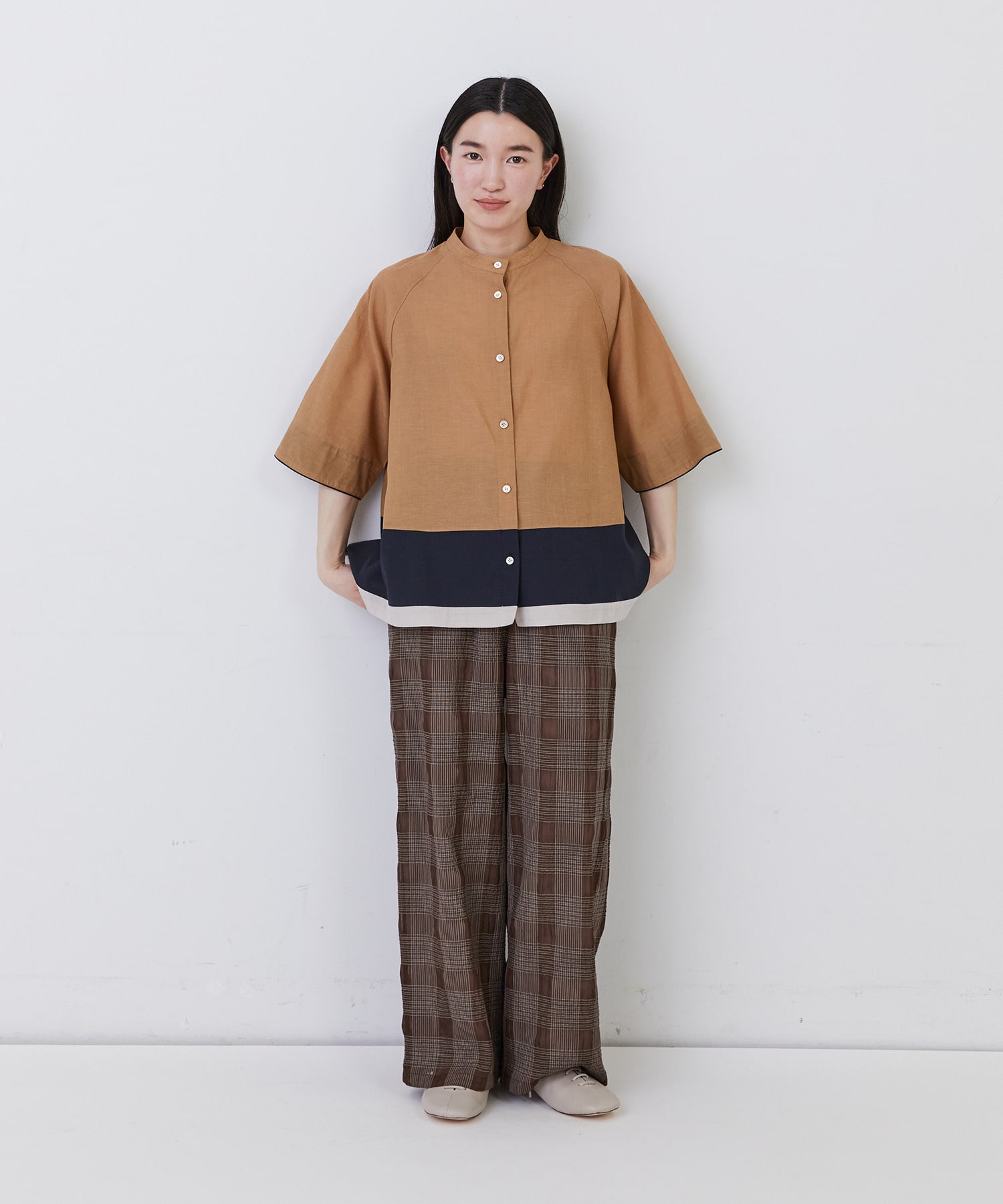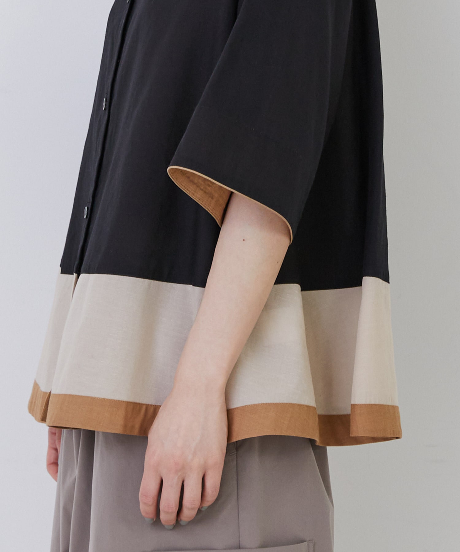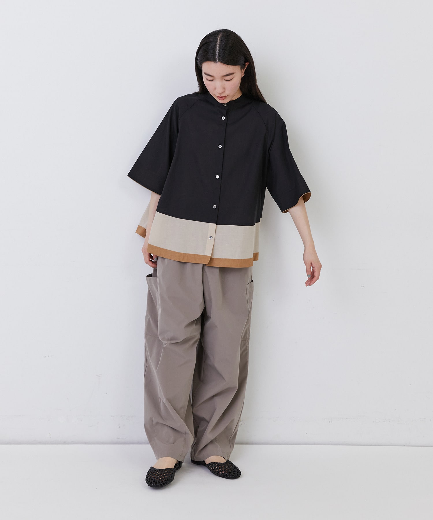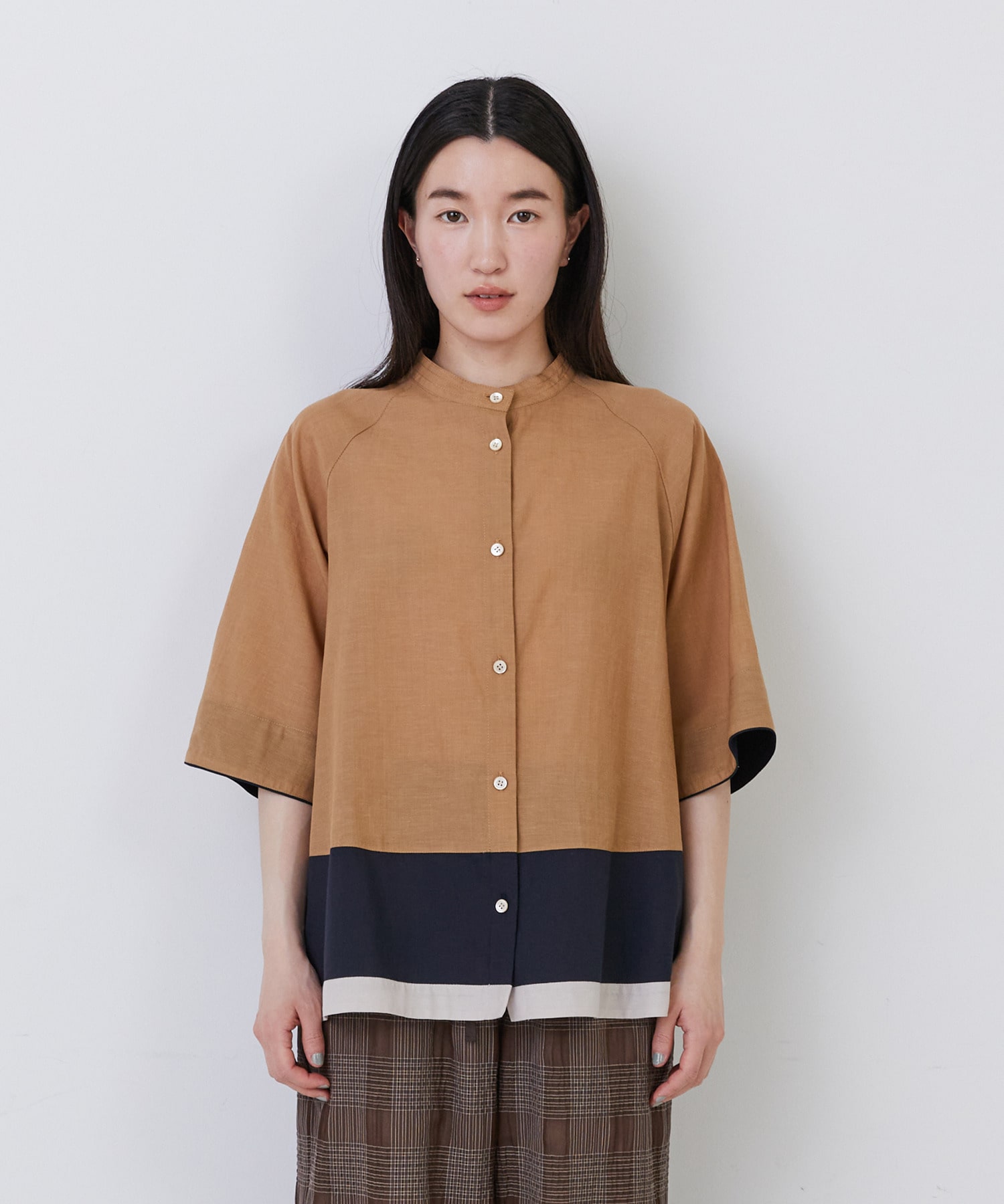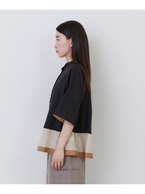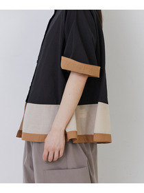 袖を折り返すと配色になるパターンで、折らずに着た時の配色細芯パイピングもポイントです。