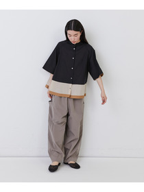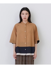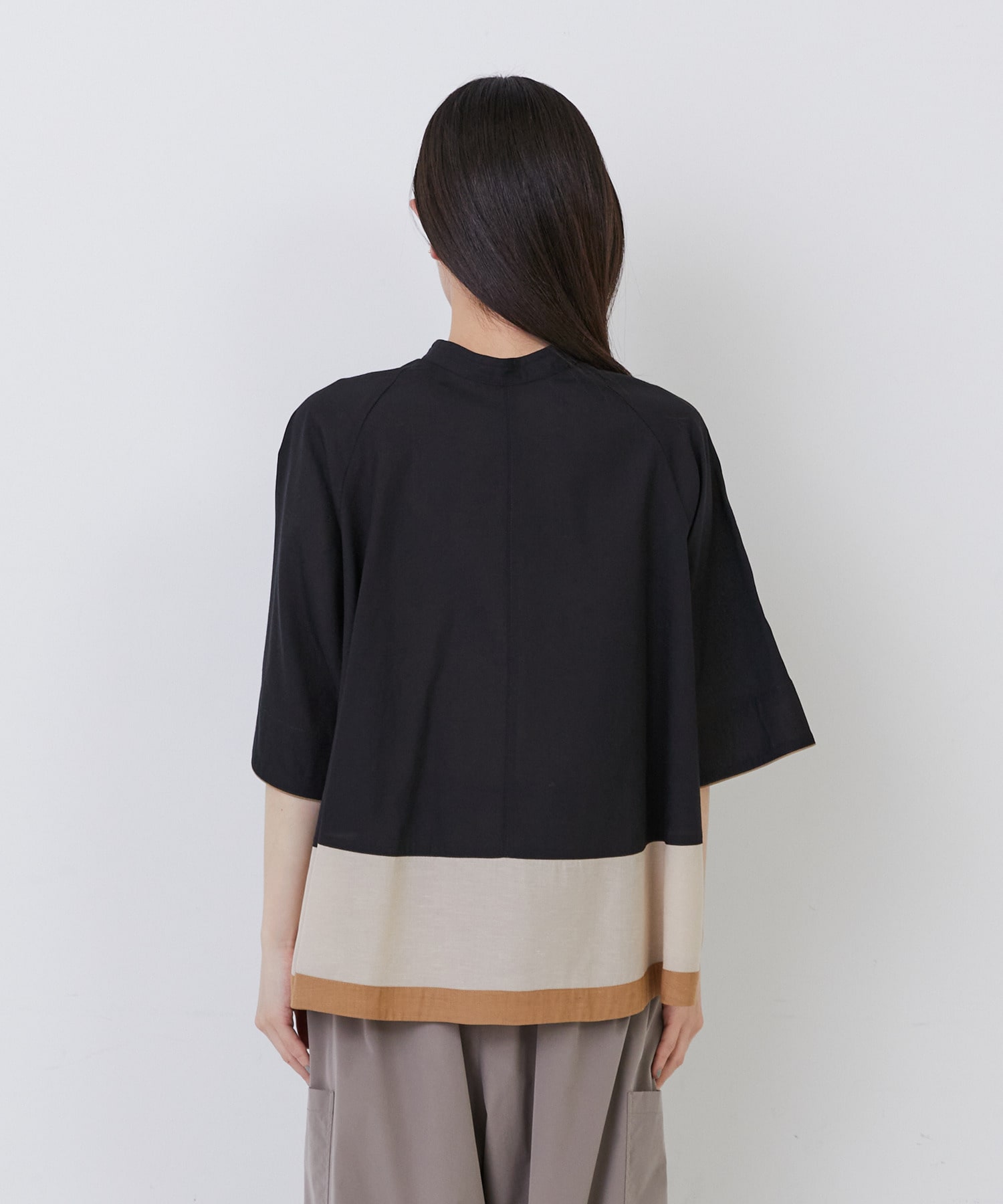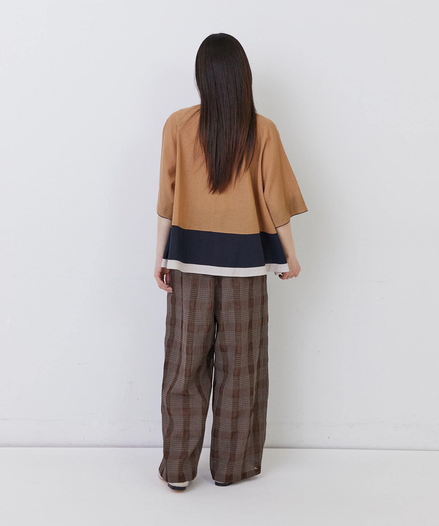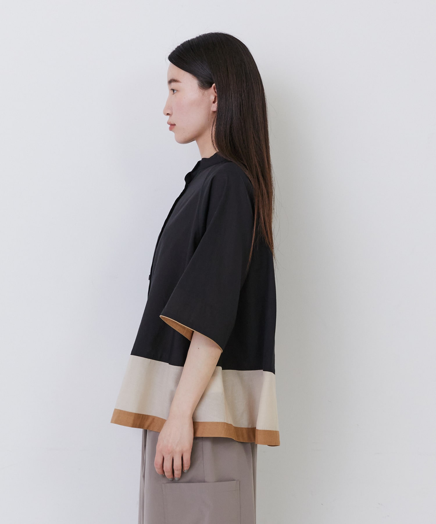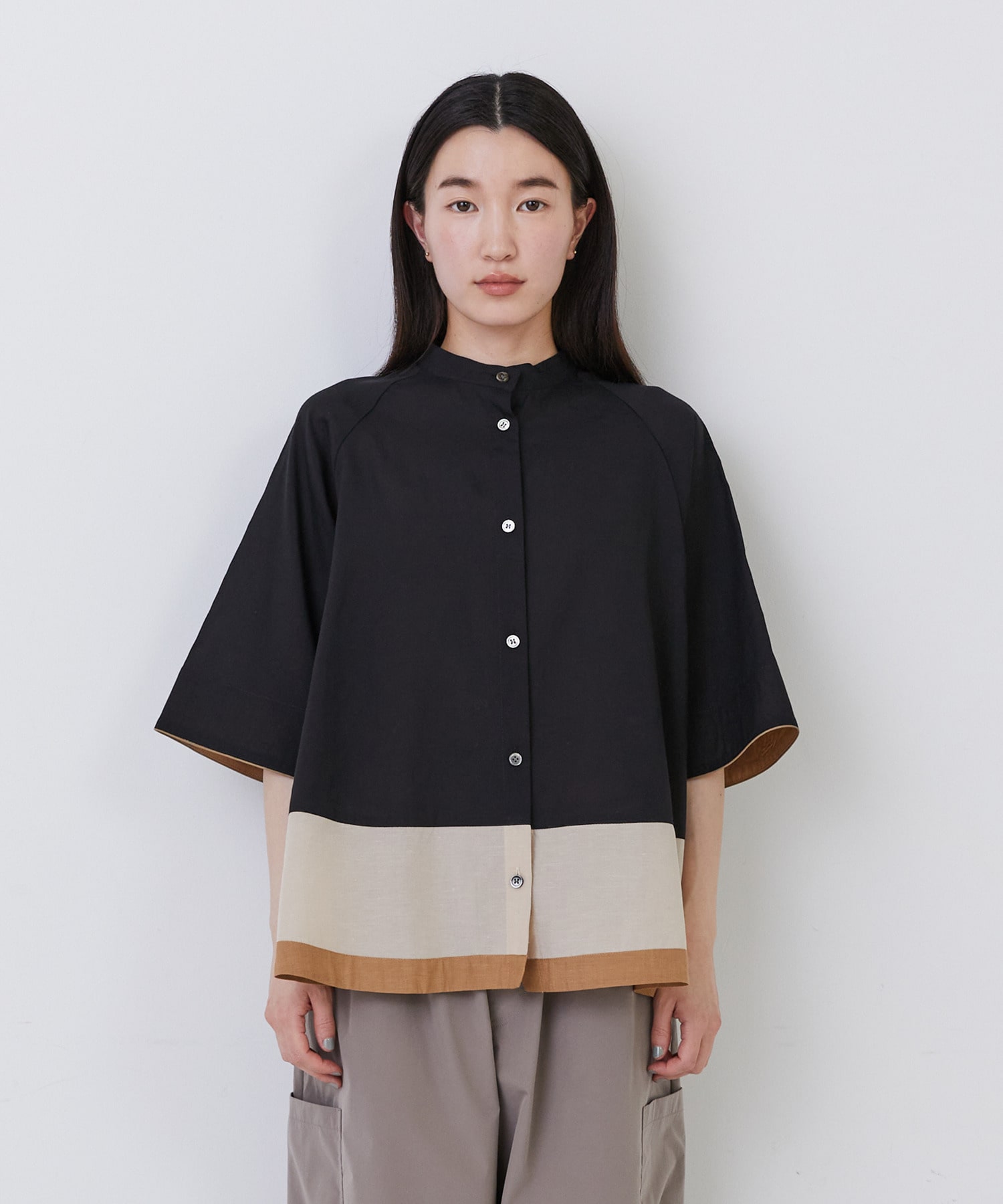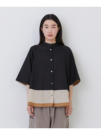 袖を折り返すと配色になるパターンで、折らずに着た時の配色細芯パイピングもポイントです。
