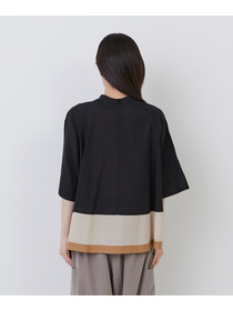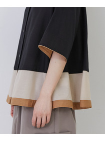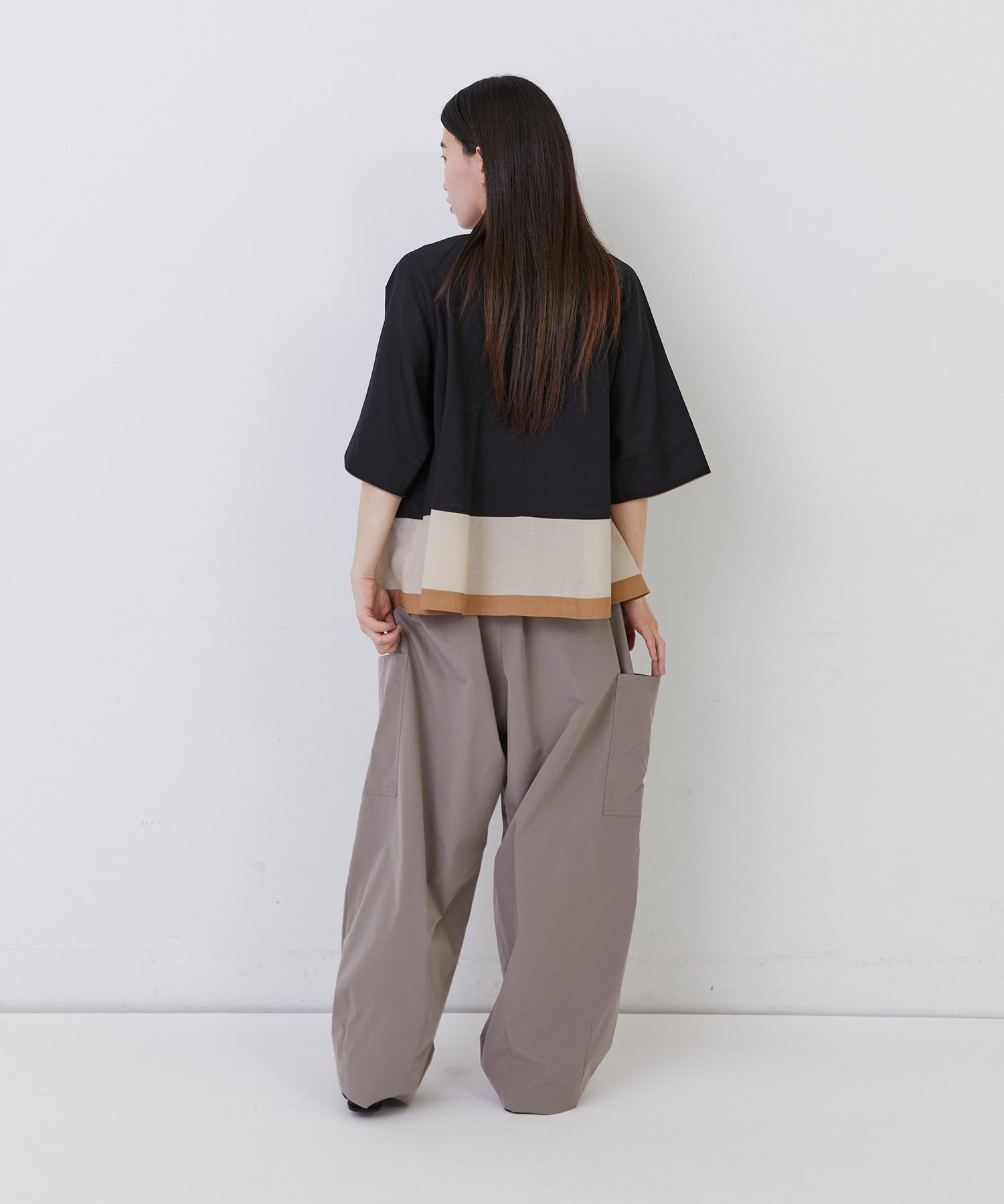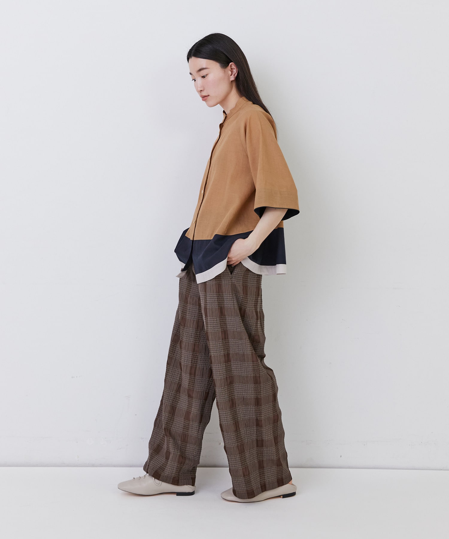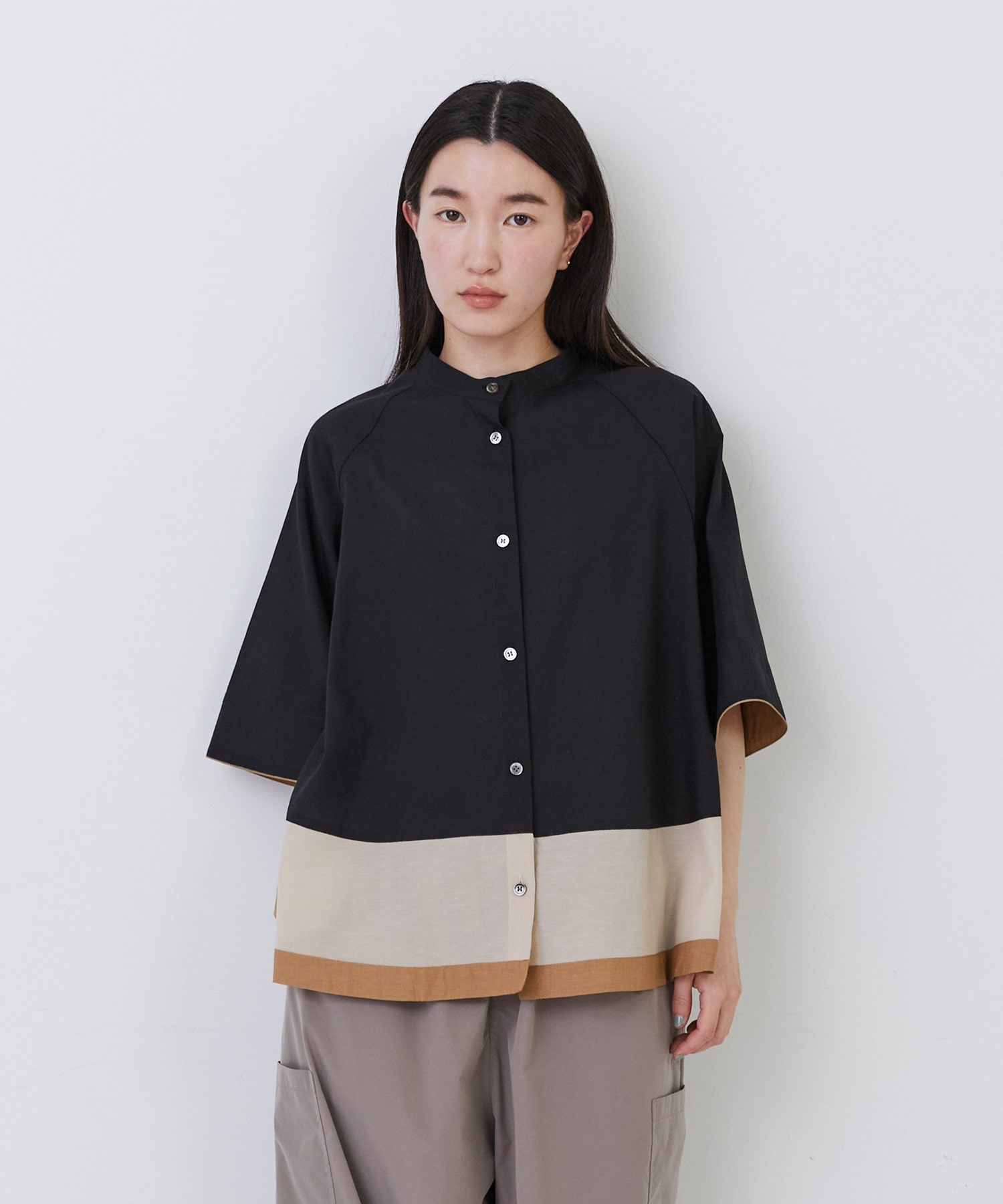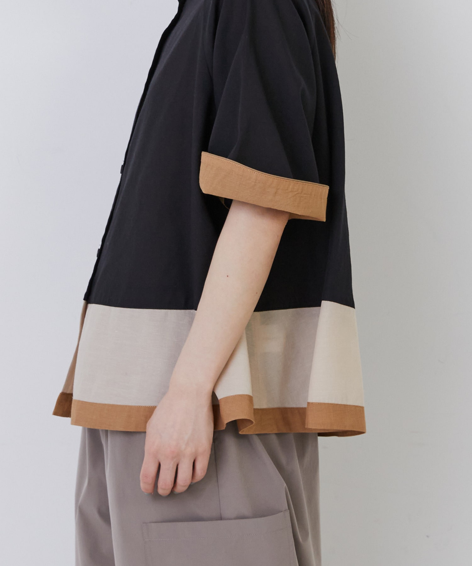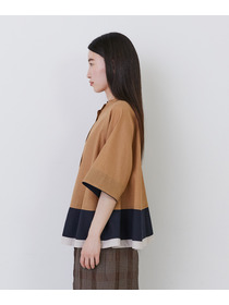 袖を折り返すと配色になるパターンで、折らずに着た時の配色細芯パイピングもポイントです。