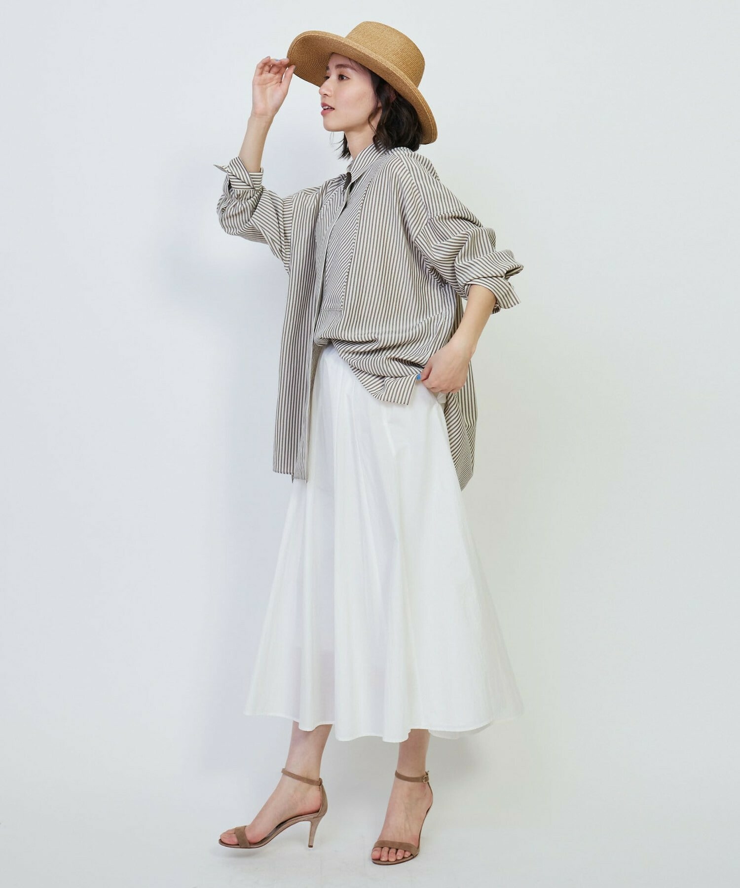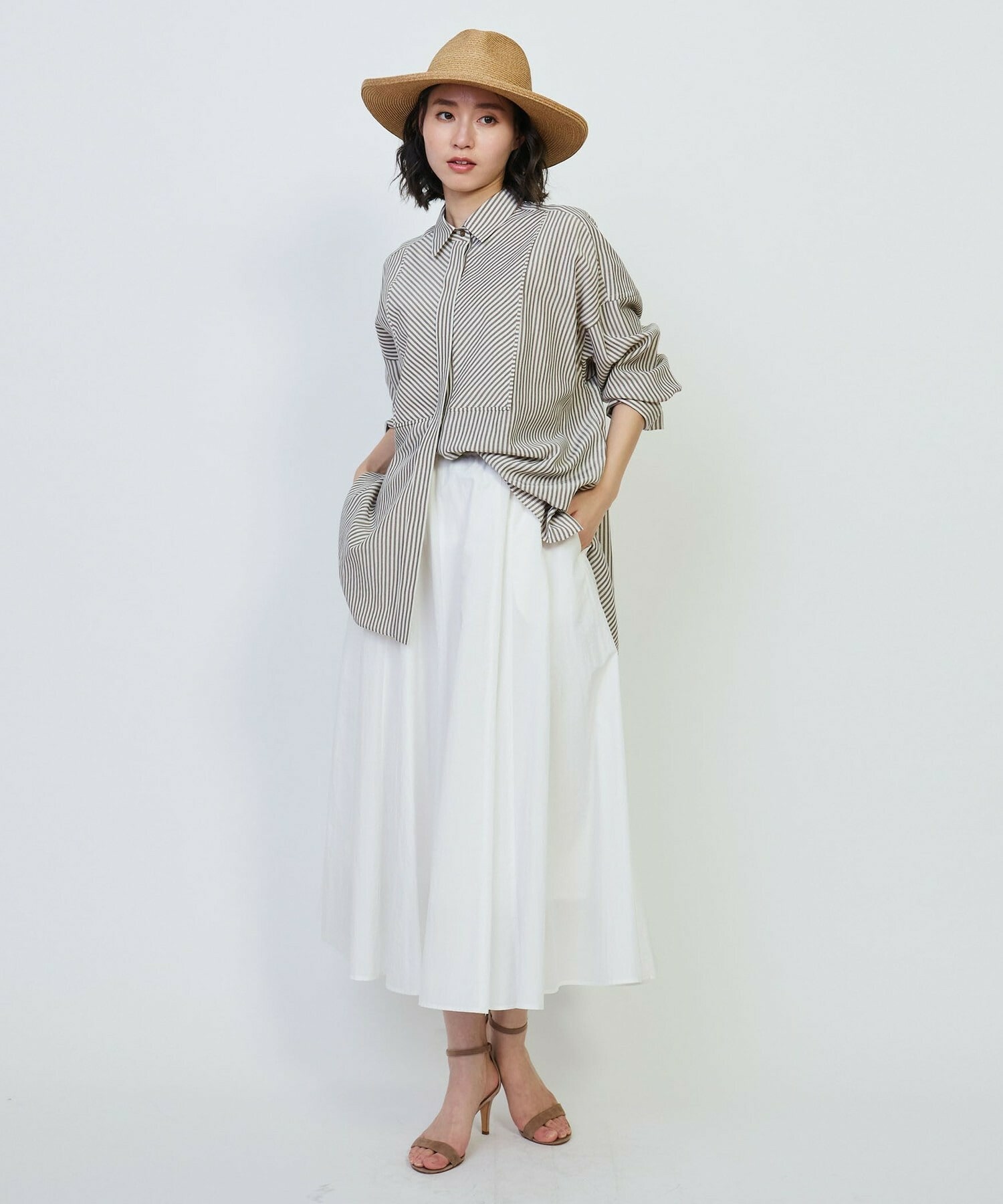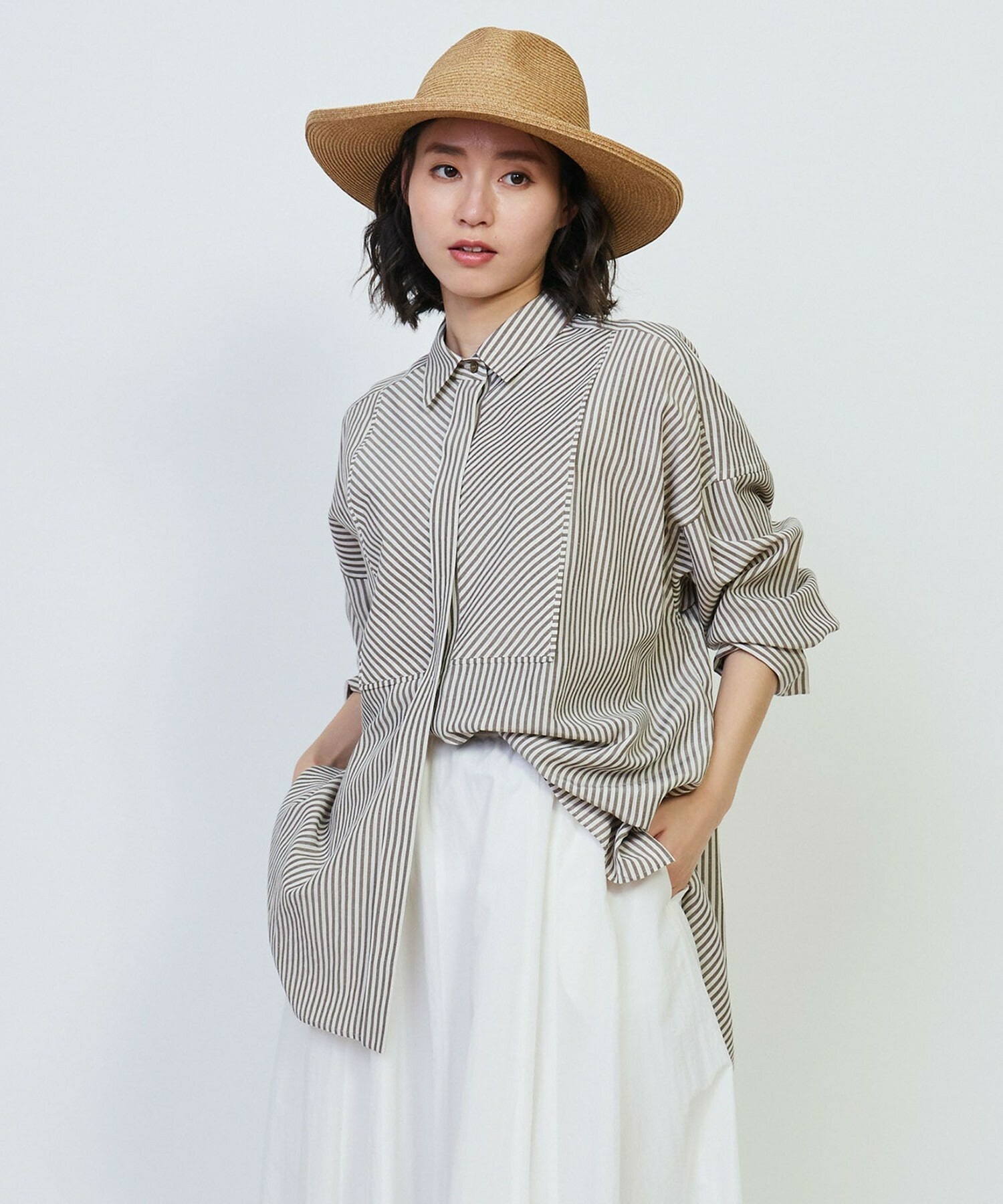 [eclat 2025年5月号掲載]リネン混ストライプシャツ
