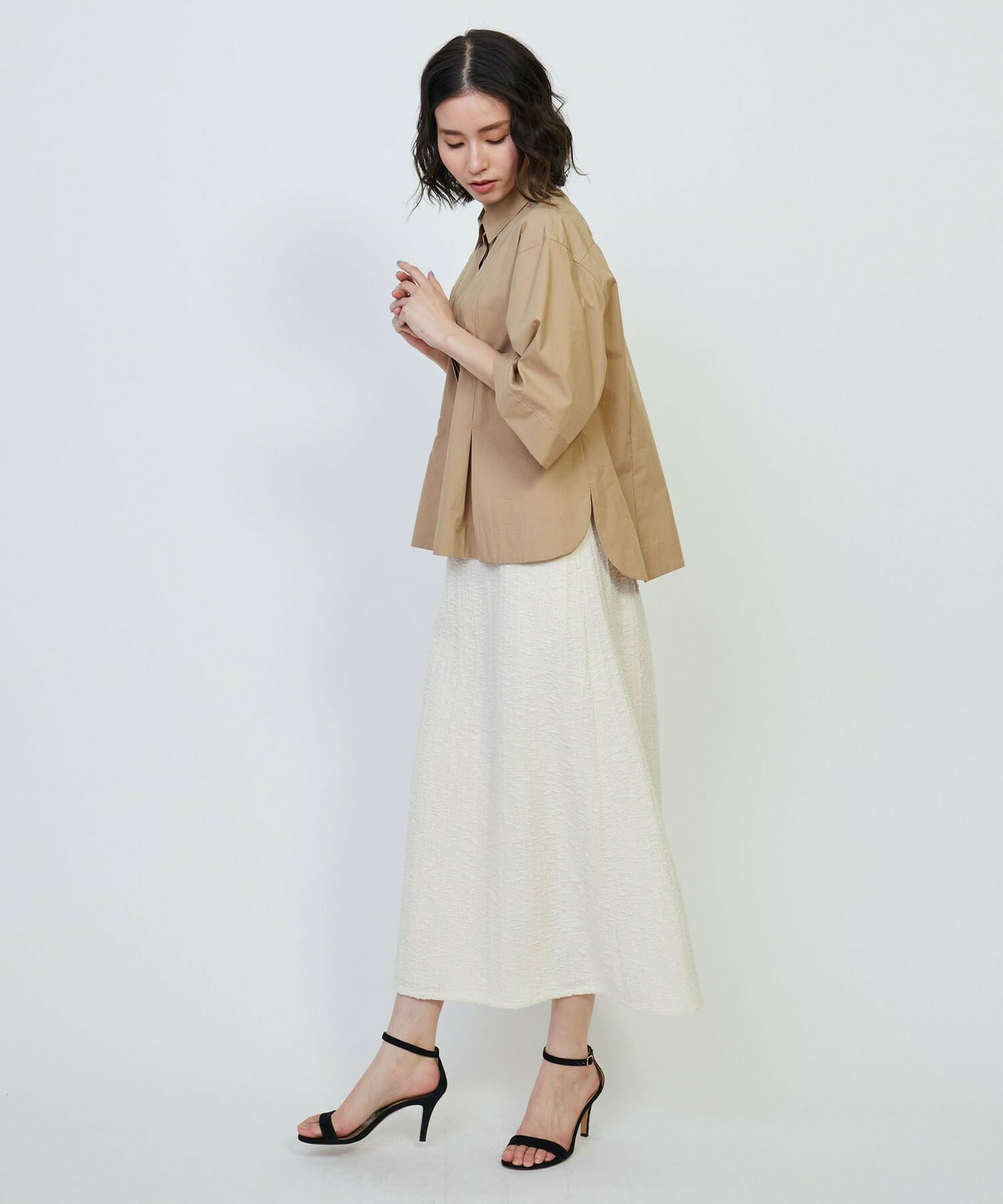 [eclat 2025年5月号掲載]コットンナイロンダンプシャツブラウス