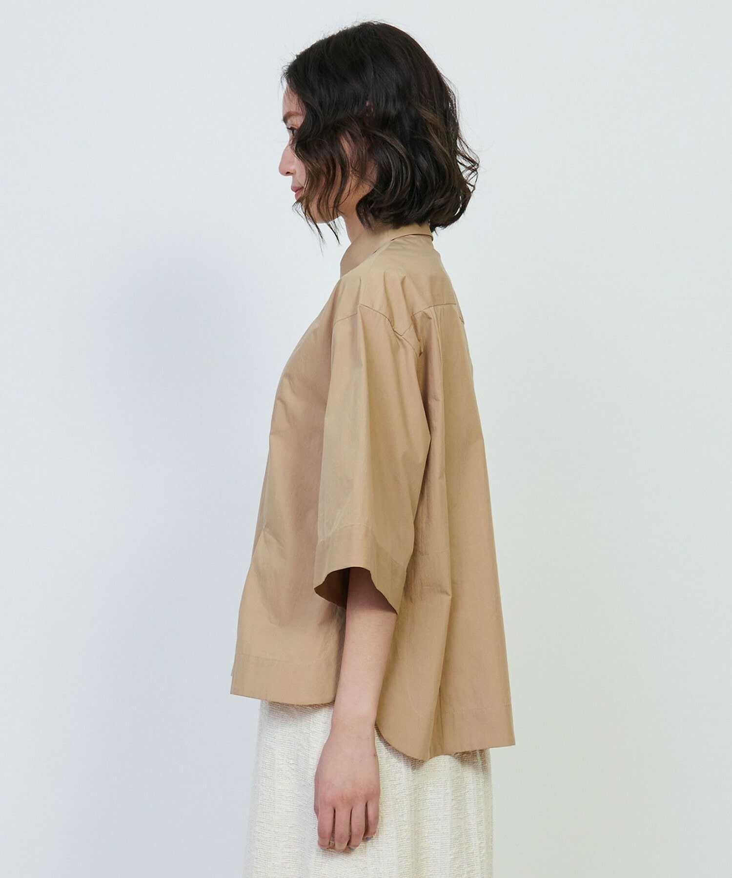 ナチュラル感のある、洗いざらしで着ていただけるイージーケア素材。ボトムを選ばずバランス良く着ていただけます。
