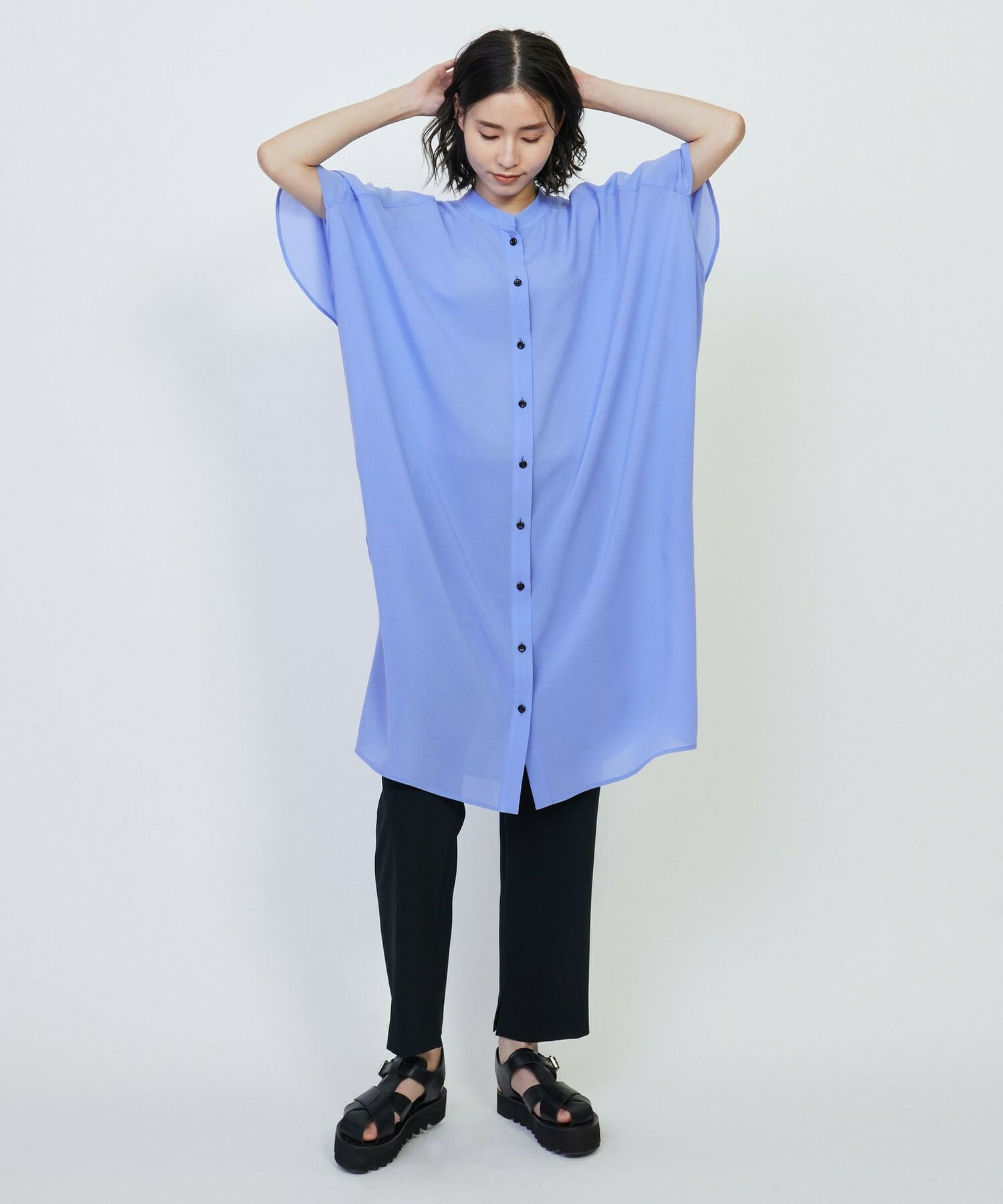 さらっとしたタッチで肌離れが良く、フロントを開けて羽織りとしてもお使いいただけます。