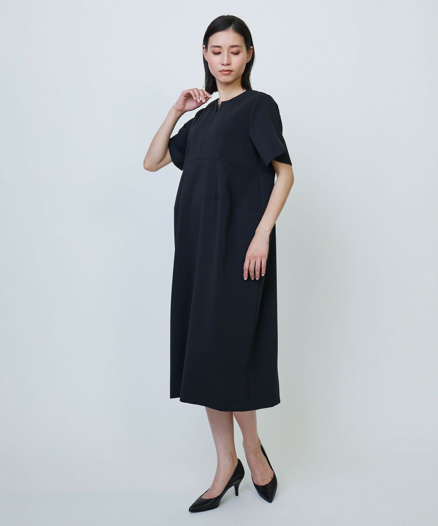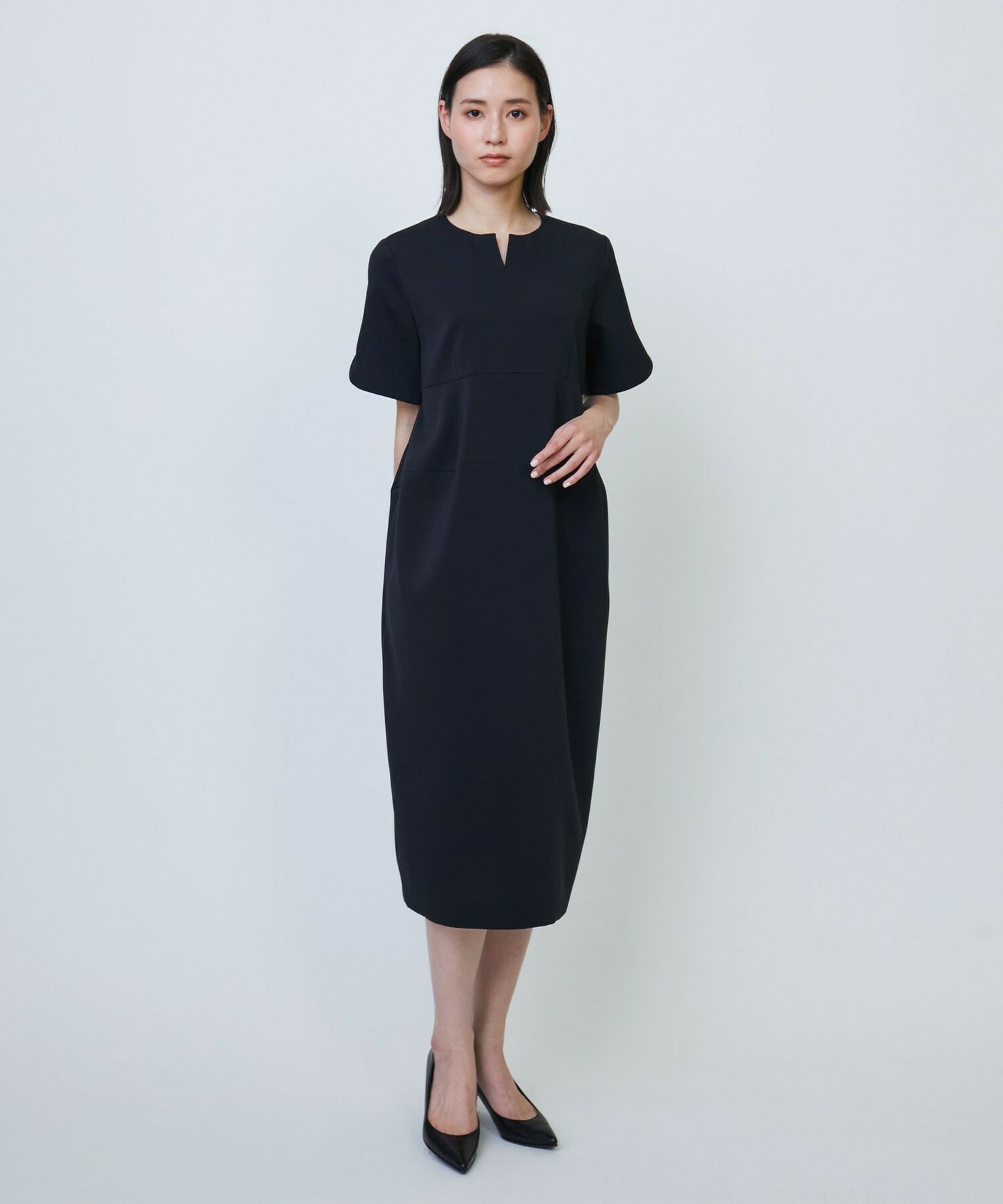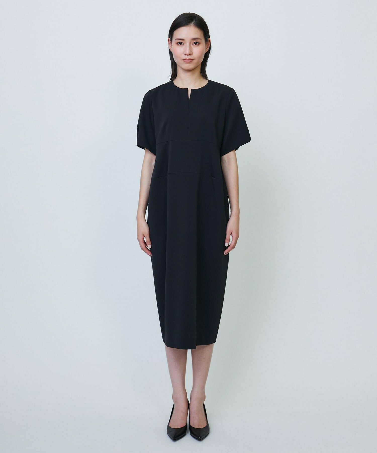 カーブを描くスリーブとスリットが、エレガントかつ上品な印象をプラスしています。