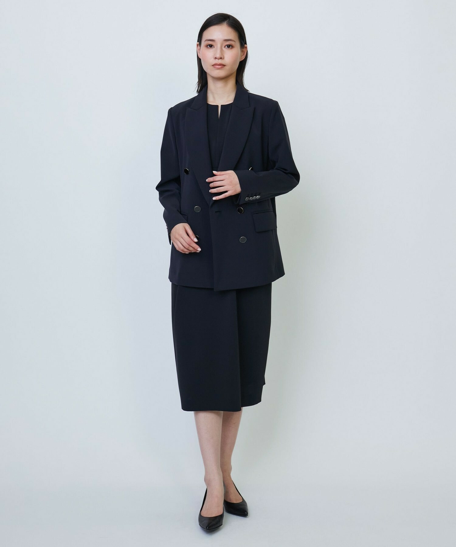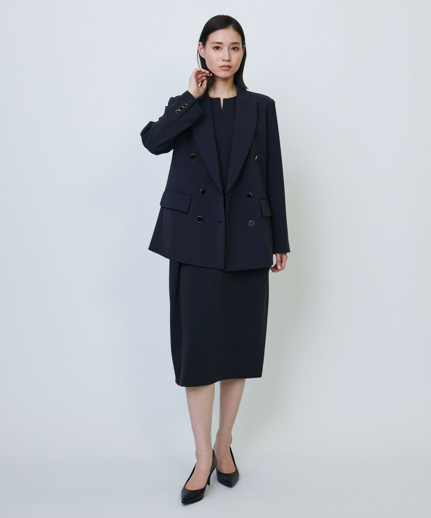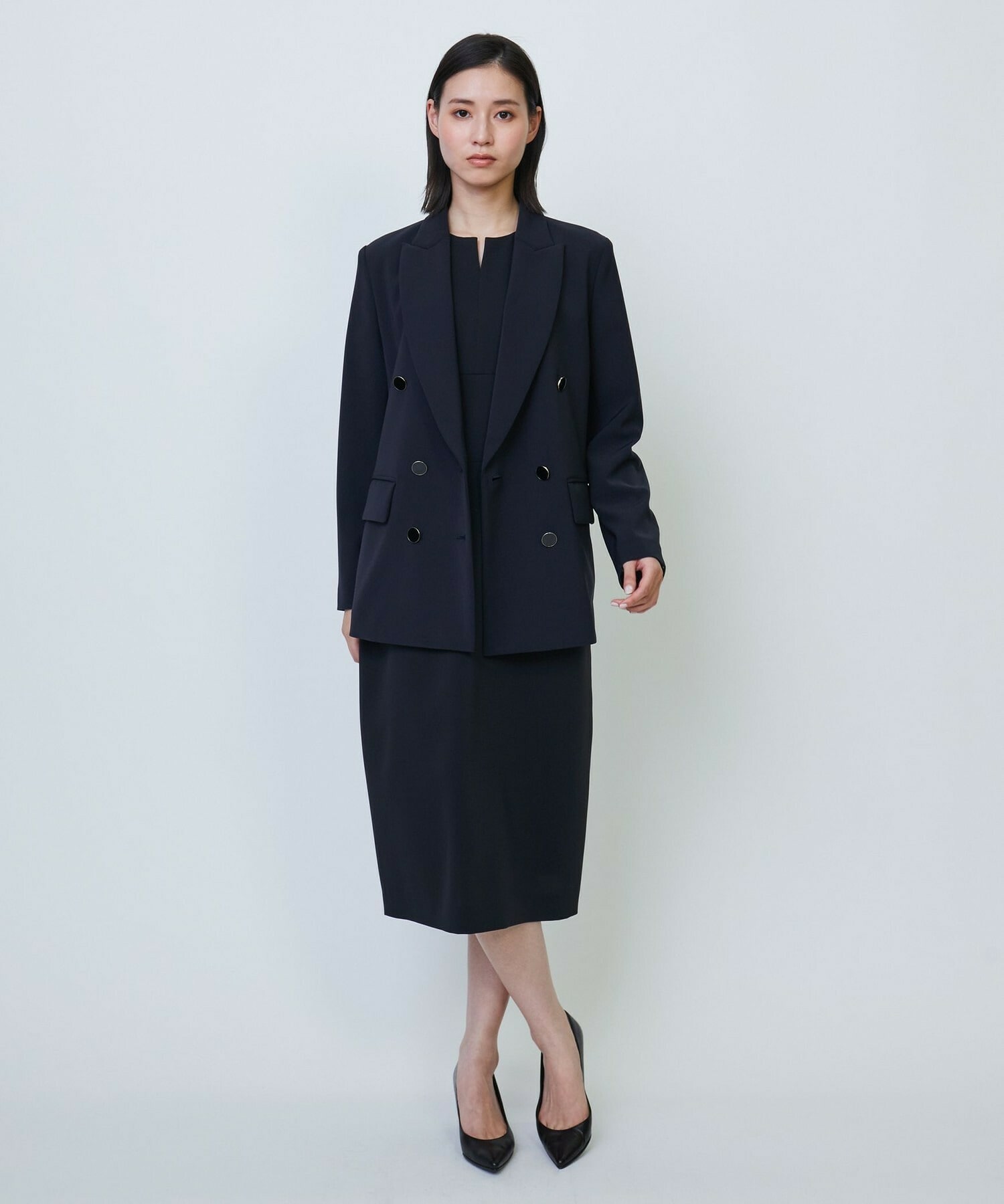 カーブを描くスリーブとスリットが、エレガントかつ上品な印象をプラスしています。