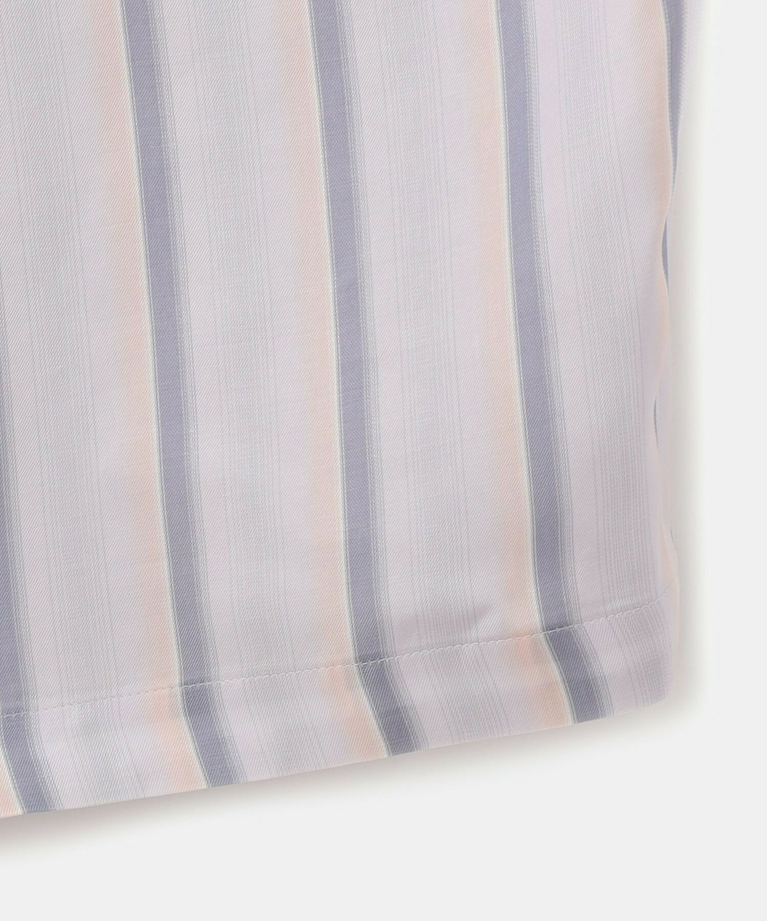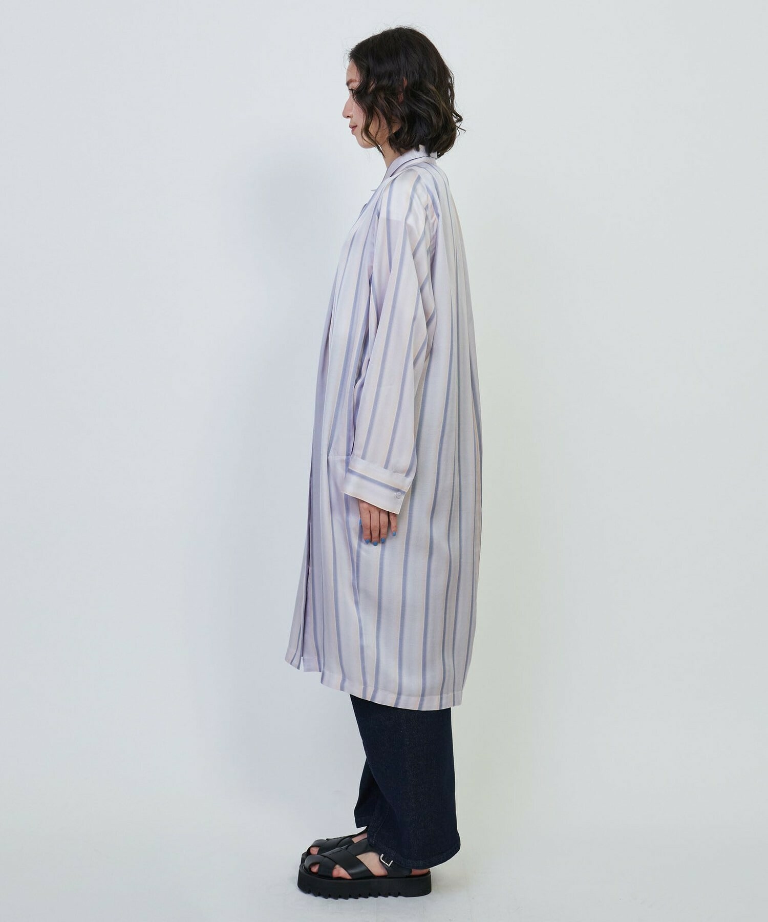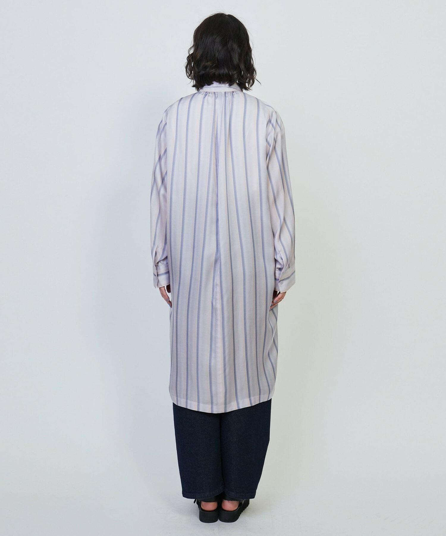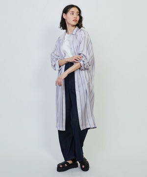 キュプラ素材で滑りも良く、オリジナルのグラデーションストライプがフェミニンな印象を与えてくれます。羽織りとしてパンツと合わせてもバランスよく着て頂けます。