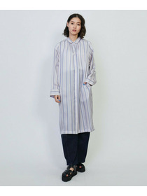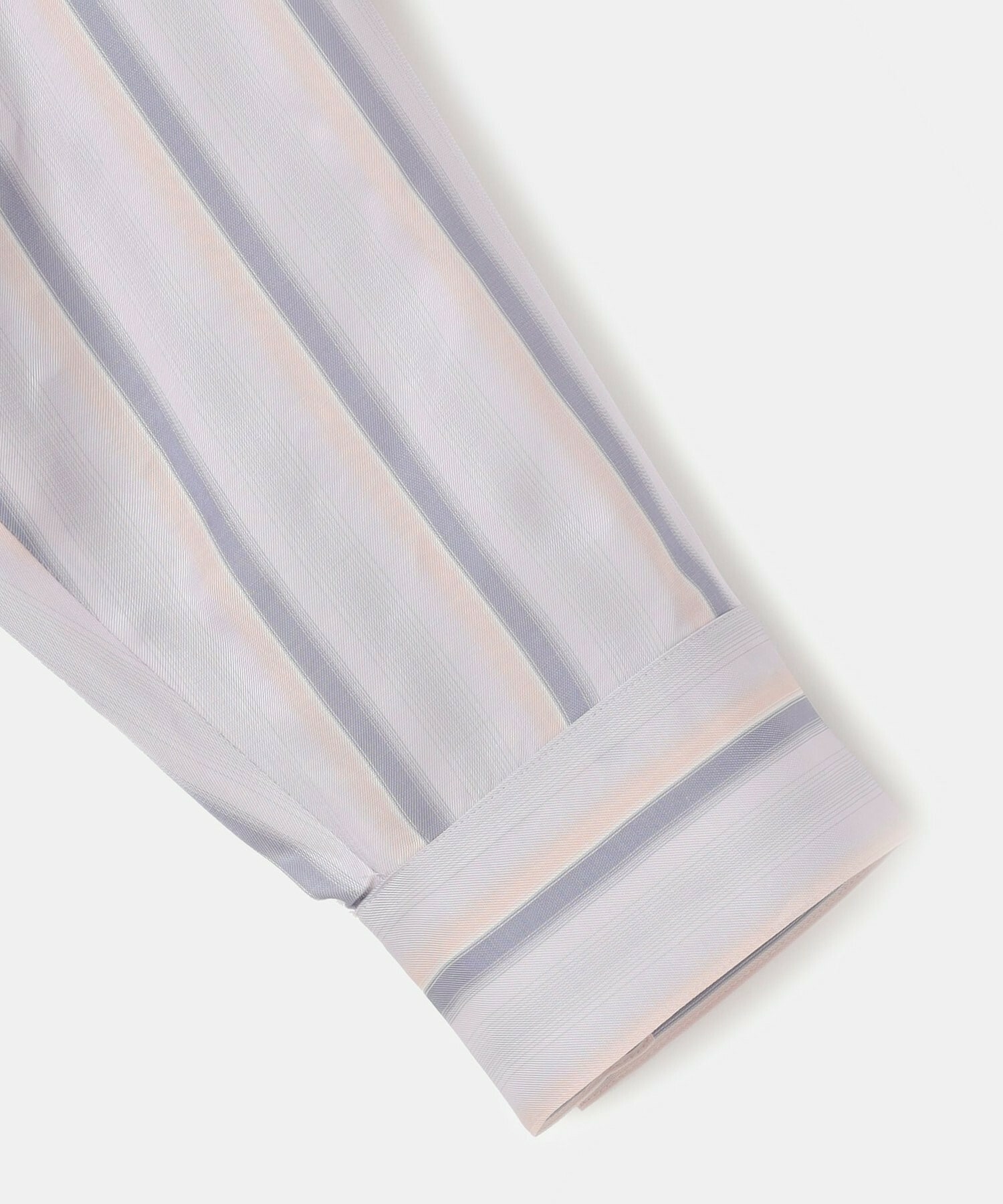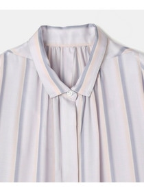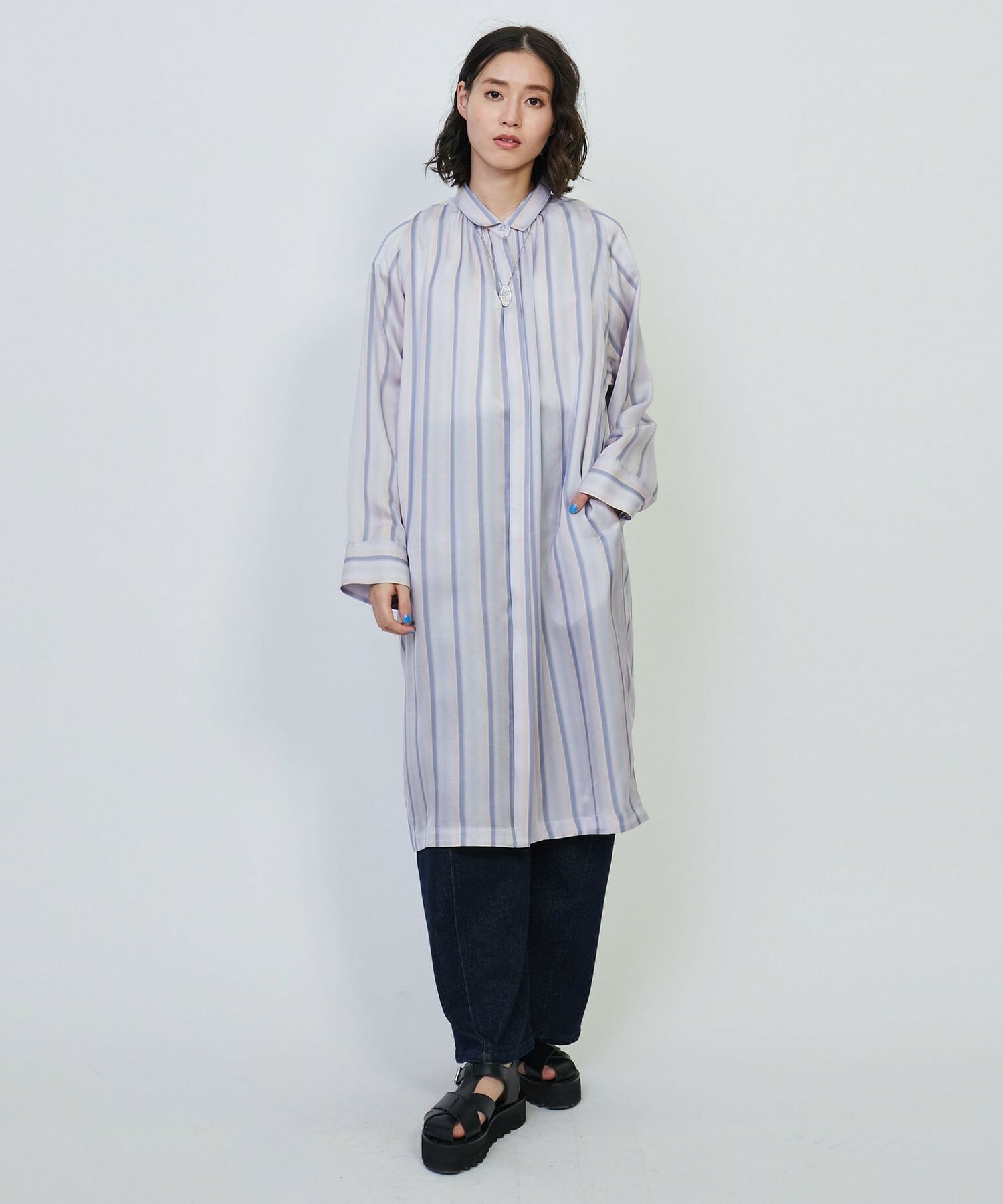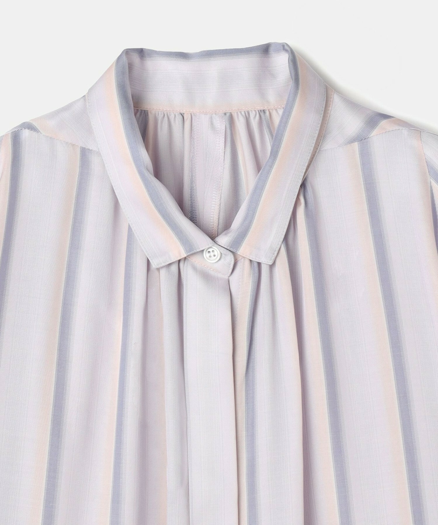 キュプラ素材で滑りも良く、オリジナルのグラデーションストライプがフェミニンな印象を与えてくれます。羽織りとしてパンツと合わせてもバランスよく着て頂けます。