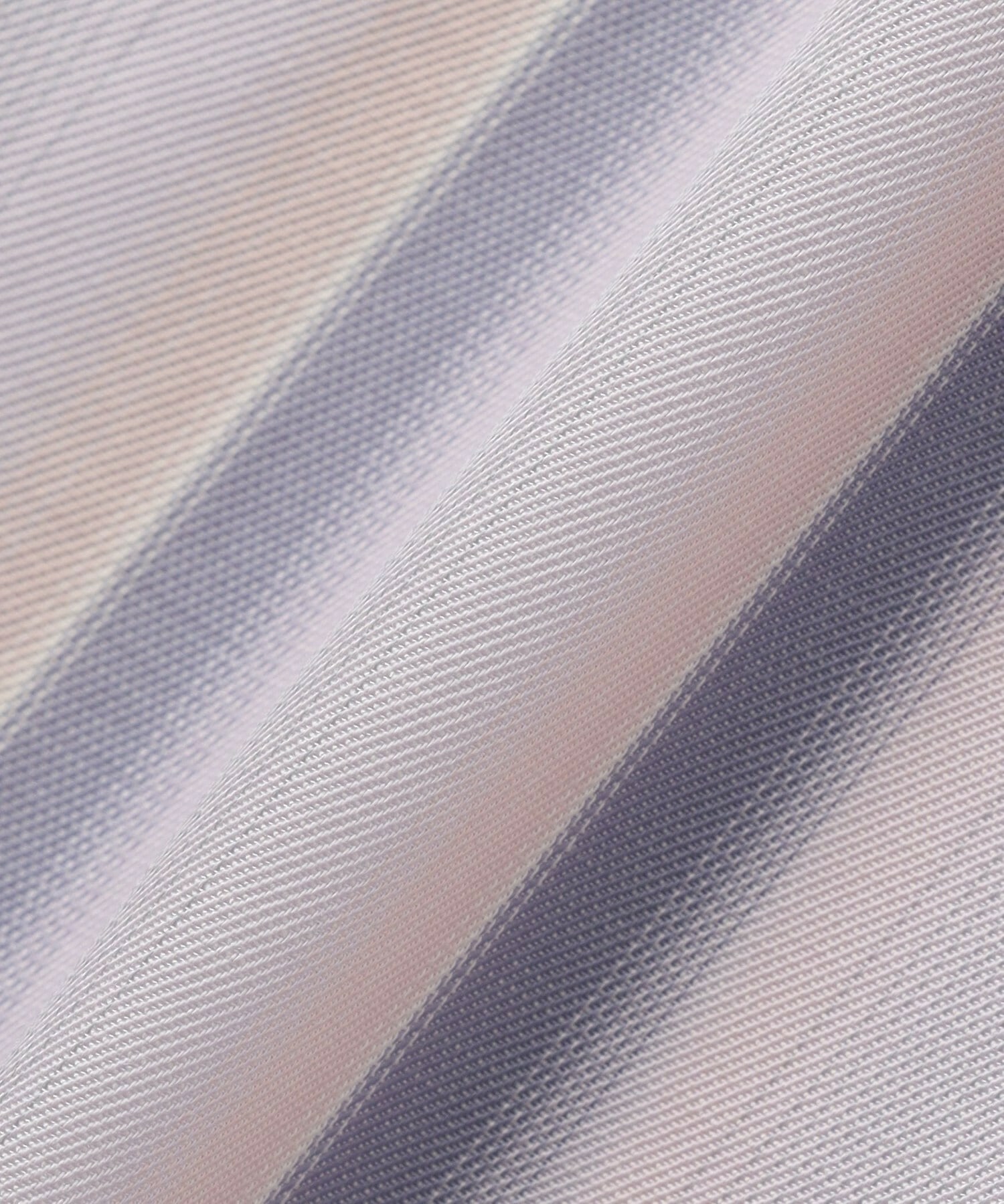 先染めでしか表現できないキュプラを使用した多色のオンブレ調のストライプです。強撚糸を使用する事により清涼感を出した快適な着心地が特徴です。