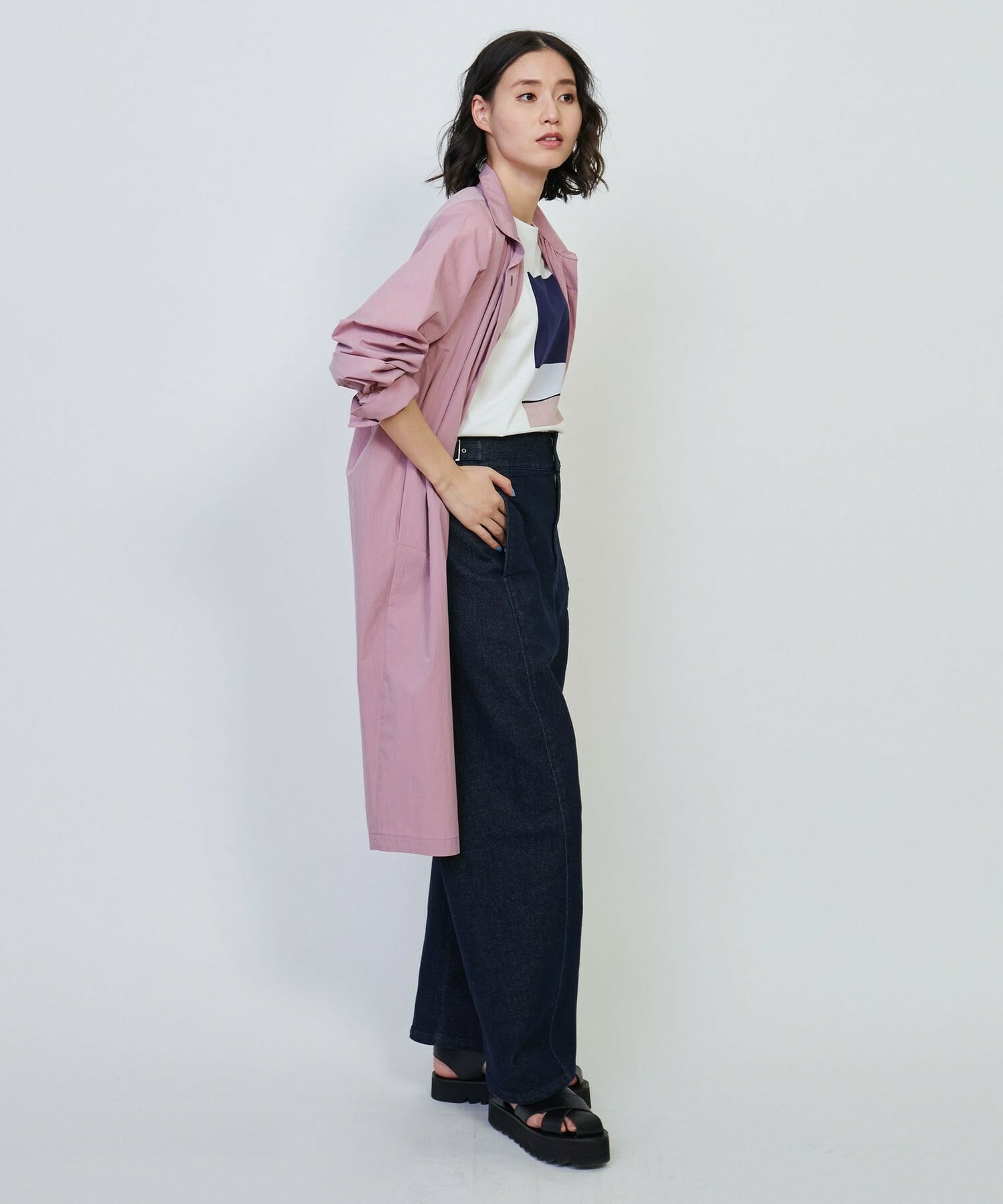 ナチュラル感のある素材で洗いざらしで着ていただけるイージーケア素材を使用しています。羽織りとしてパンツと合わせてもバランスよく着ていただけます。