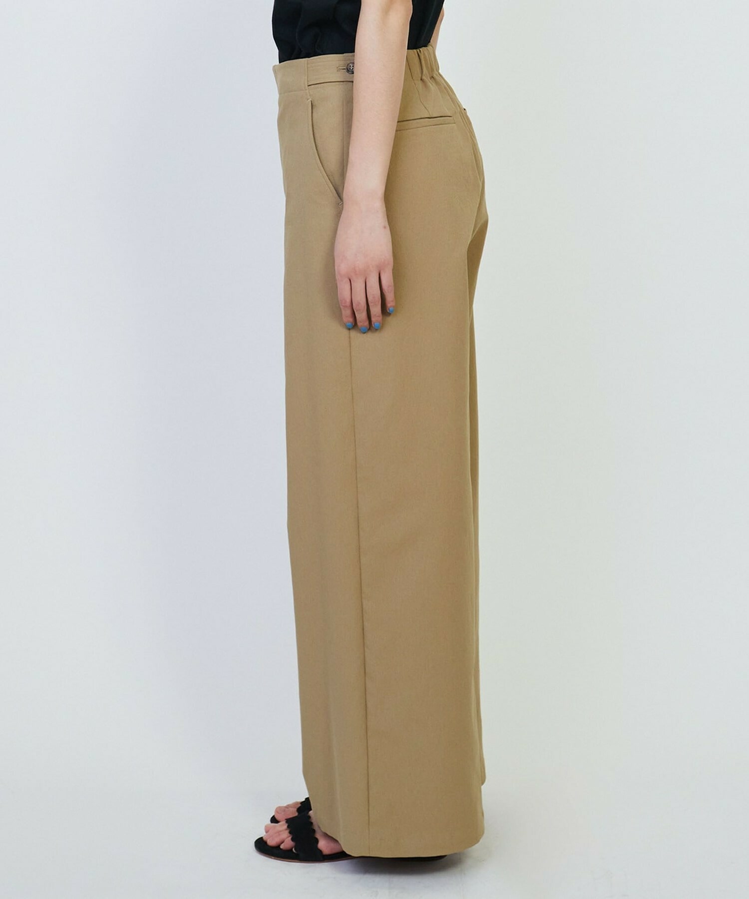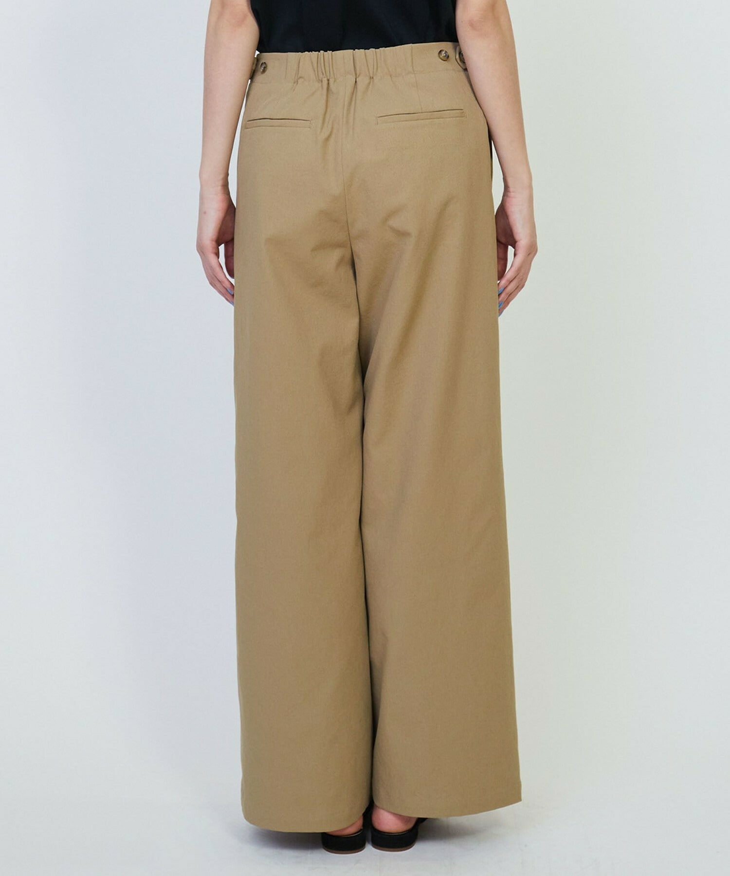 後ろウエストがゴム仕様でフィット感があり履き心地抜群です。デイリー使いにおすすめのパンツです。
