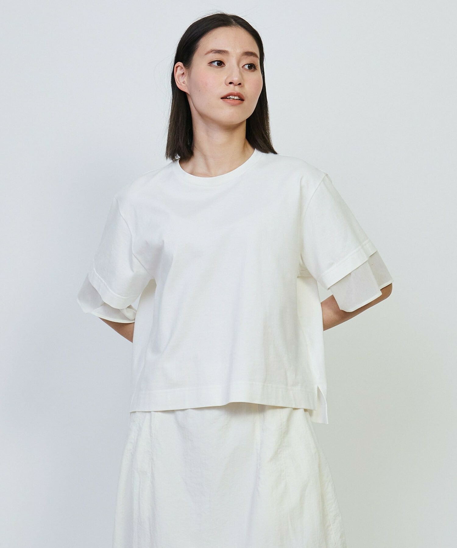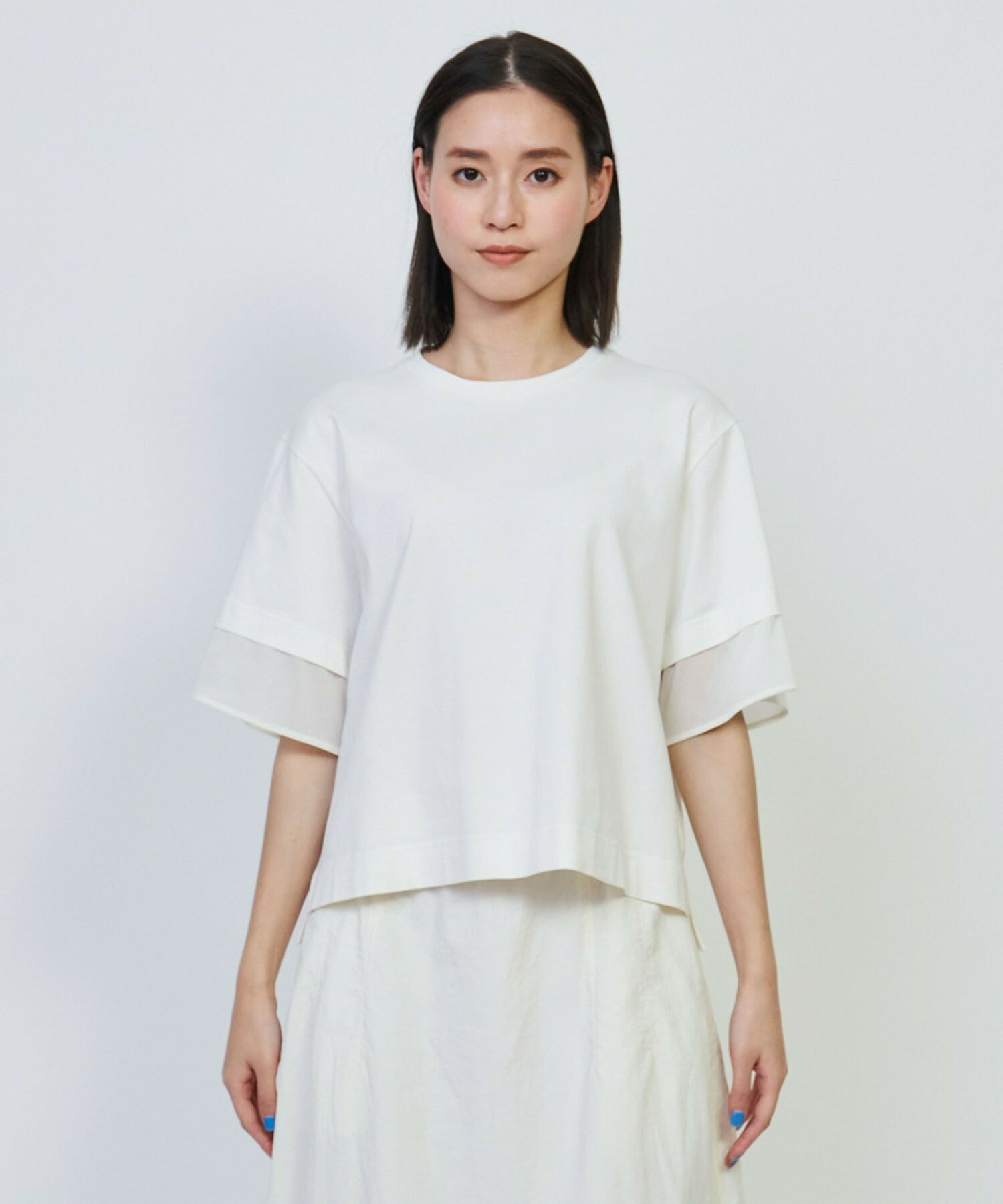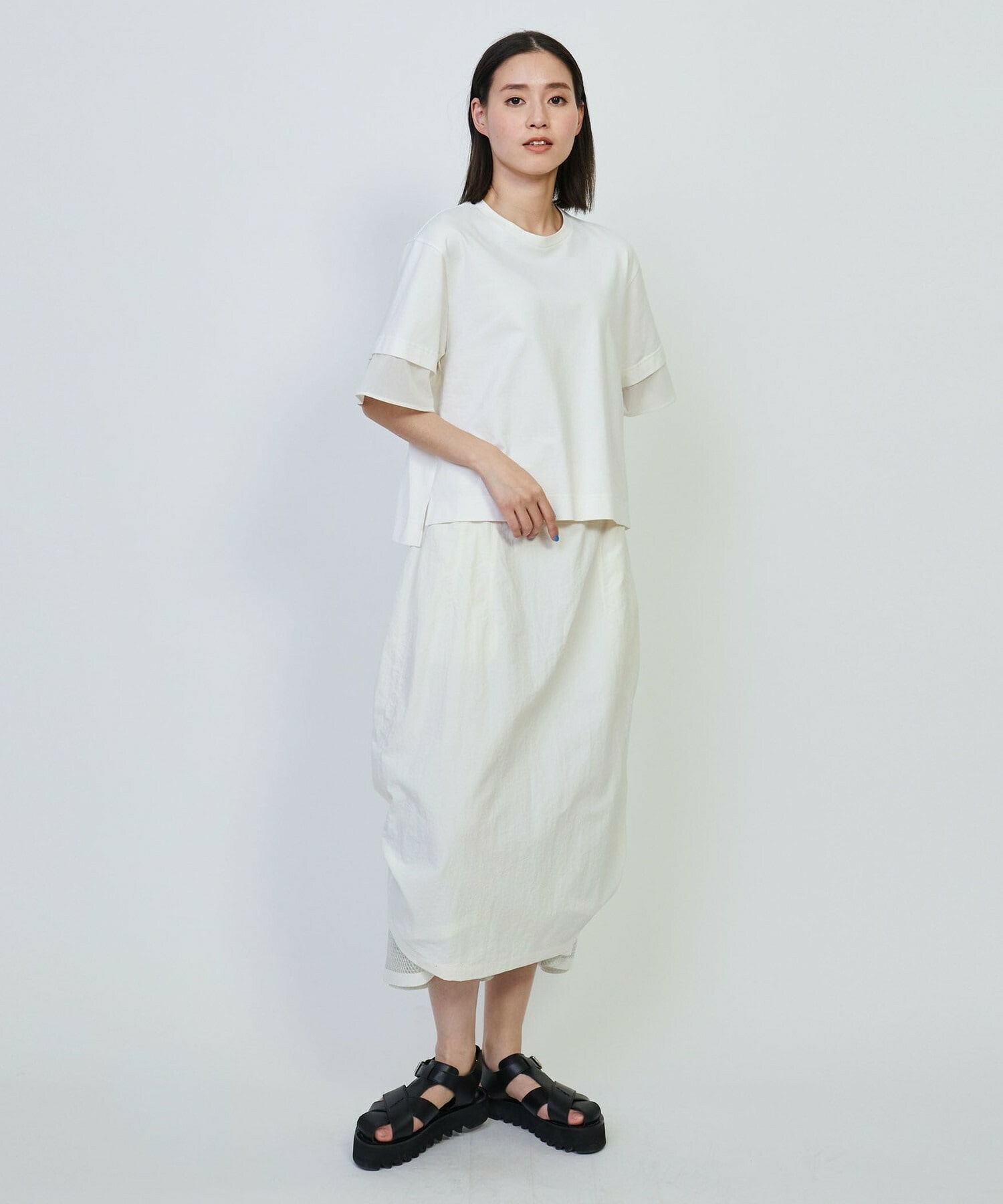 布帛ライクに仕上げたシアーなトリコット素材です。透明感と優しい肌触りが特徴です。