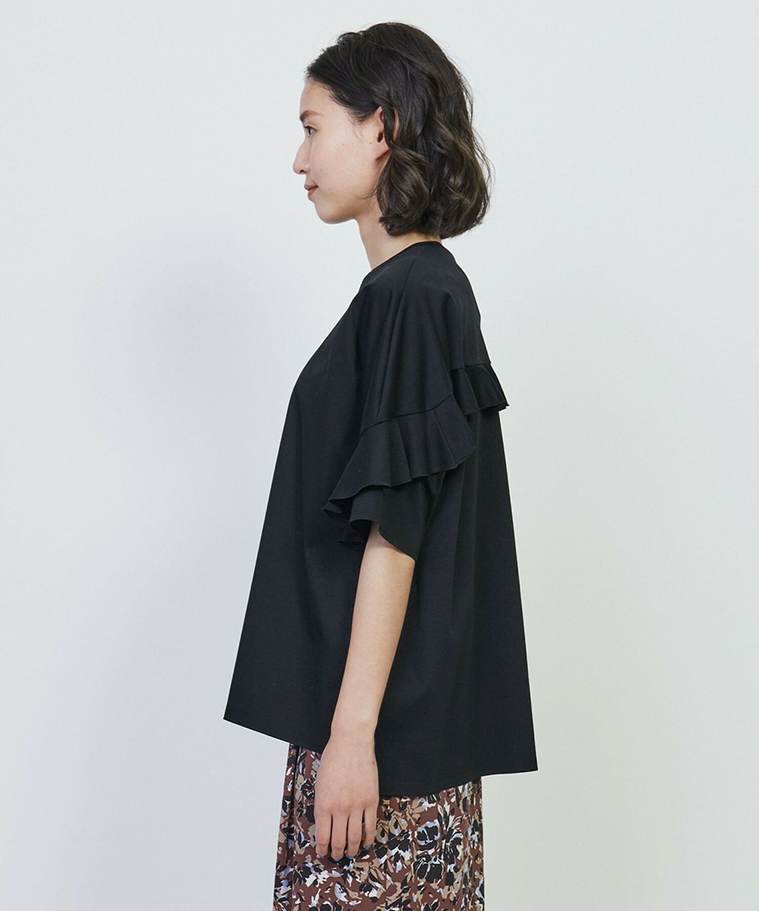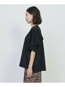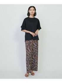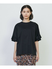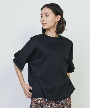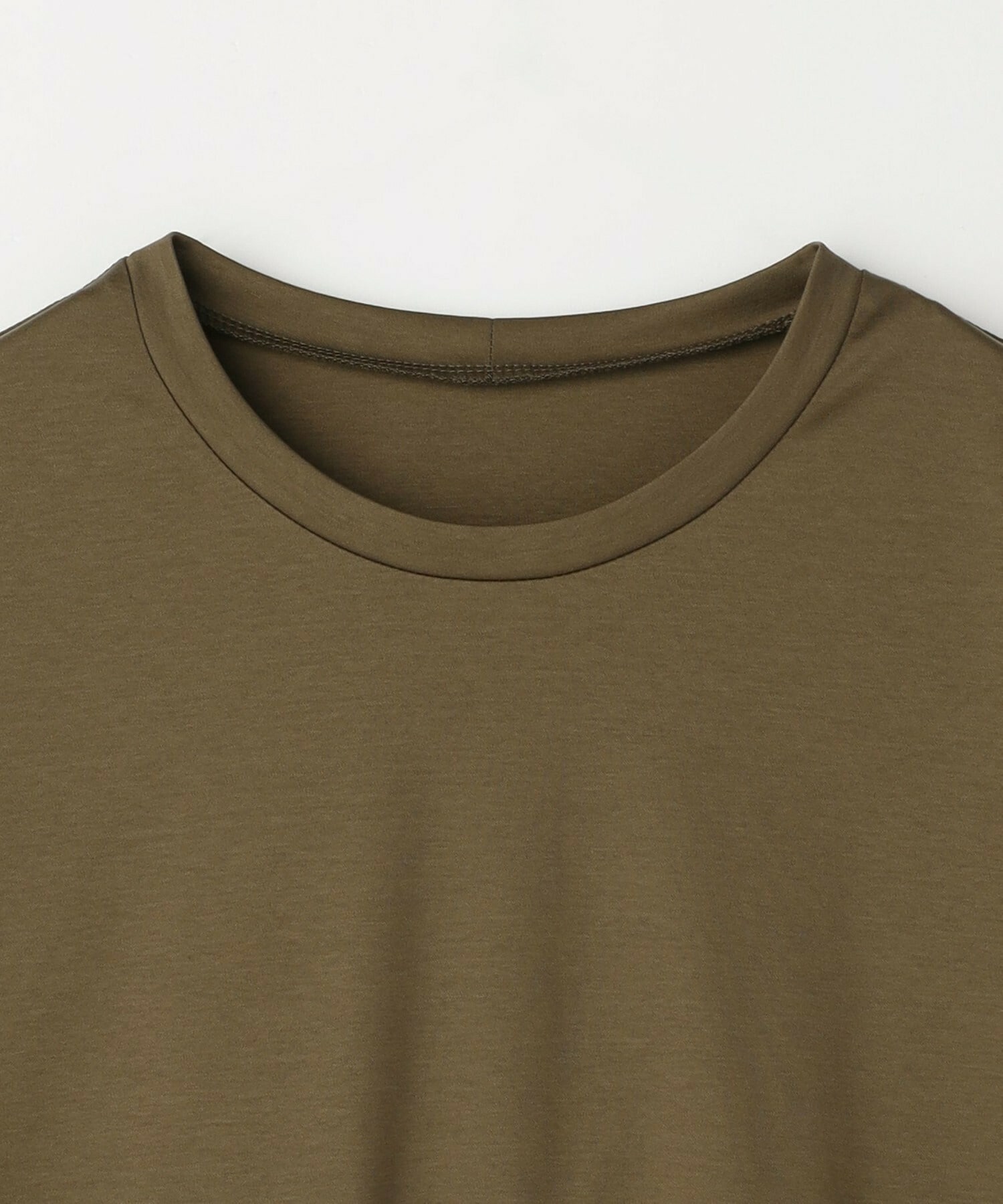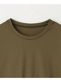 超長綿で編んだハイゲージスムースです。超長綿を使用した生地はシルクのような光沢や上質な風合いを持っており、一般的な綿に比べて一線を画します。また、コンパクトな目面を更に後加工で極限まで毛羽を削ぎ落とし、上品な光沢を表現しました。