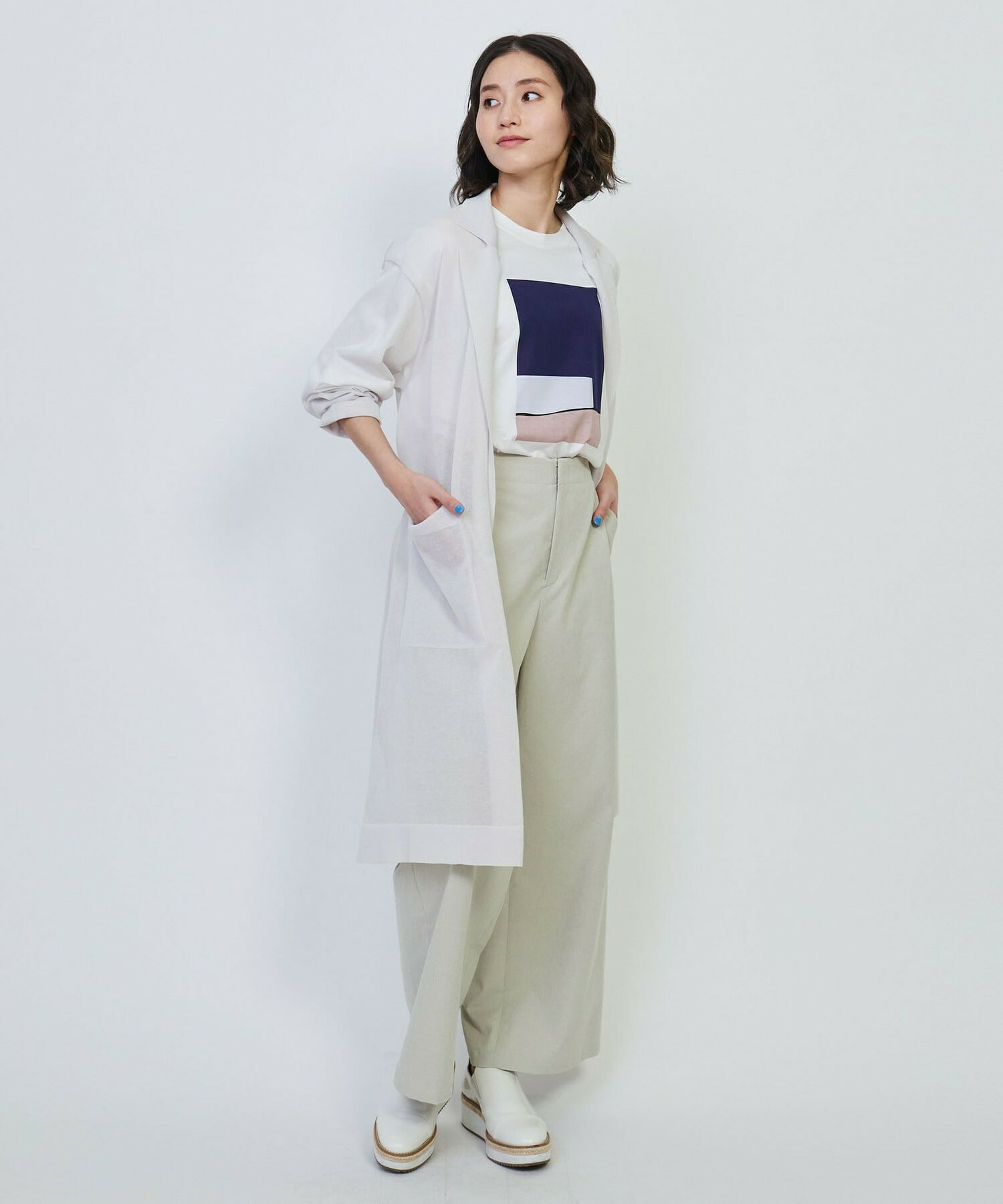 そのままゆったりと羽織ったり、後身頃から続く同素材のベルトでウエストマークしたり、着こなしのアレンジをお楽しみいただけます。
