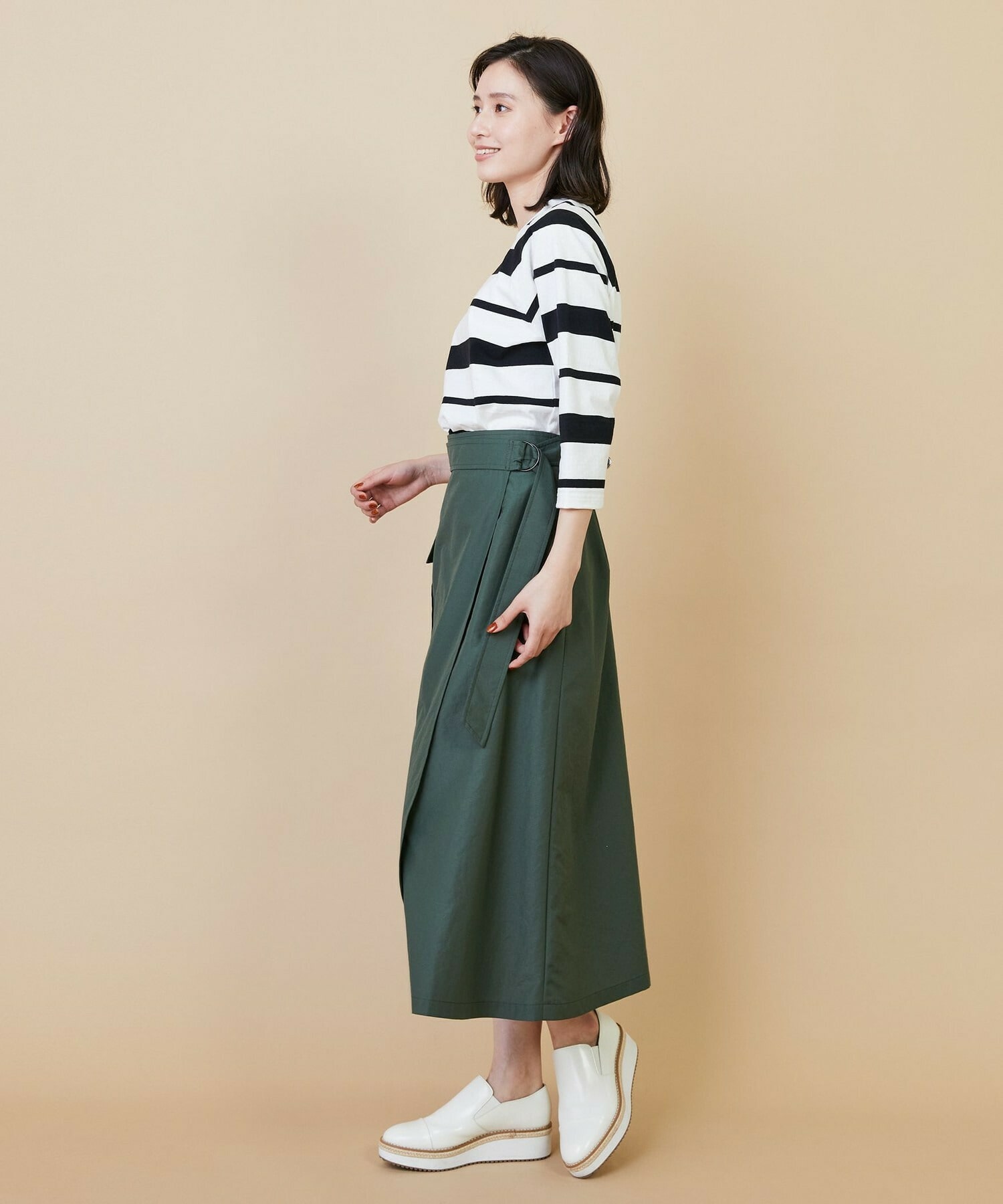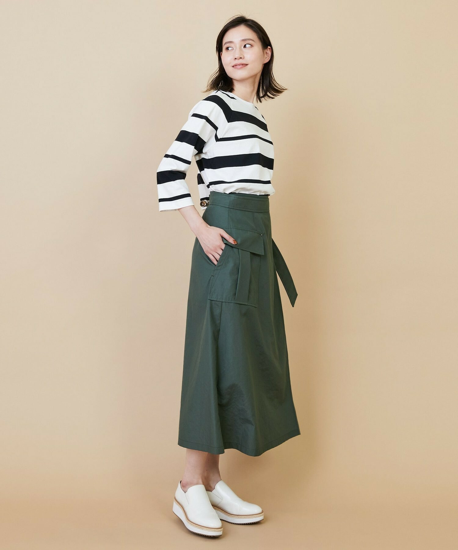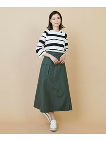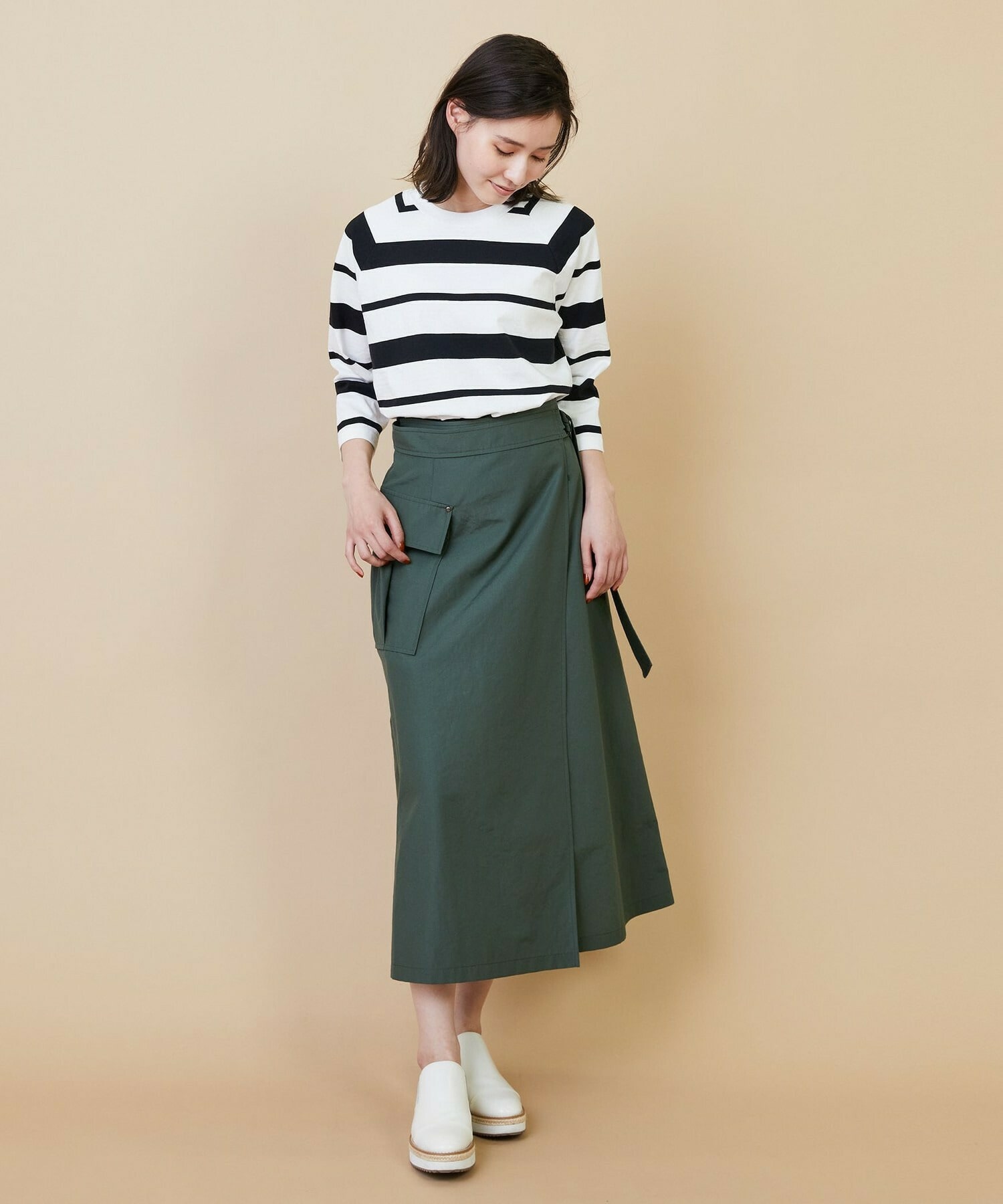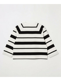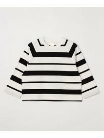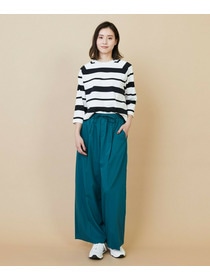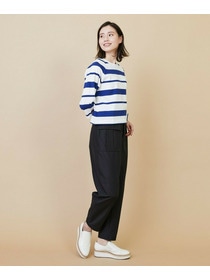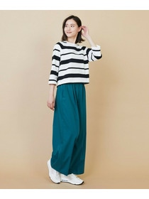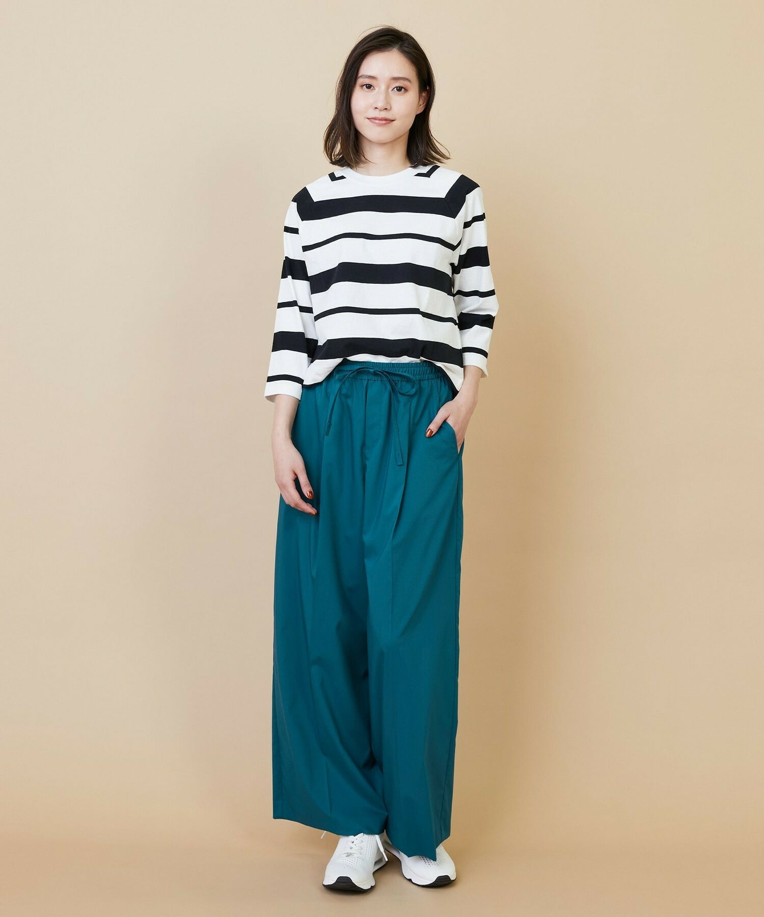 ワイドなボーダーでありながら、ラインの幅に変化をつけることで、とても女性らしい印象のボーダー柄に仕上がっております。また、リサイクル糸を使用することで、糸のムラ感が生地の表情を生み出しています。