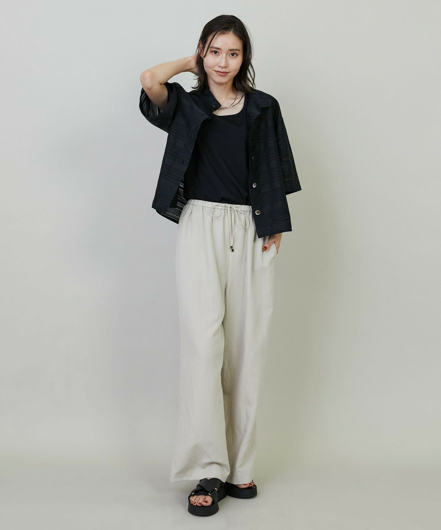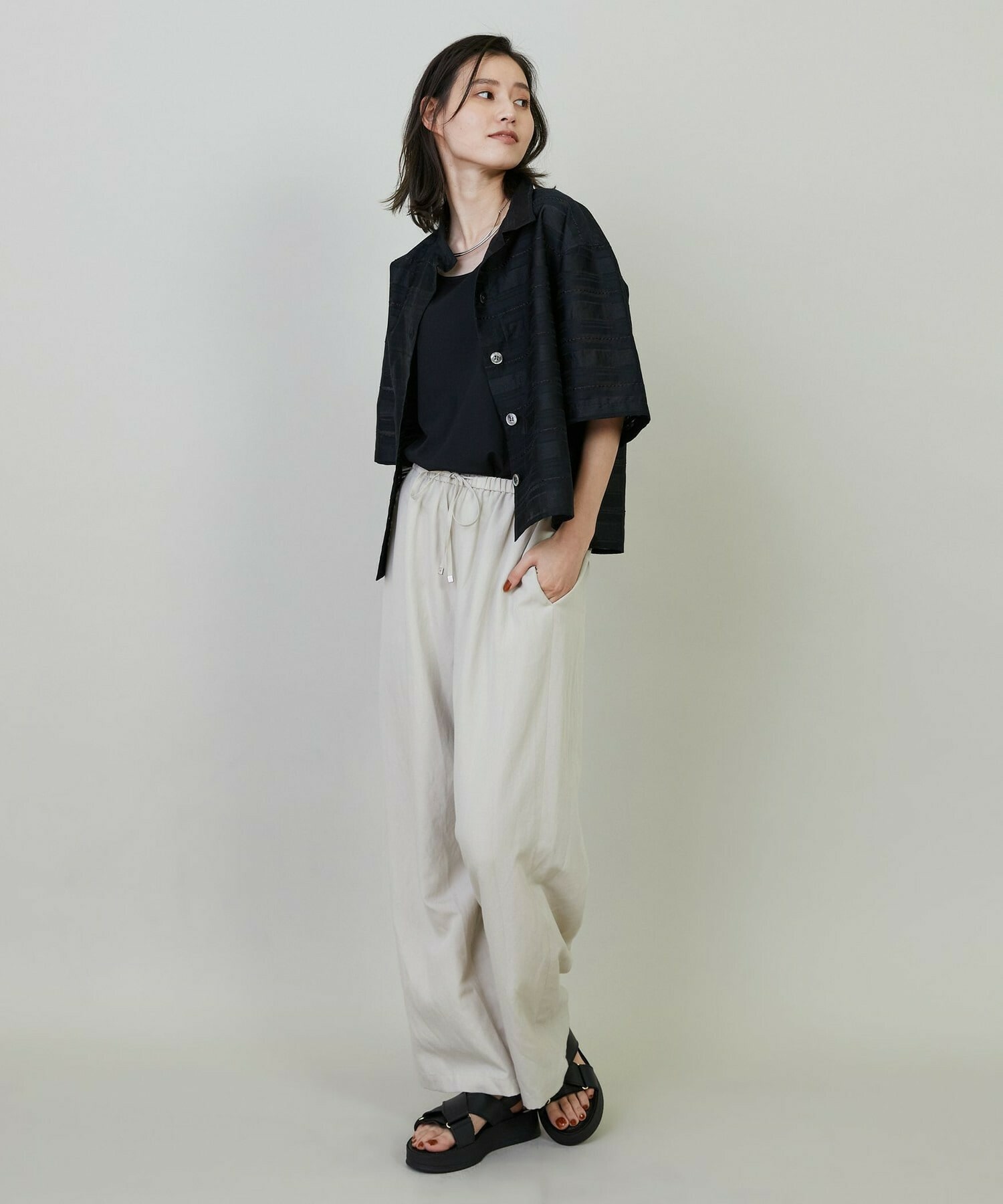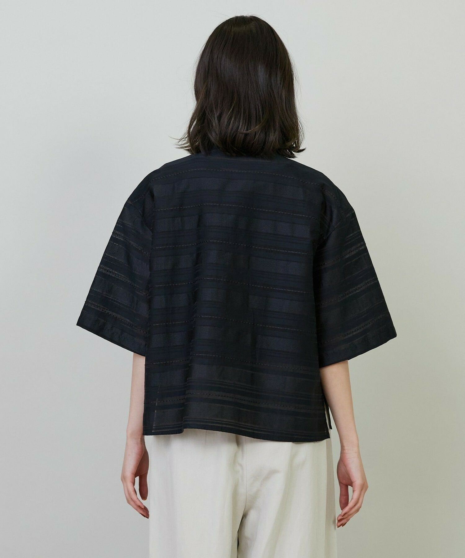 ナイロンと綿を組み合わせたシャドウボーダー素材。ドビー織による組織変化でより表情のある素材になっています。