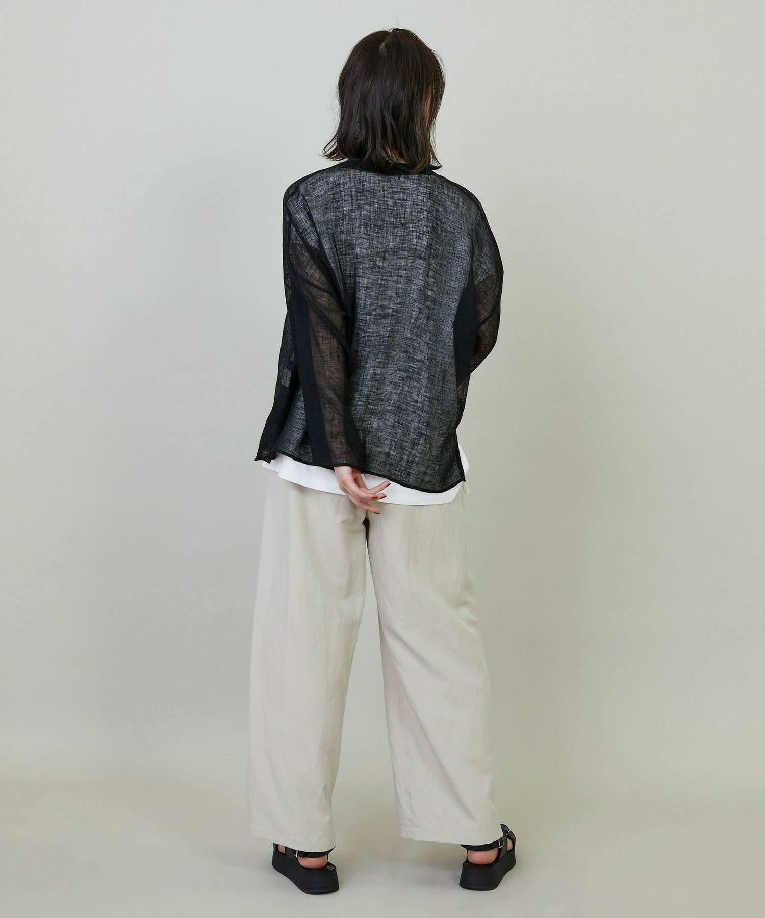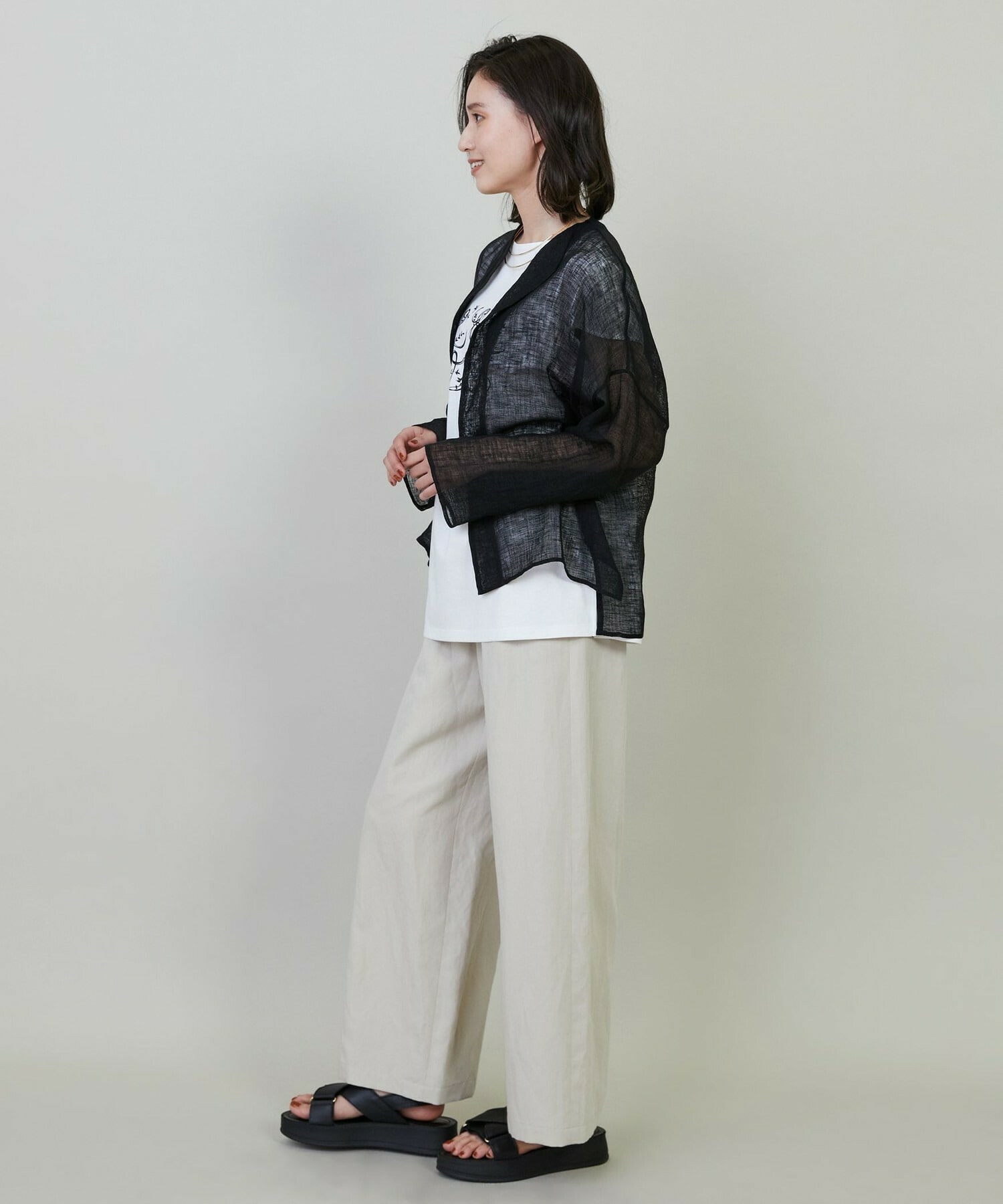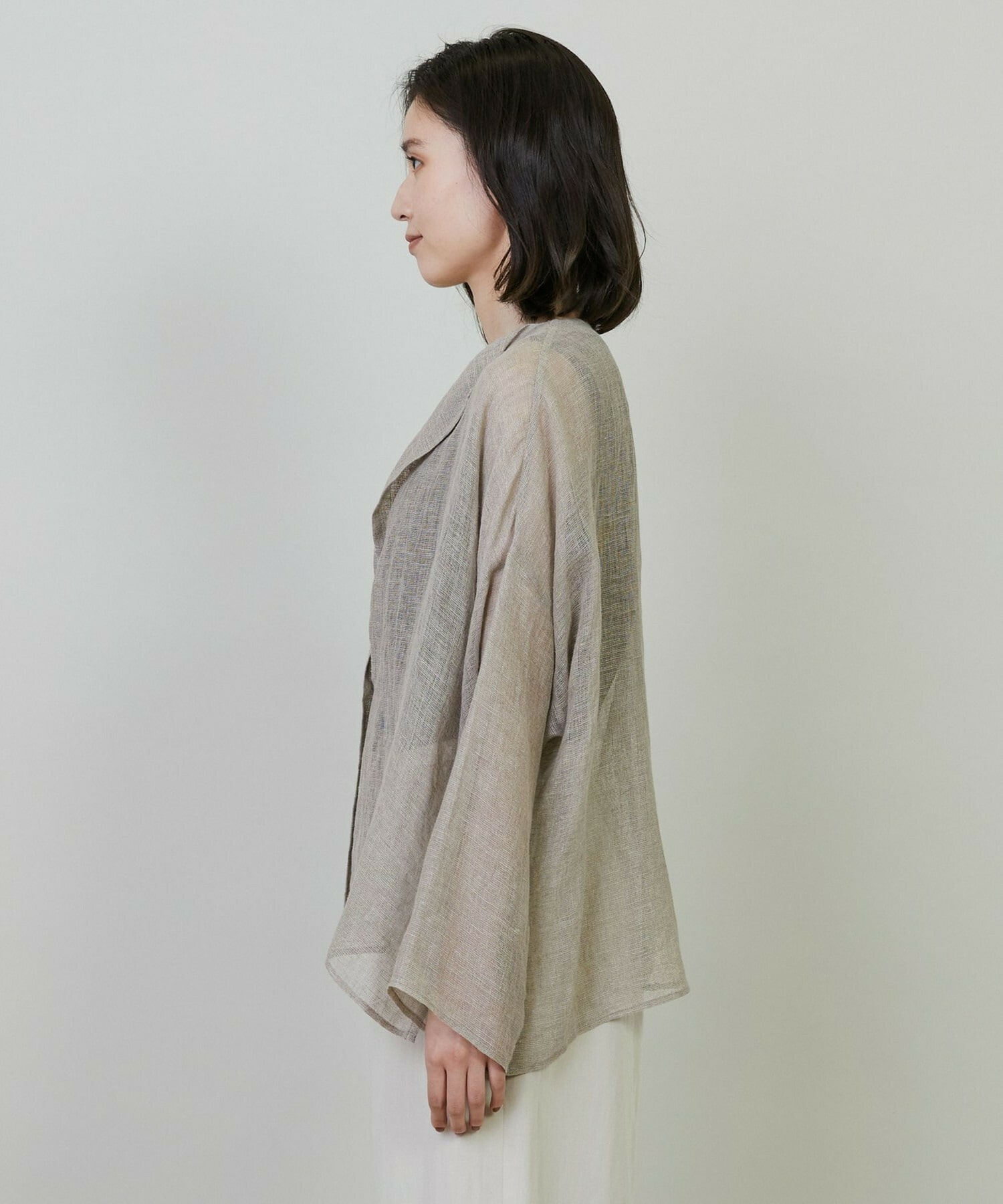 リネンを使用したカラミ織ボイルです。カラミ織ならではの透け感と軽やかさが特徴です。