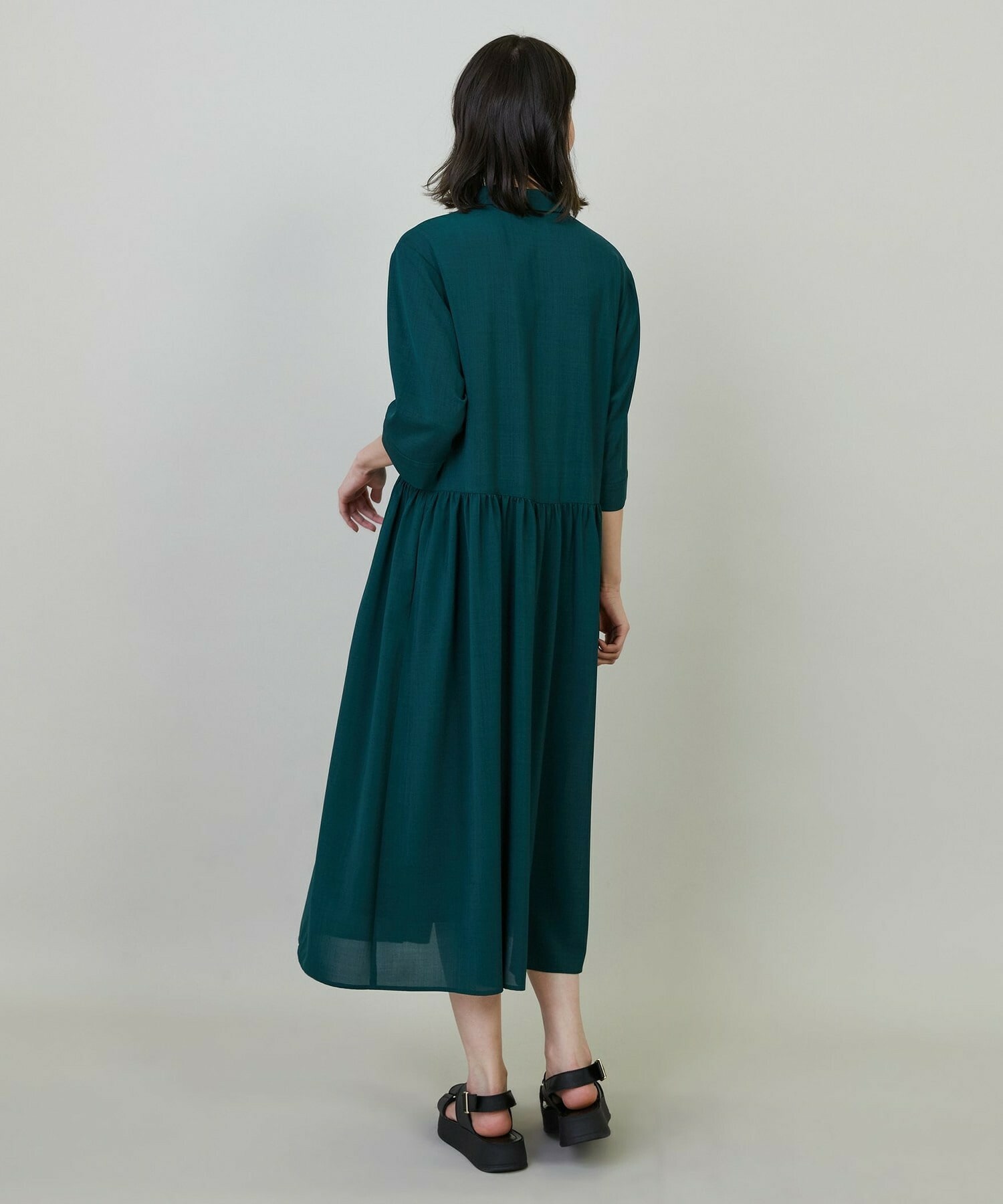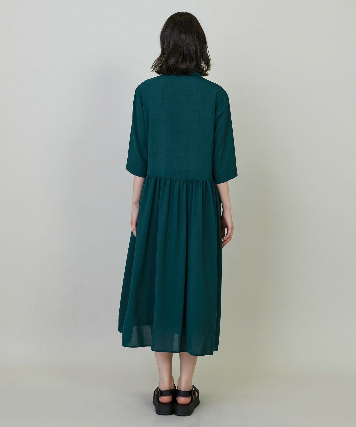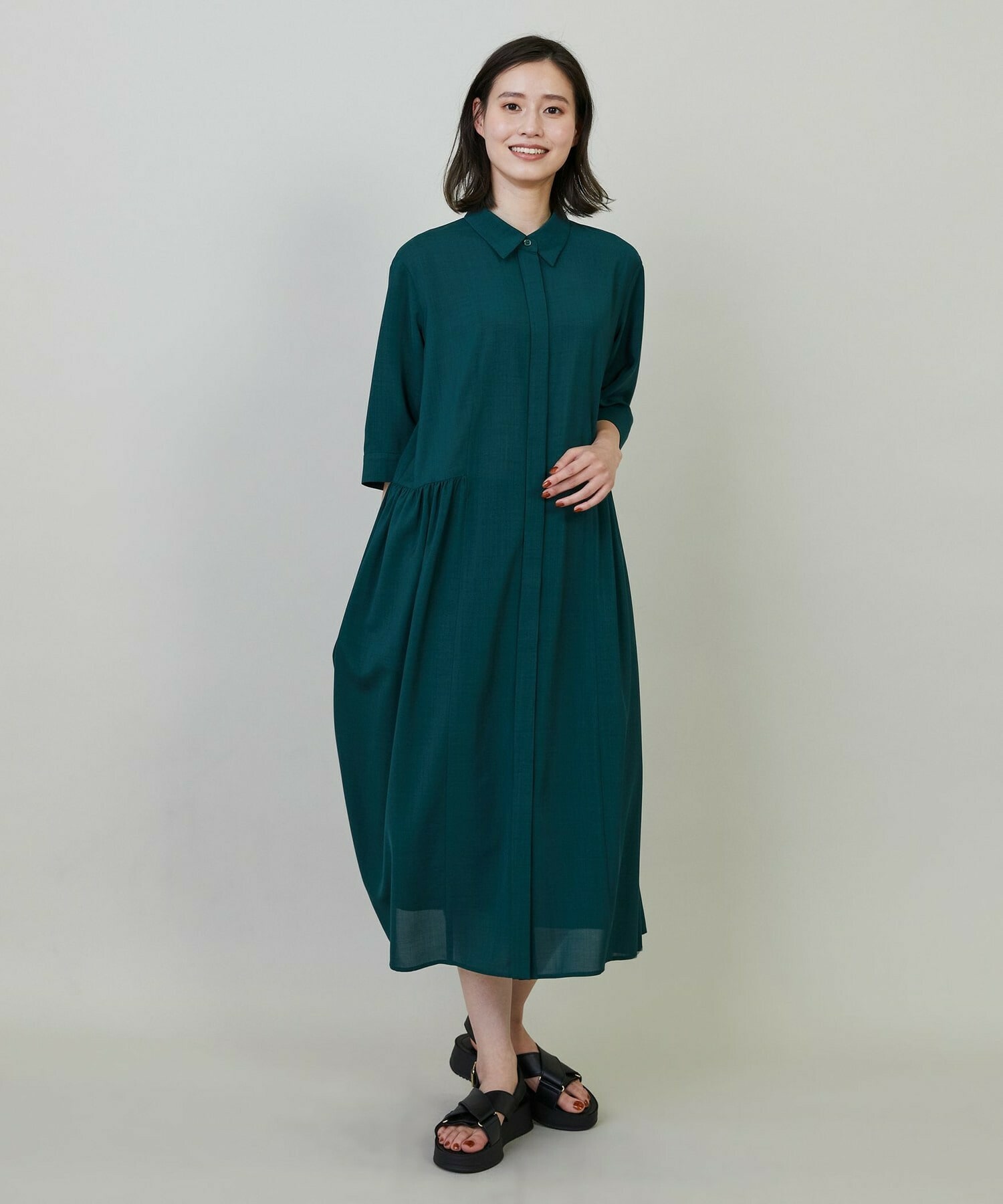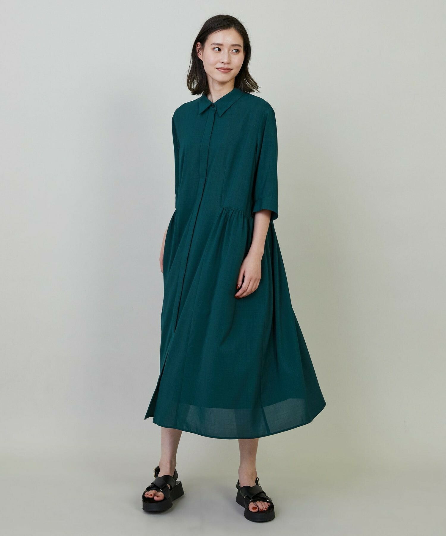 キュプラとポリエステルのきれいめのローン素材。タンブラー加工により膨らみを出しました。キュプラ独特の光沢感や落ち感があるので、揺れるような美しいシルエットを表現できます。